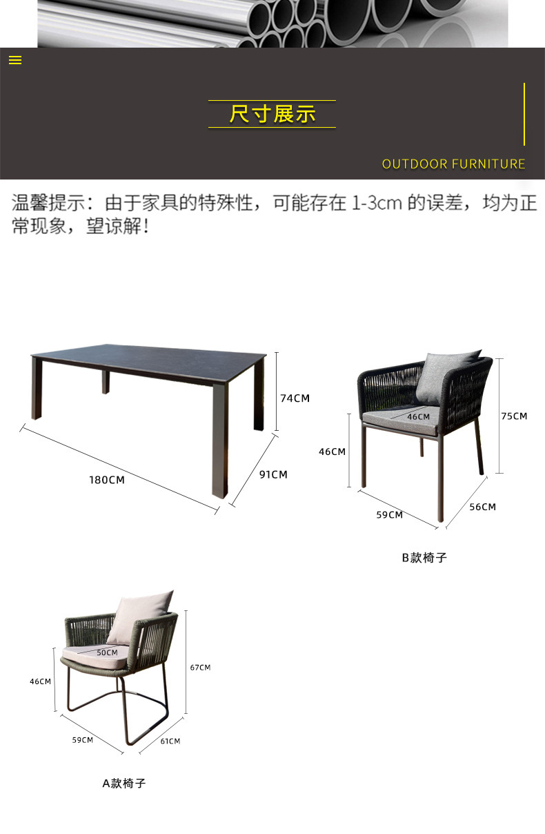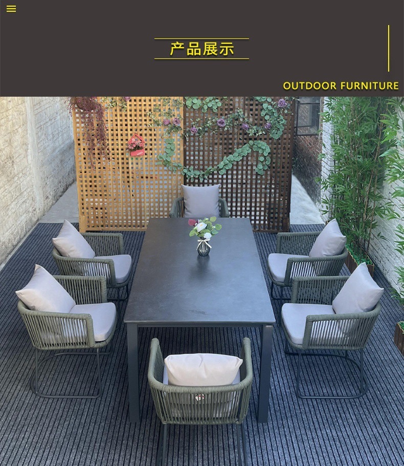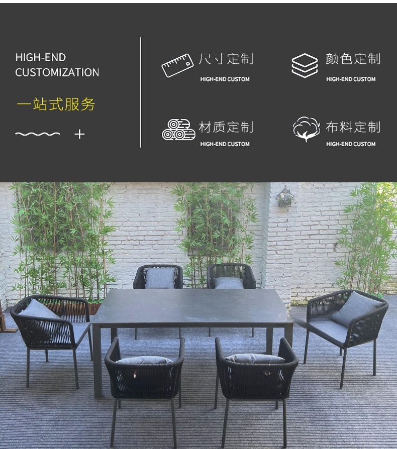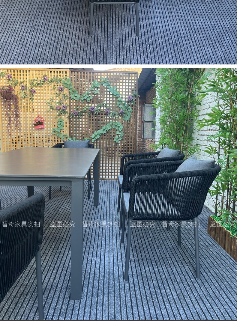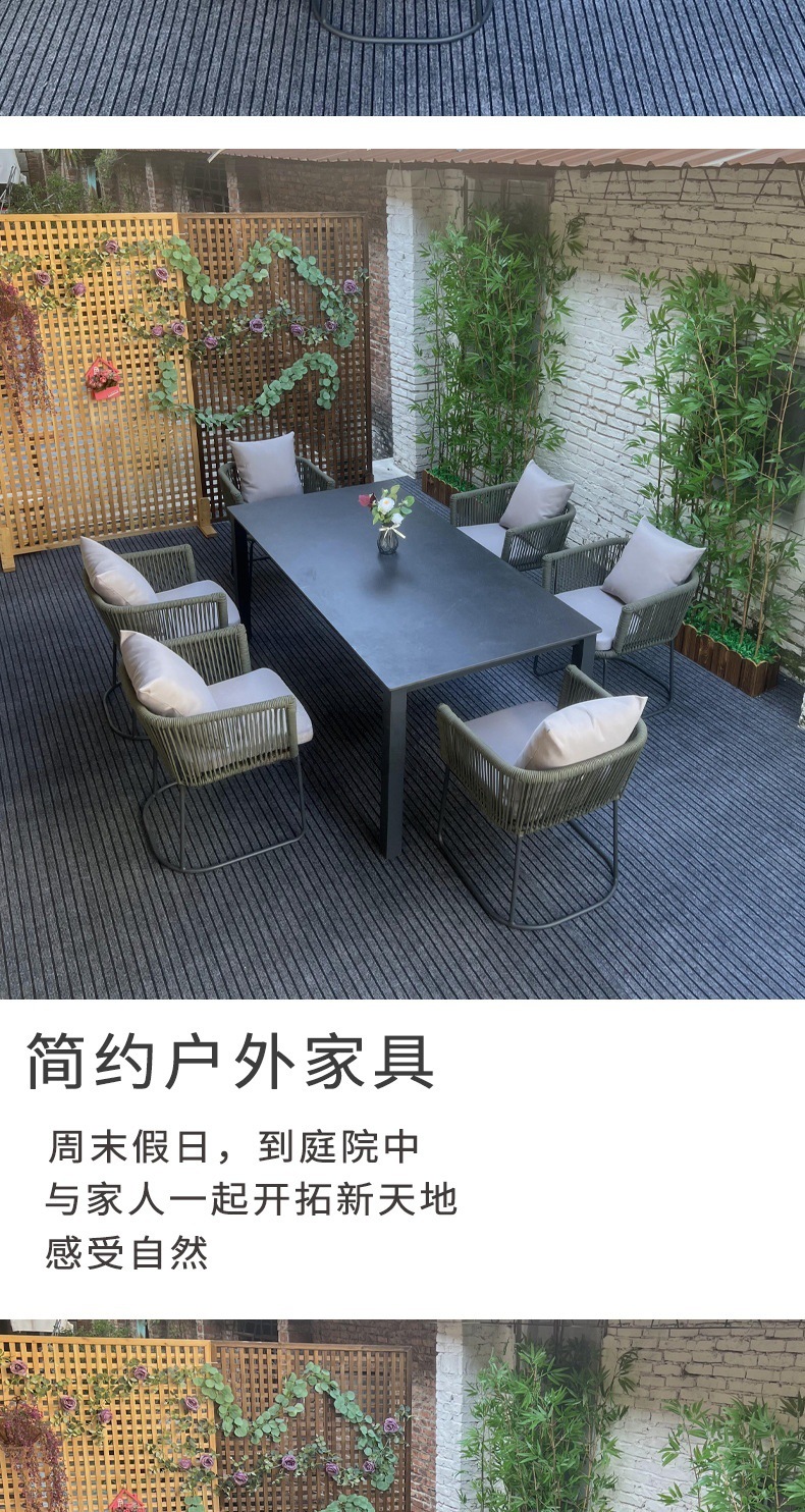 야외 슬레이트 테이블과 의자, 정원 테라스, 방수 및 녹 방지 알루미늄 합금 식탁, 안뜰 호텔 야외 로프 테이블과 의자스토어 가기