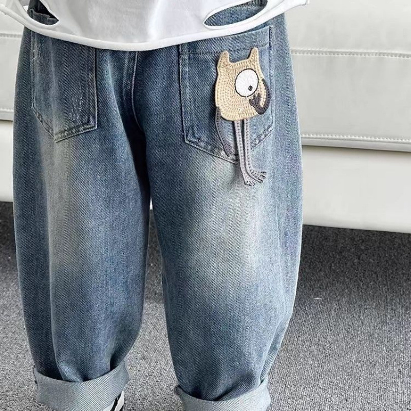 청바지 소년 2025 새로운 어린이 봄, 가을 얇은 밝은 색상 스트레이트 바지 소년 한국 스타일 바지 아기 어린이스토어 가기