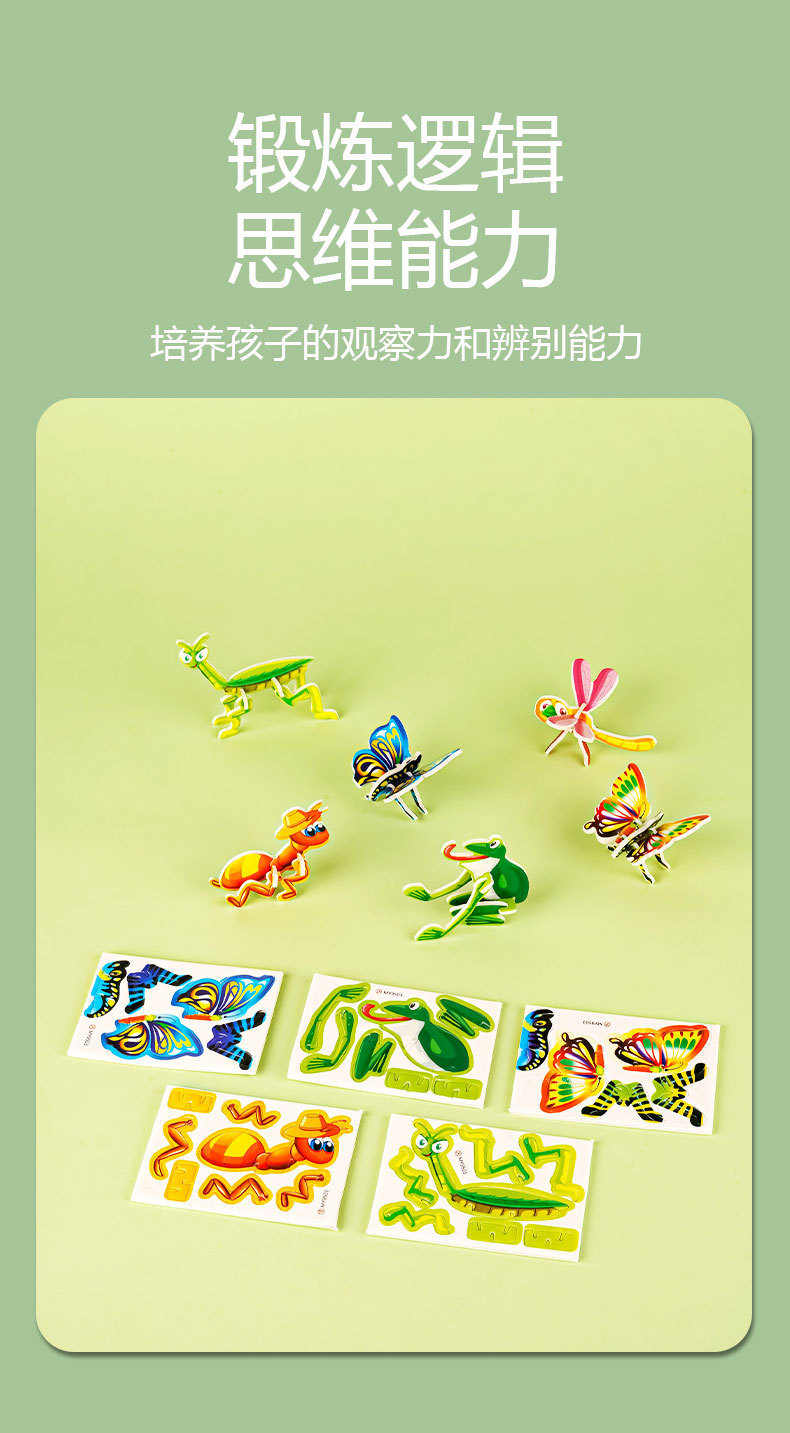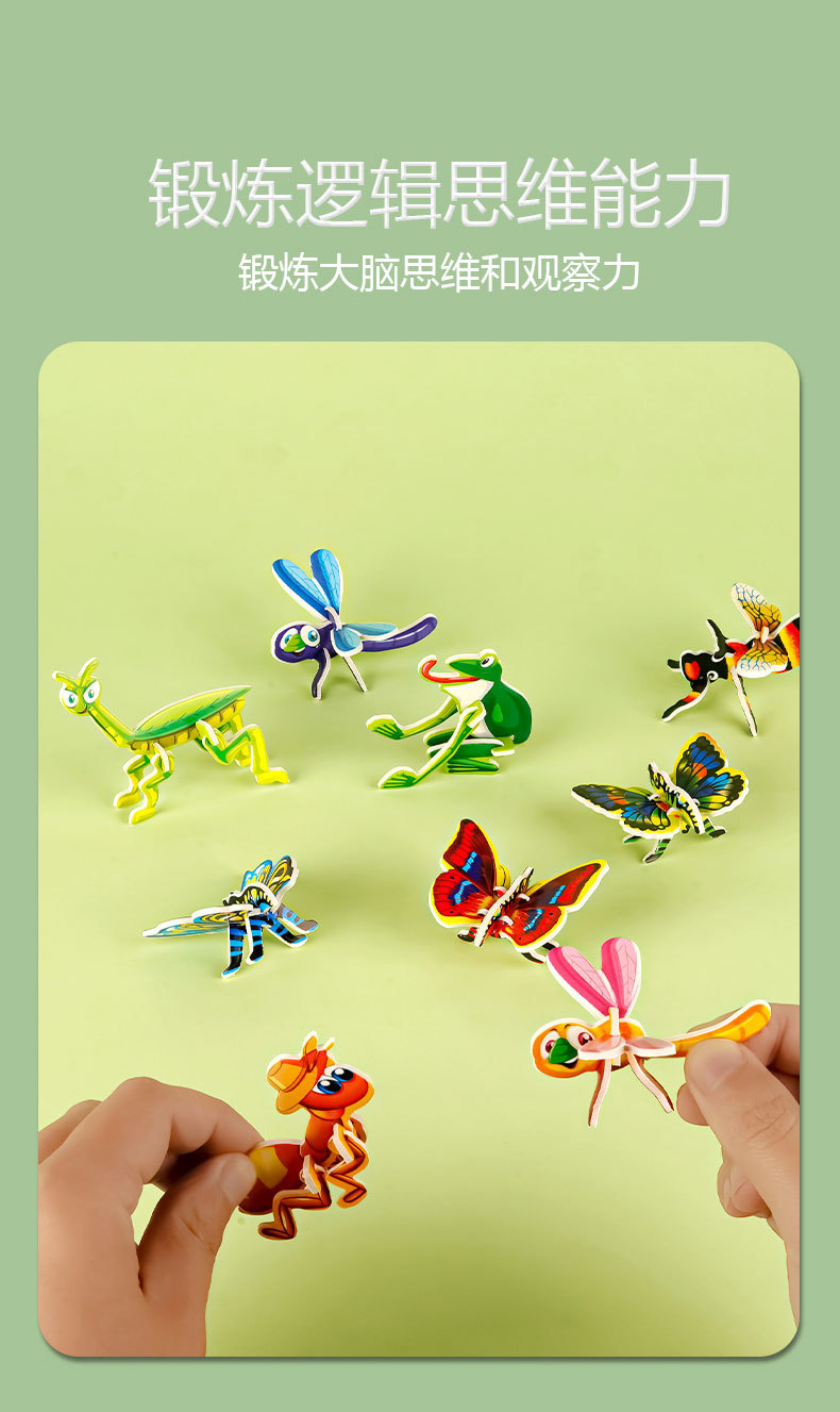 입체 3D 종이 퍼즐, 어린이 창의력 곤충 퍼즐 DIY, 유치원 조기 교육 수공예 교육용스토어 가기