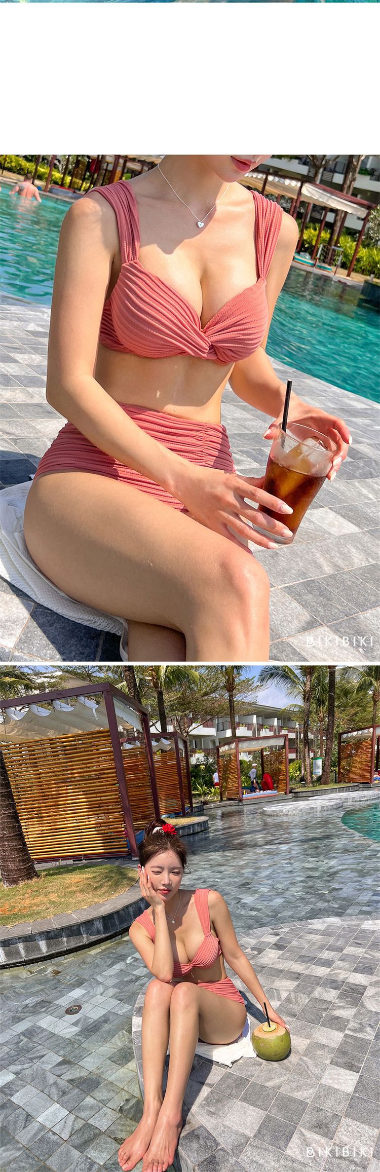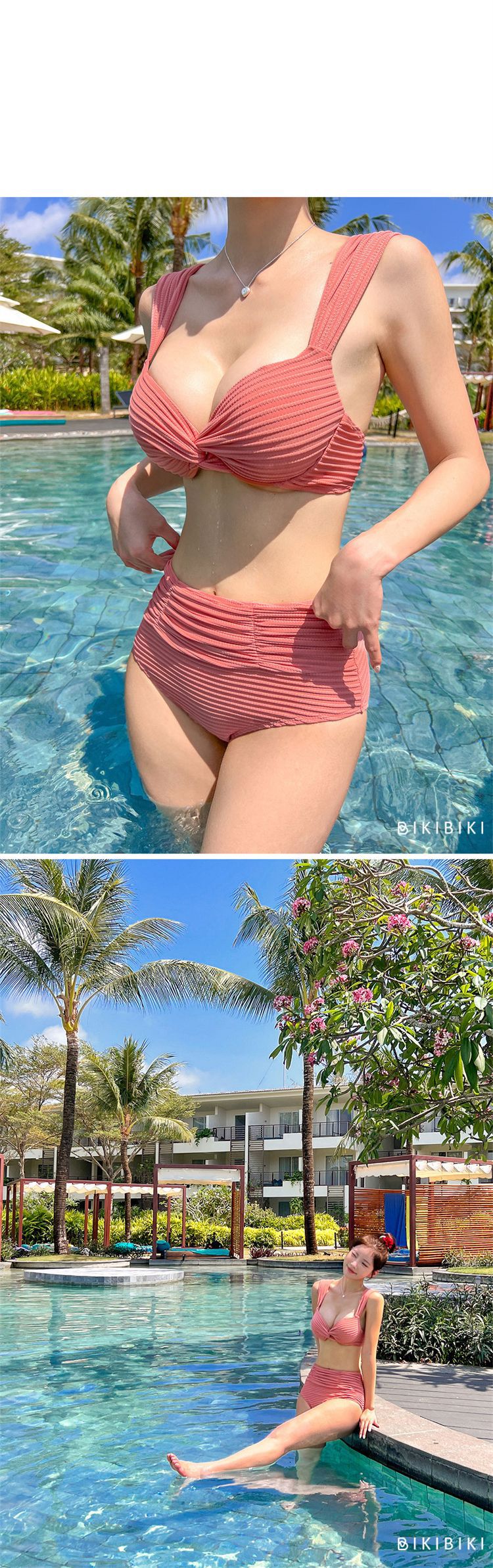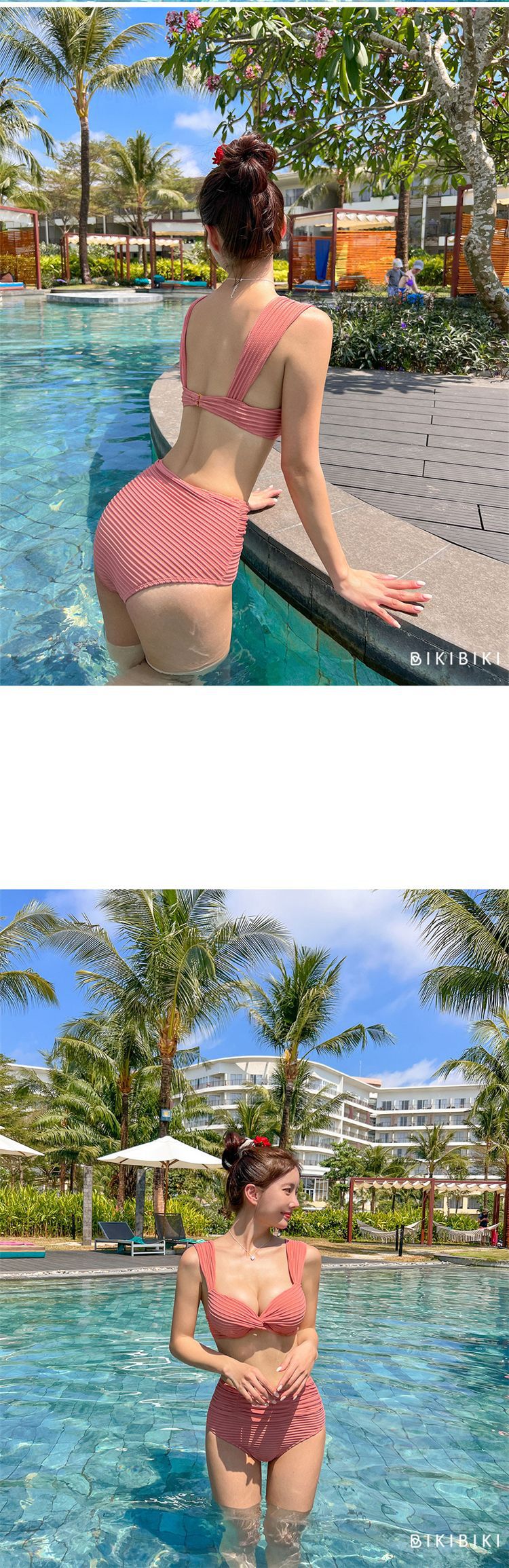 여성 패션 스플릿 단색 비키니 하이 웨이스트 팬츠 스틸 지원 작은 가슴 수집 온천 휴가 수영복
