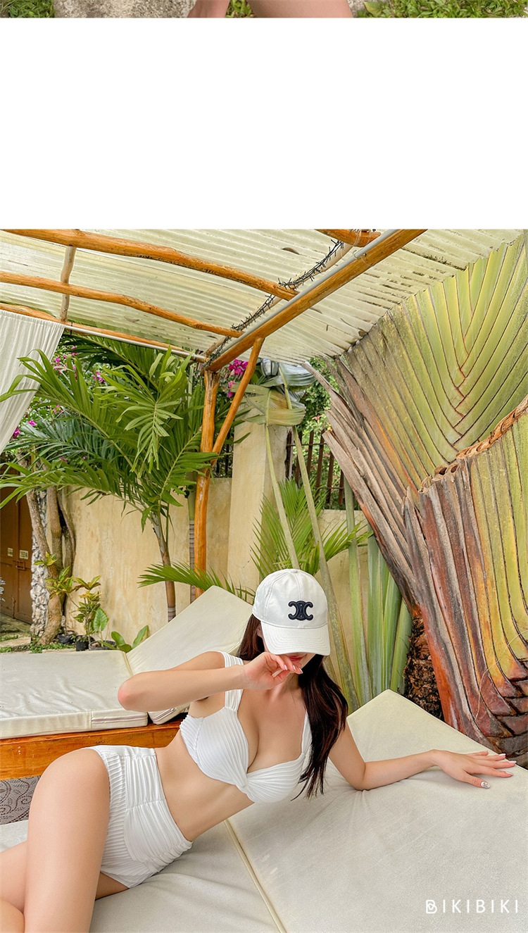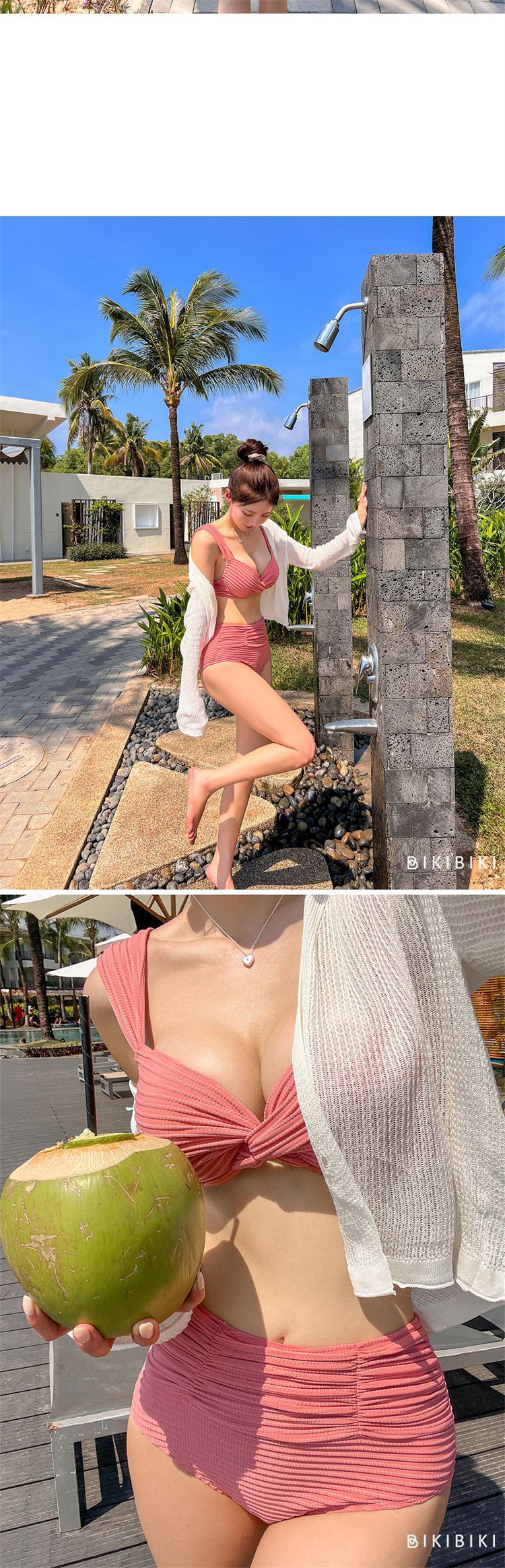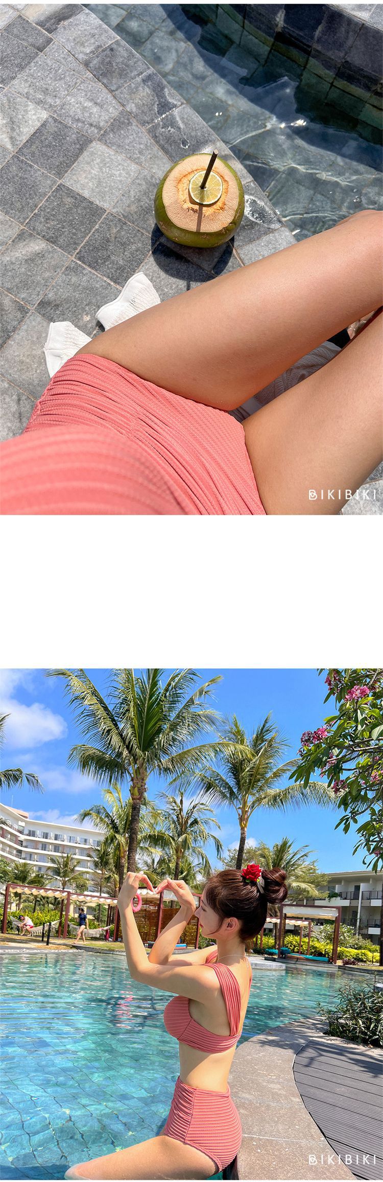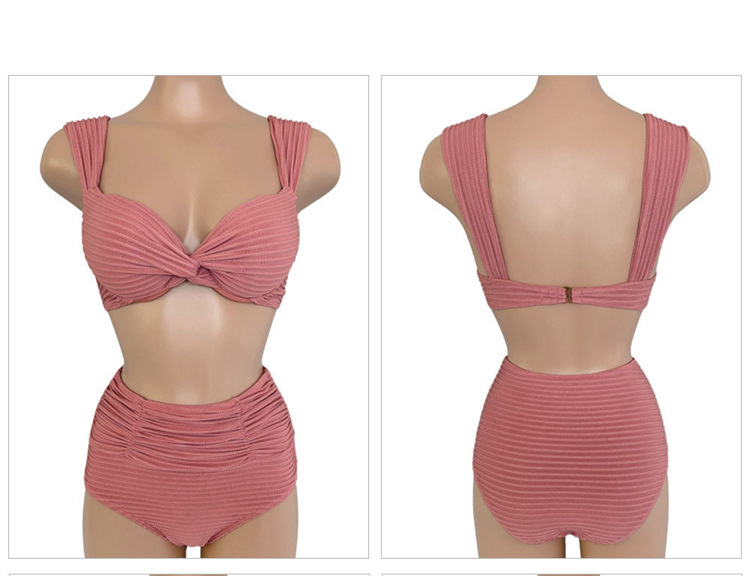 여성 패션 스플릿 단색 비키니 하이 웨이스트 팬츠 스틸 지원 작은 가슴 수집 온천 휴가 수영복