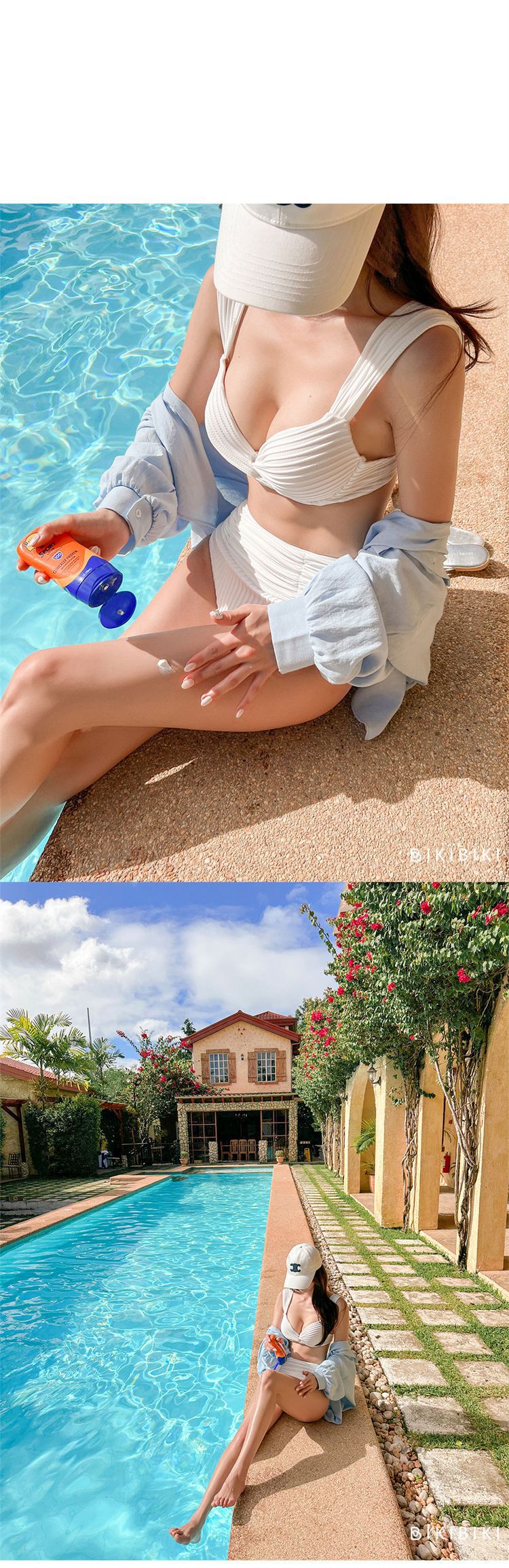 여성 패션 스플릿 단색 비키니 하이 웨이스트 팬츠 스틸 지원 작은 가슴 수집 온천 휴가 수영복스토어 가기