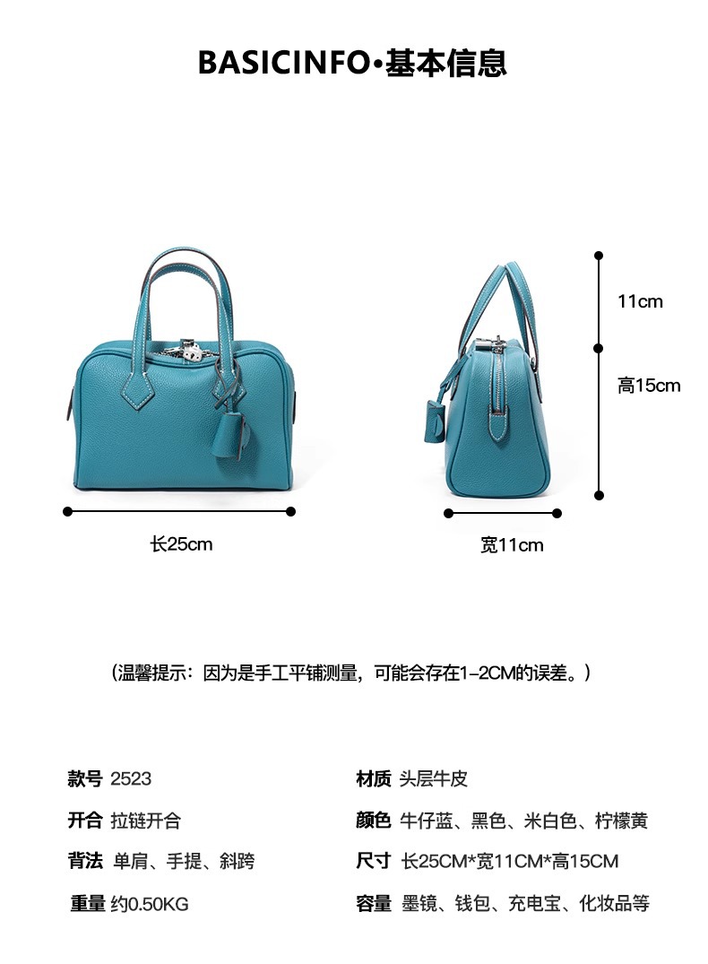 1층 소가죽 빅토리아 볼링 베개 가방, 천연 가죽 휴대용 토트백, 패셔너블한 고급 숄더 크로스백스토어 가기