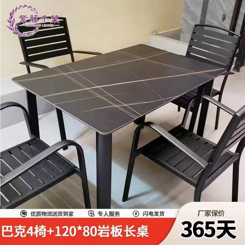 • [블랙] 플라스틱 목재 벅 의자 4개 + 120*80 슬레이트 롱 테이블