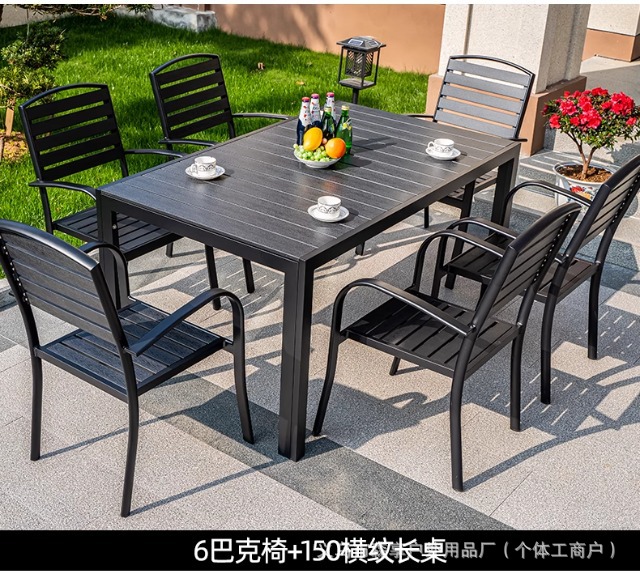 • [블랙] 플라스틱 목재 벅 의자 6개 + 150*90 대형 판자 긴 테이블