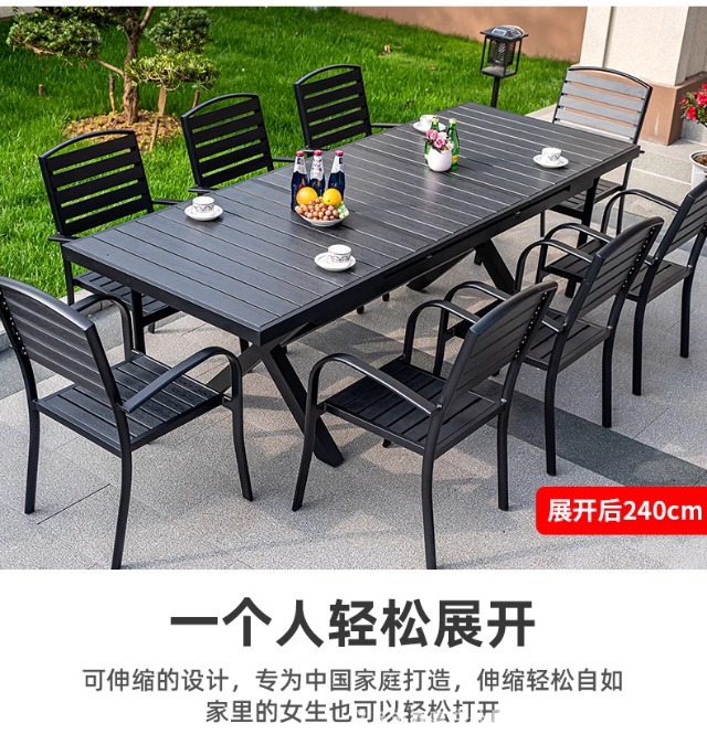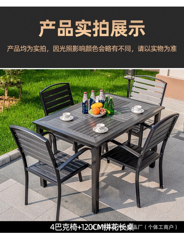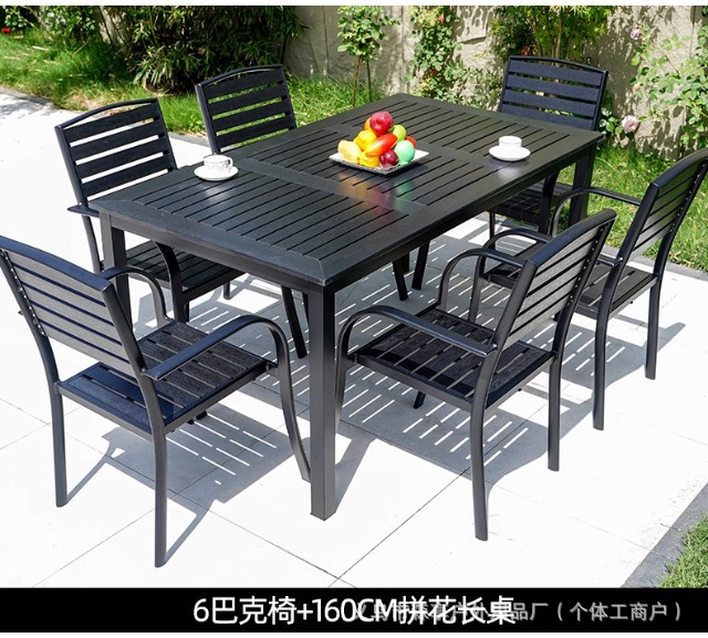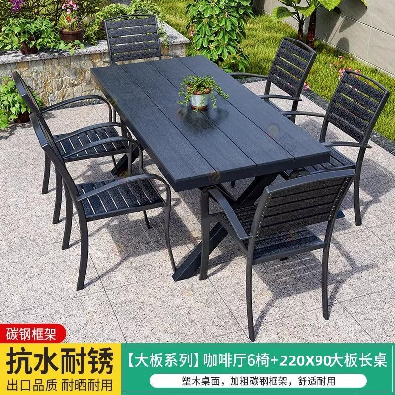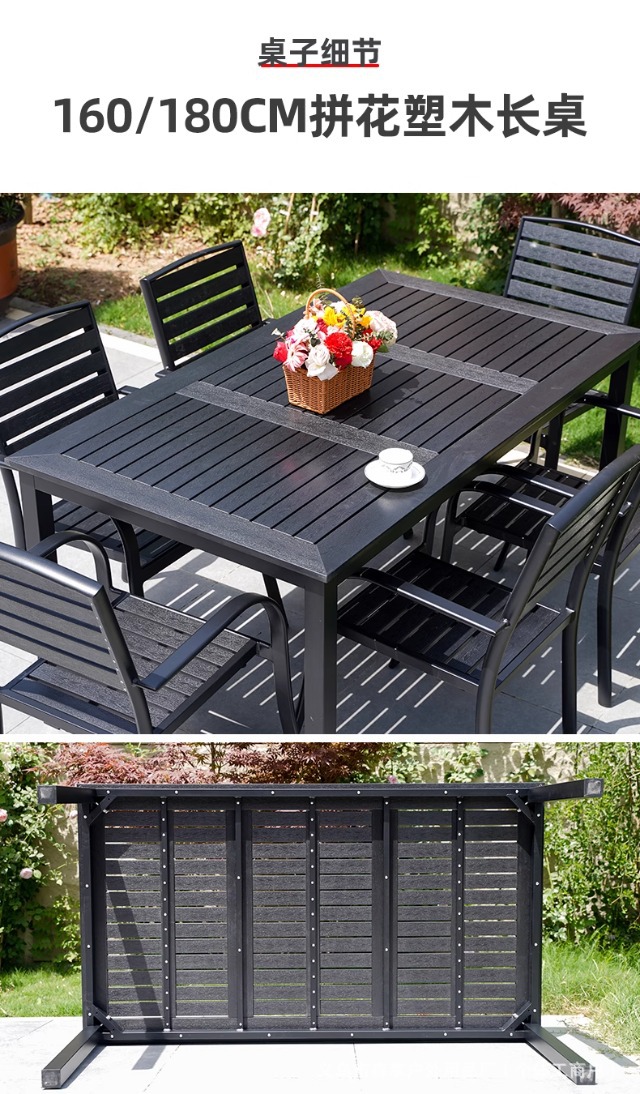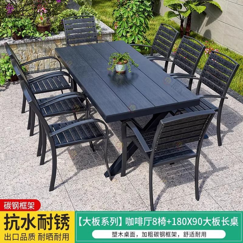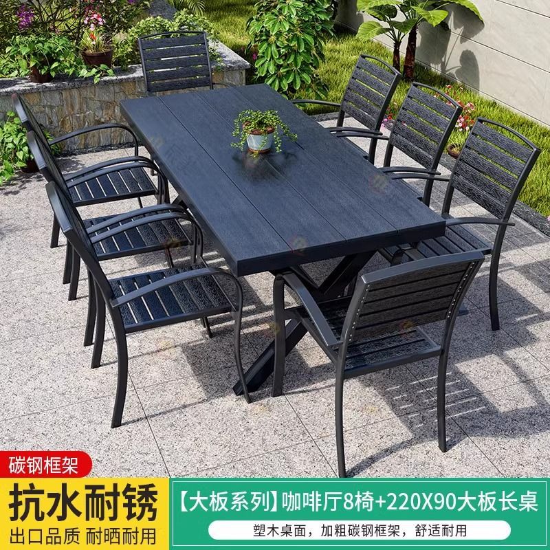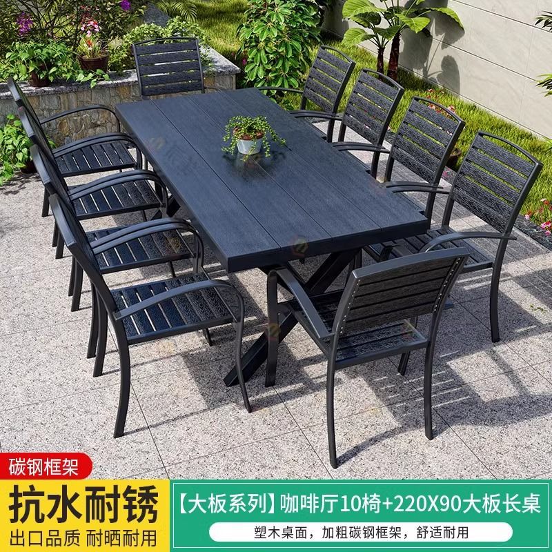 • [블랙] 플라스틱 목재 벅 10개 의자 + 220*90 대형 판자 긴 테이블