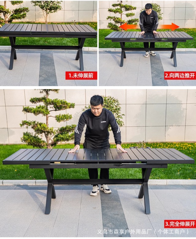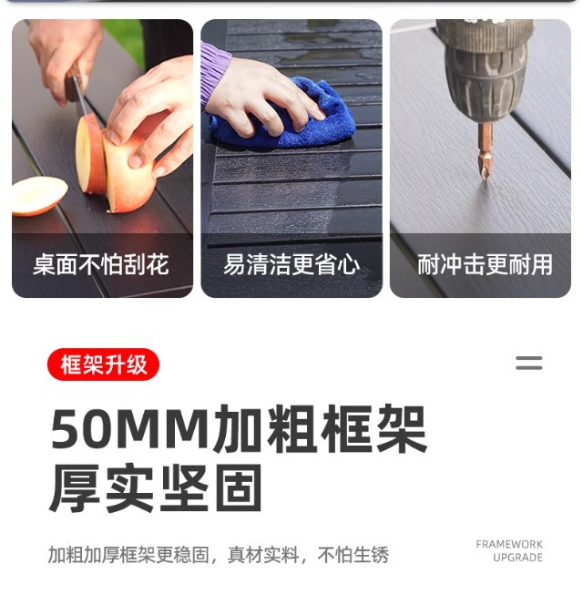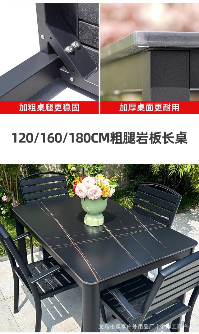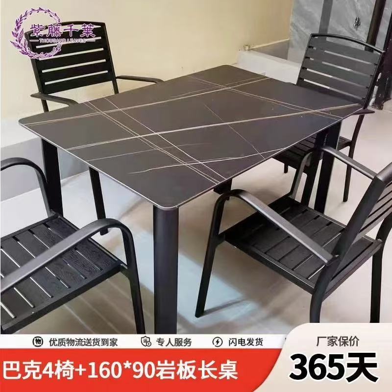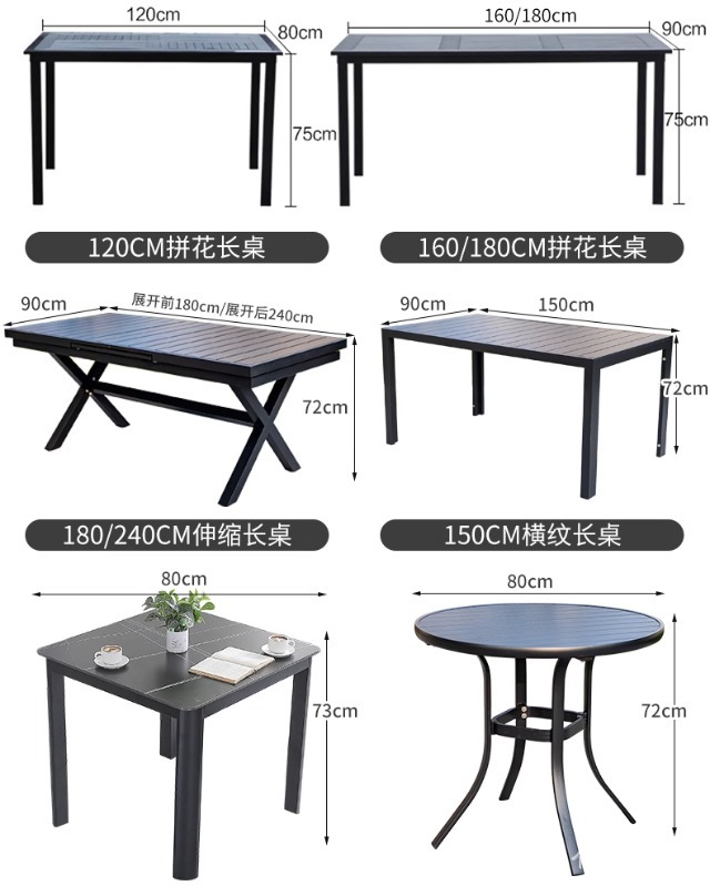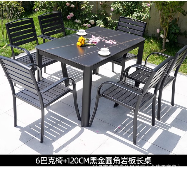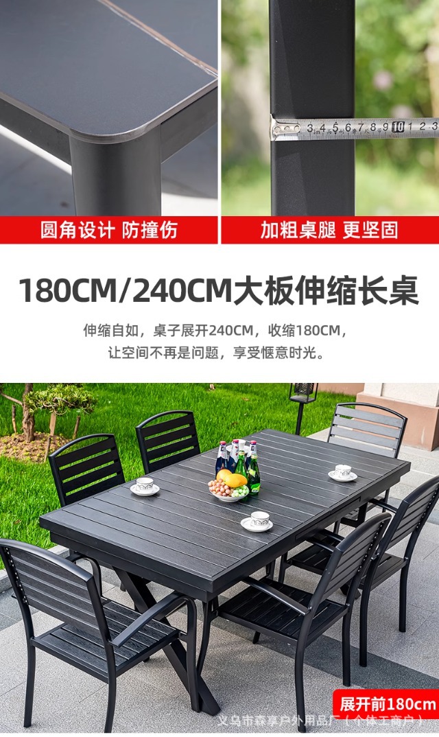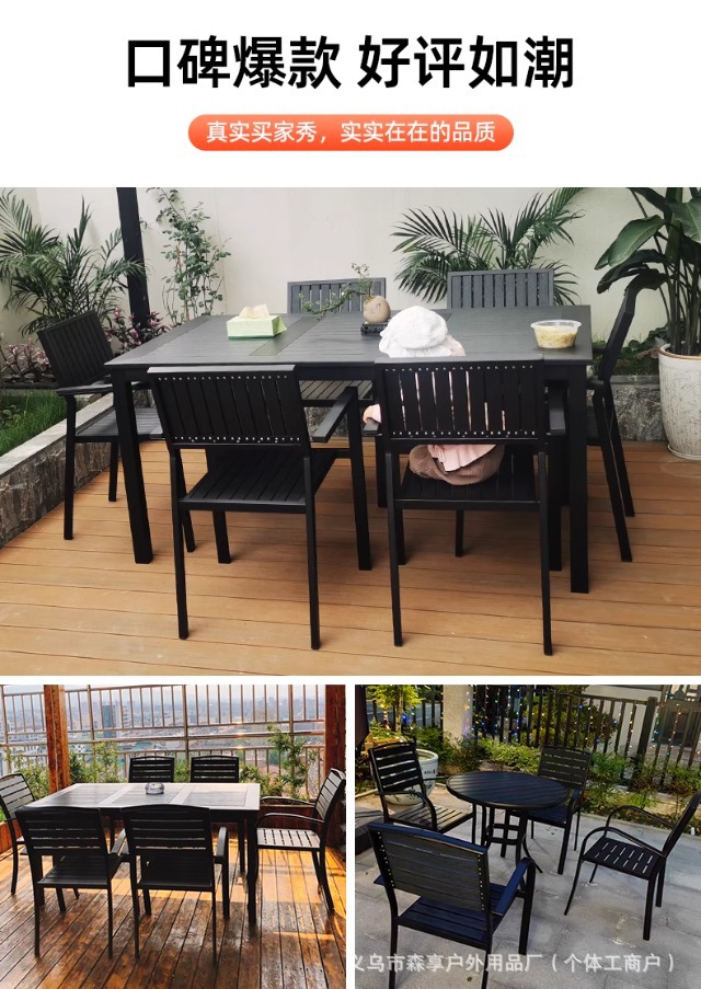 • [블랙] 플라스틱 목재 벅 10개 의자 + 220*90 대형 판자 긴 테이블