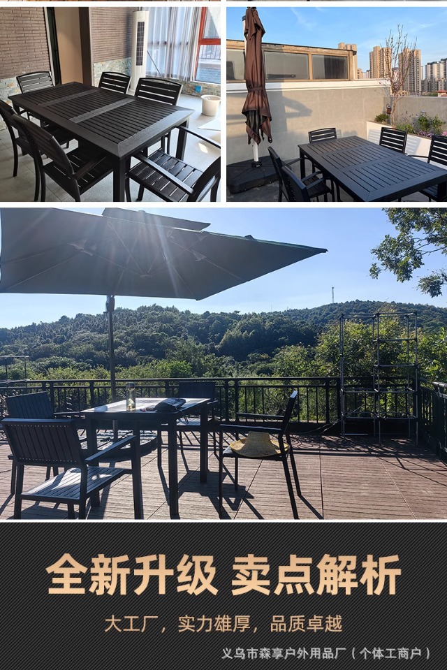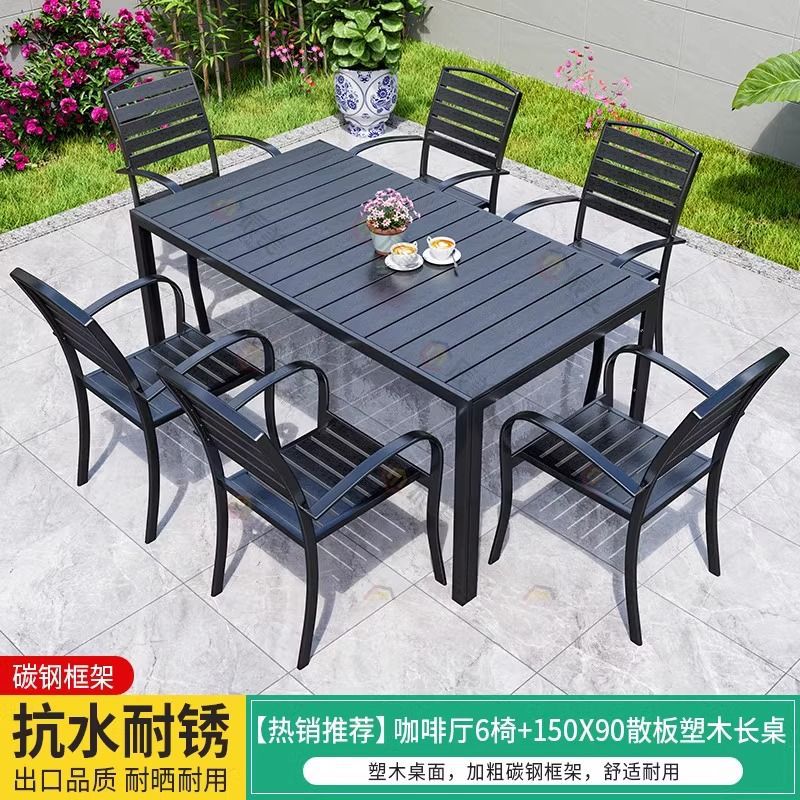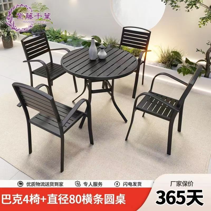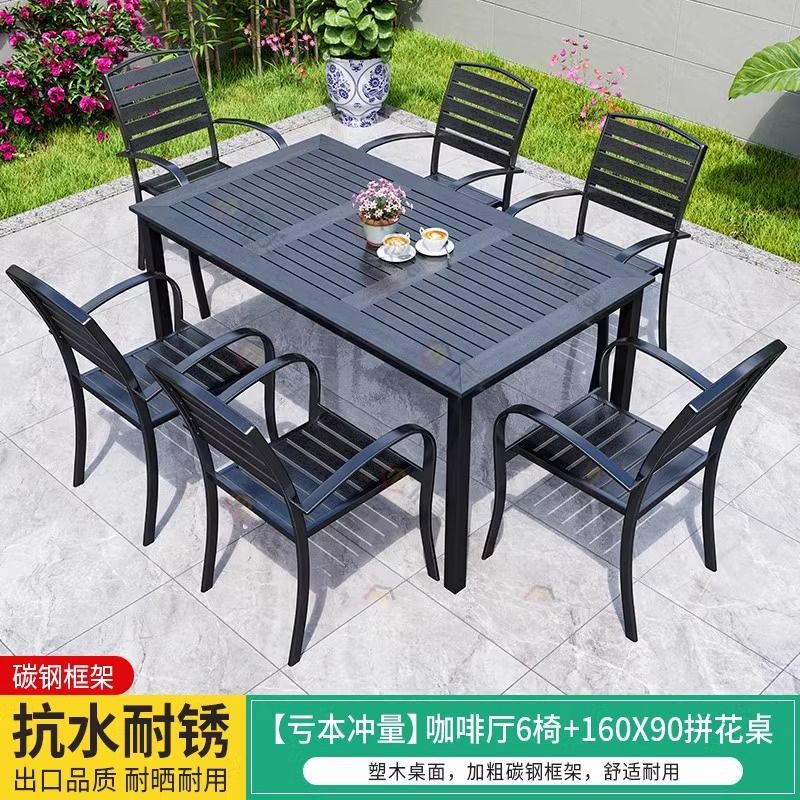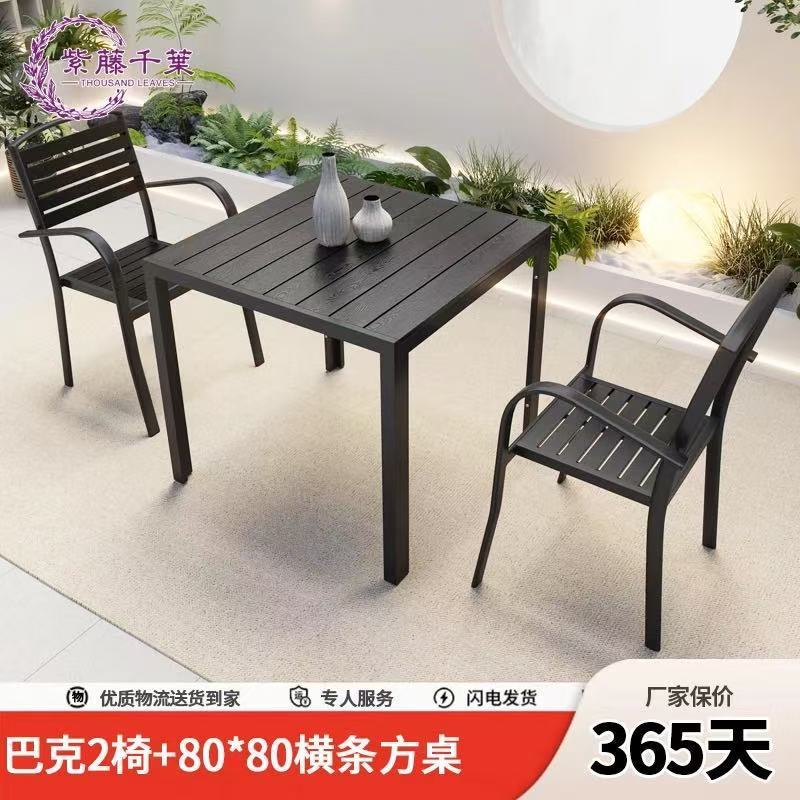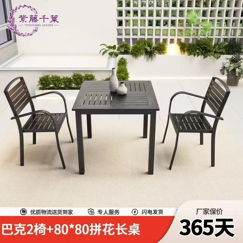 야외 플라스틱 목재 테이블과 의자, 레저 야외 부식 방지 목재 빌라 발코니, 야외 방수 안뜰 정원, 자외선 차단 식탁과 의자스토어 가기