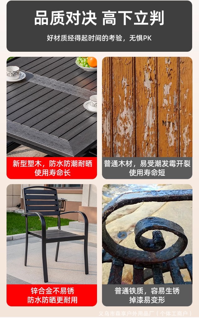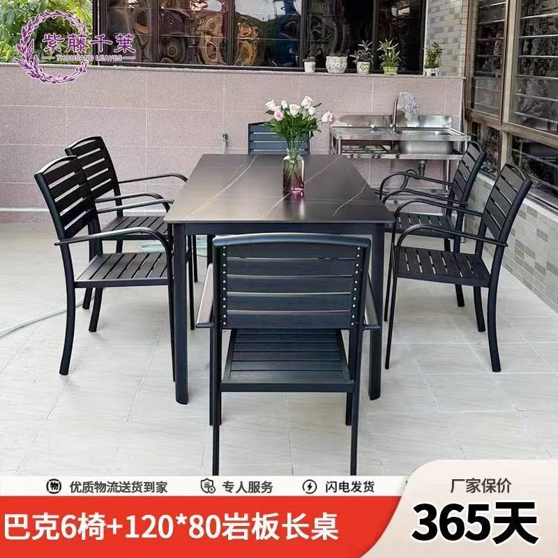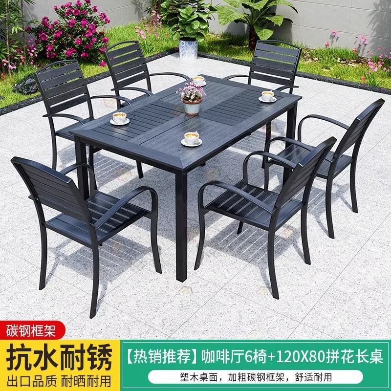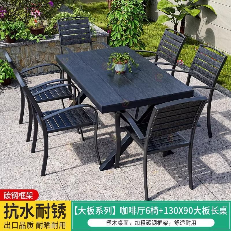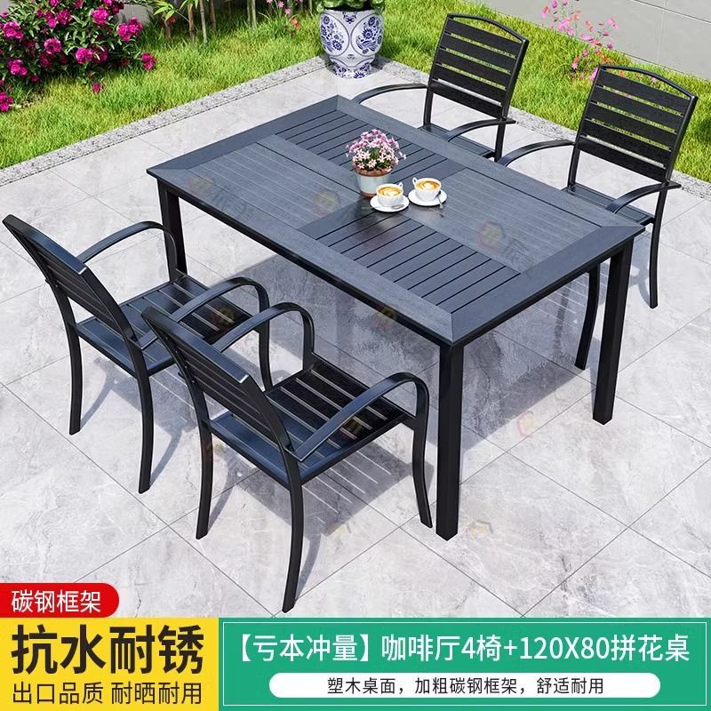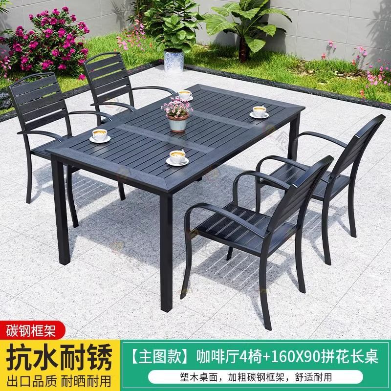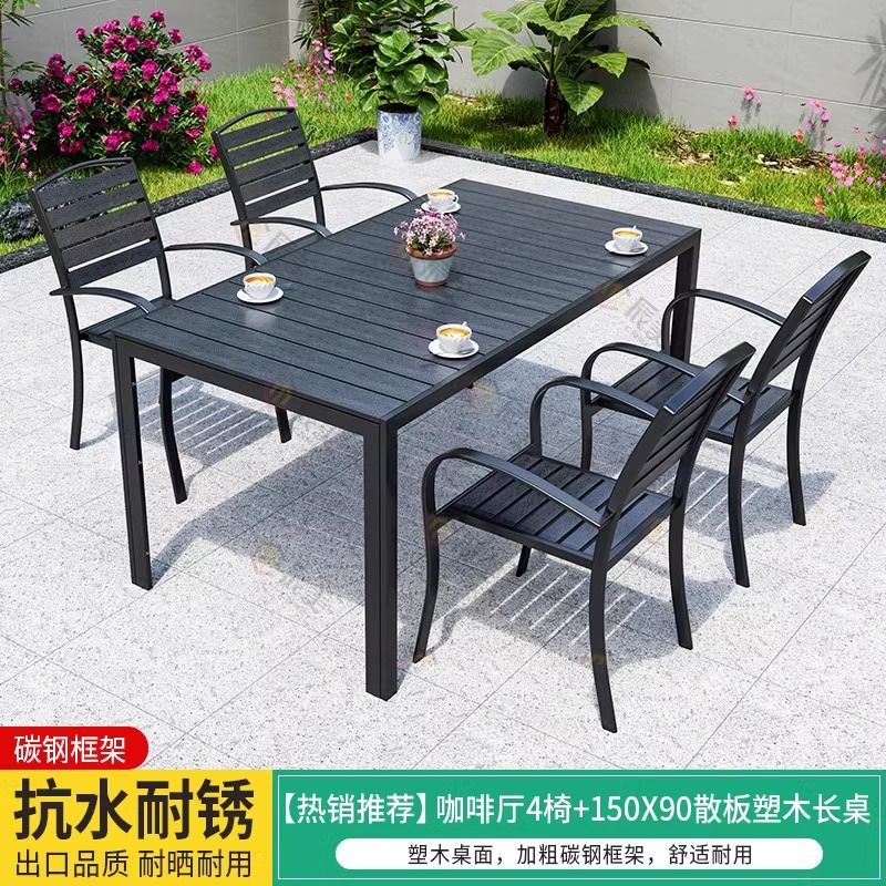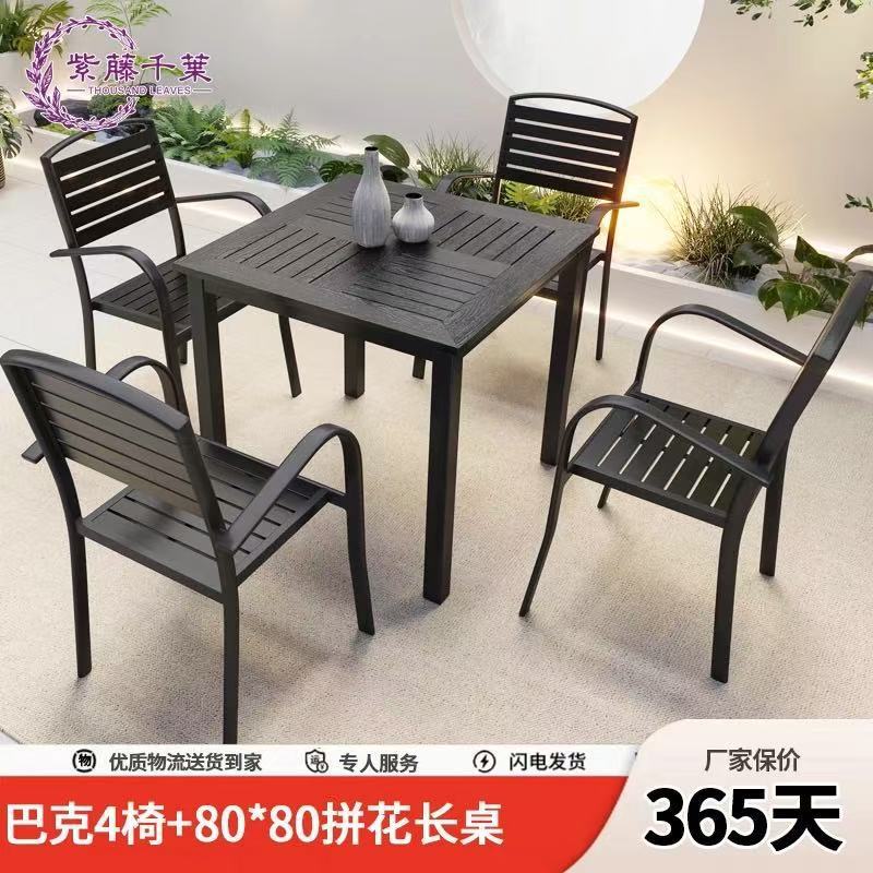 야외 플라스틱 목재 테이블과 의자, 레저 야외 부식 방지 목재 빌라 발코니, 야외 방수 안뜰 정원, 자외선 차단 식탁과 의자
