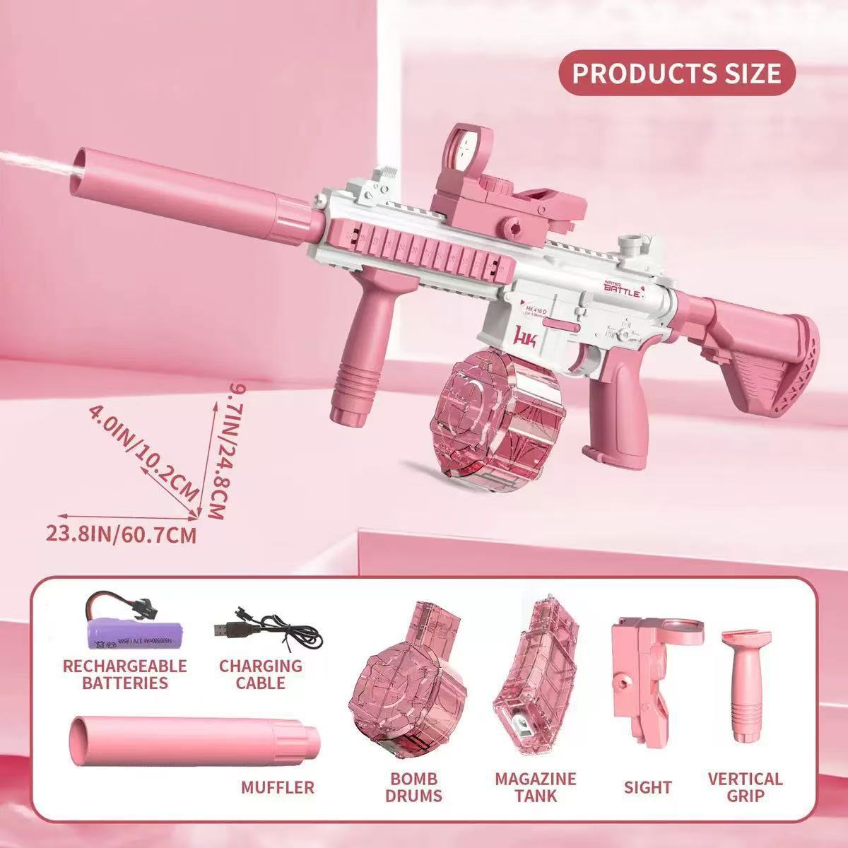 • 전기 M416 물총 [드럼 버전-핑크] 컬러 박스