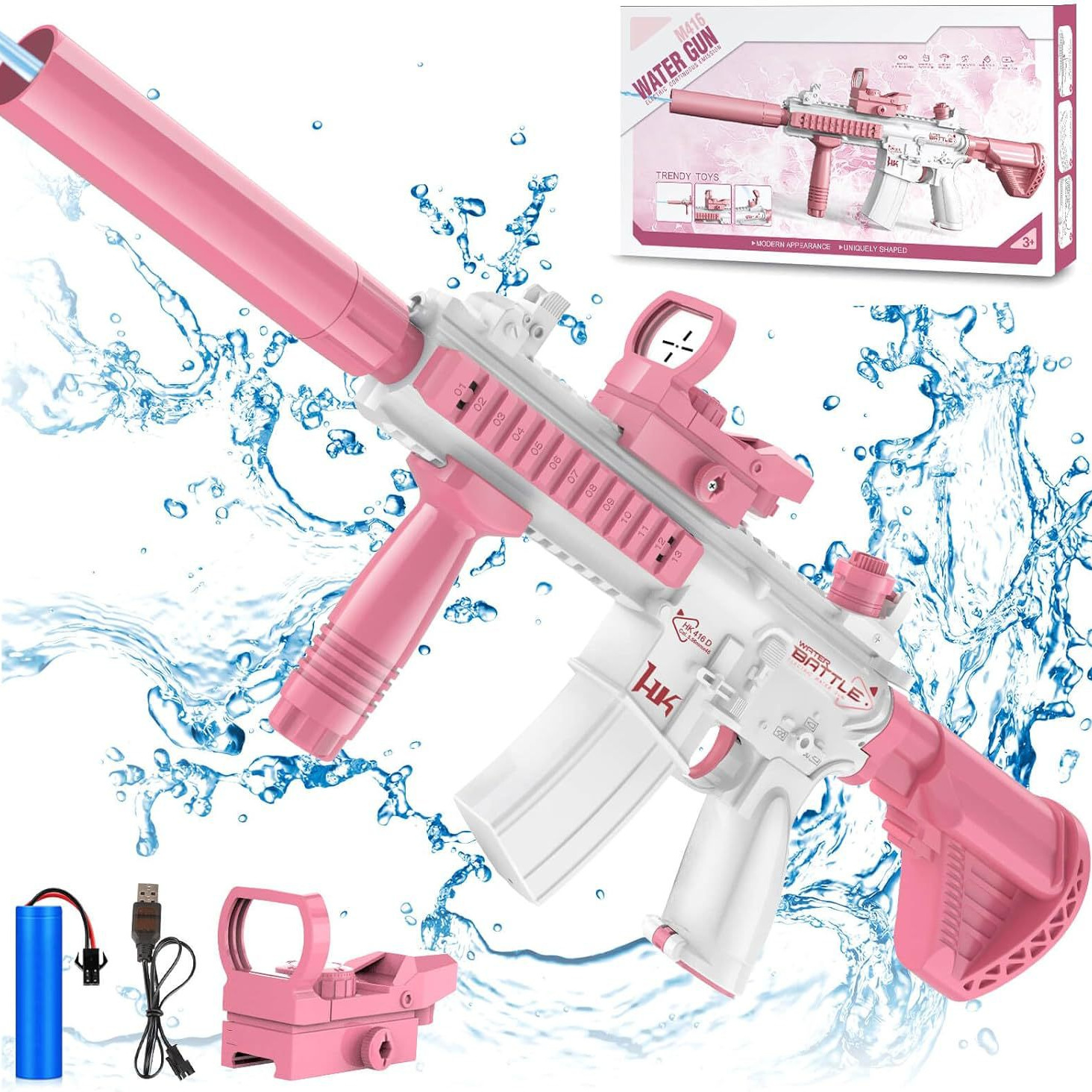 • 전기 M416 물총 [핑크] 컬러 박스