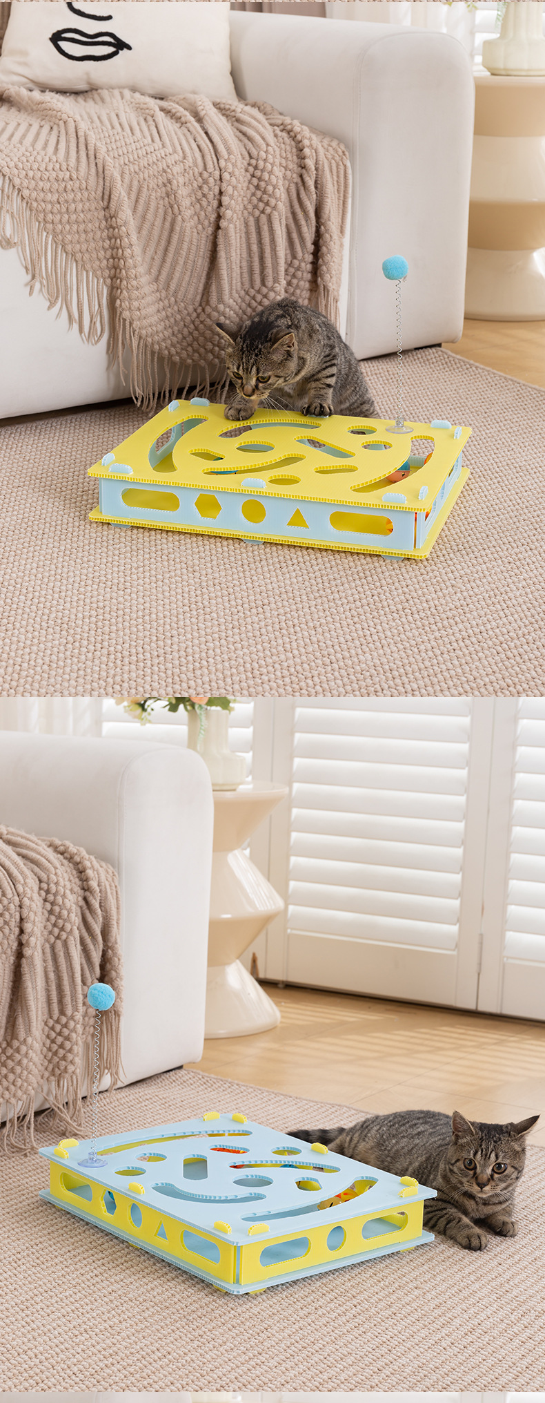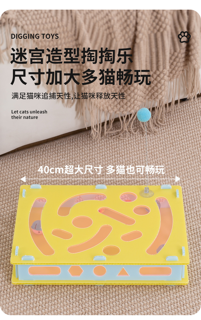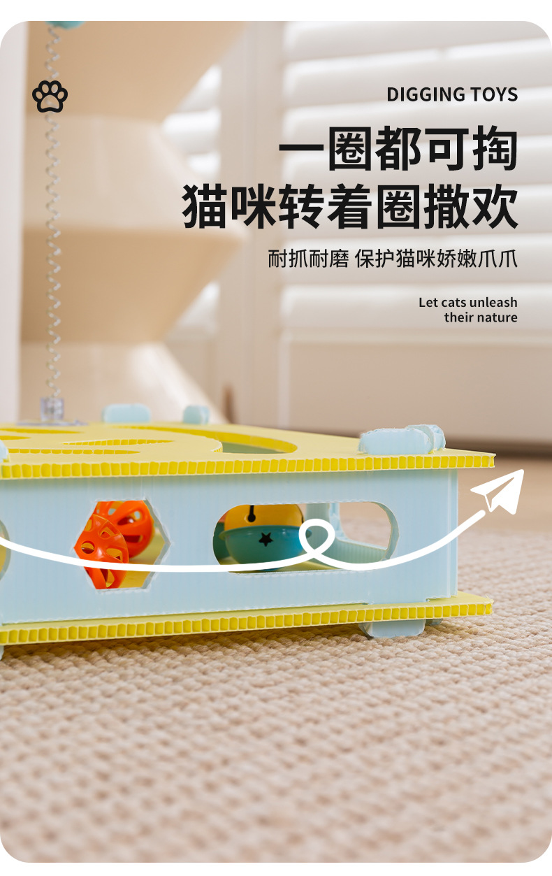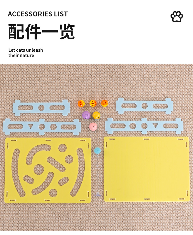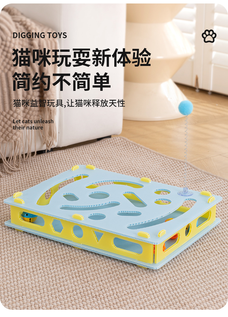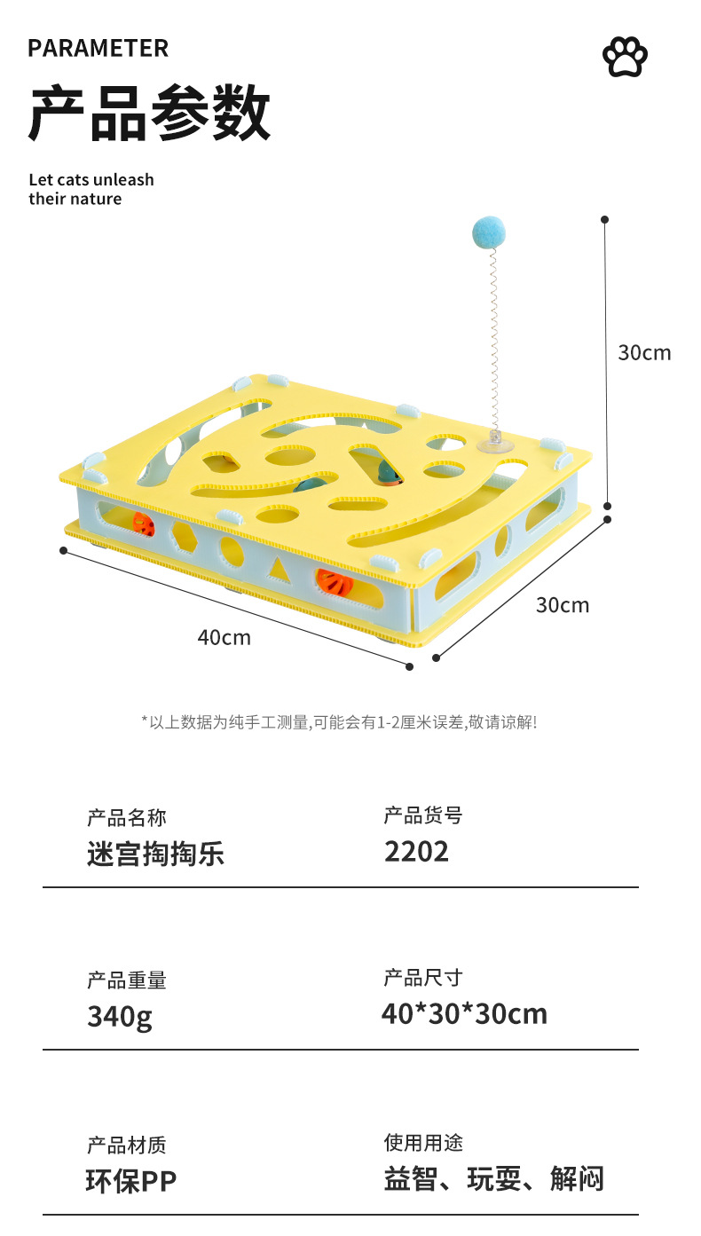 2.采用迷宫轨道造型,新奇有趣,能激发猫咪好奇心,满足猫咪探索天性。主人可以参与其中,比如用小球等道具引导猫咪在轨道中玩耍,增加与猫咪之间的互动,增进感情。