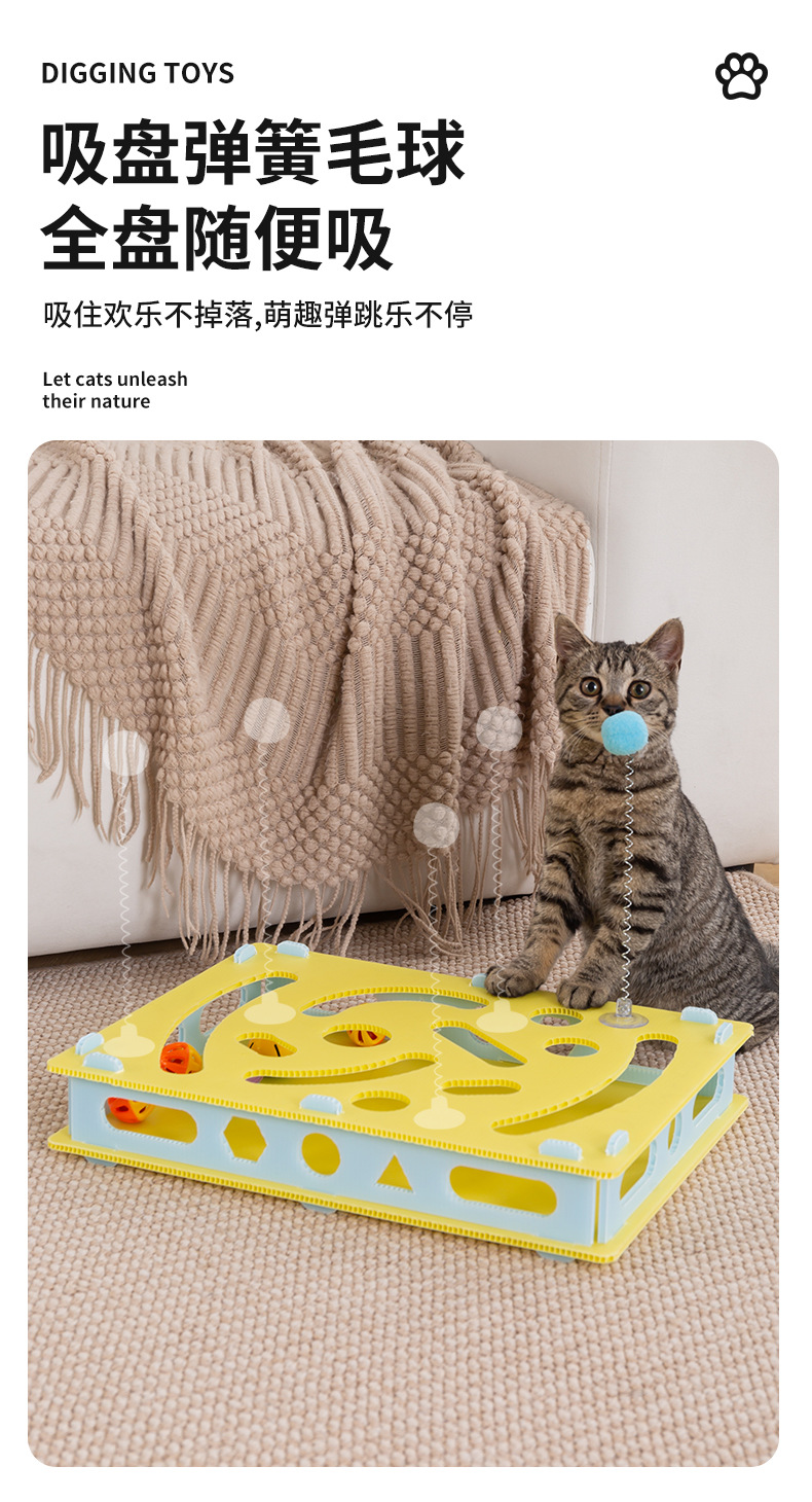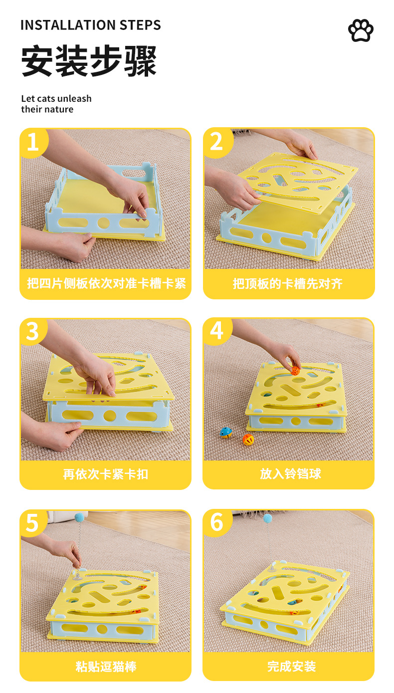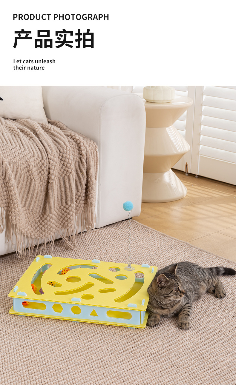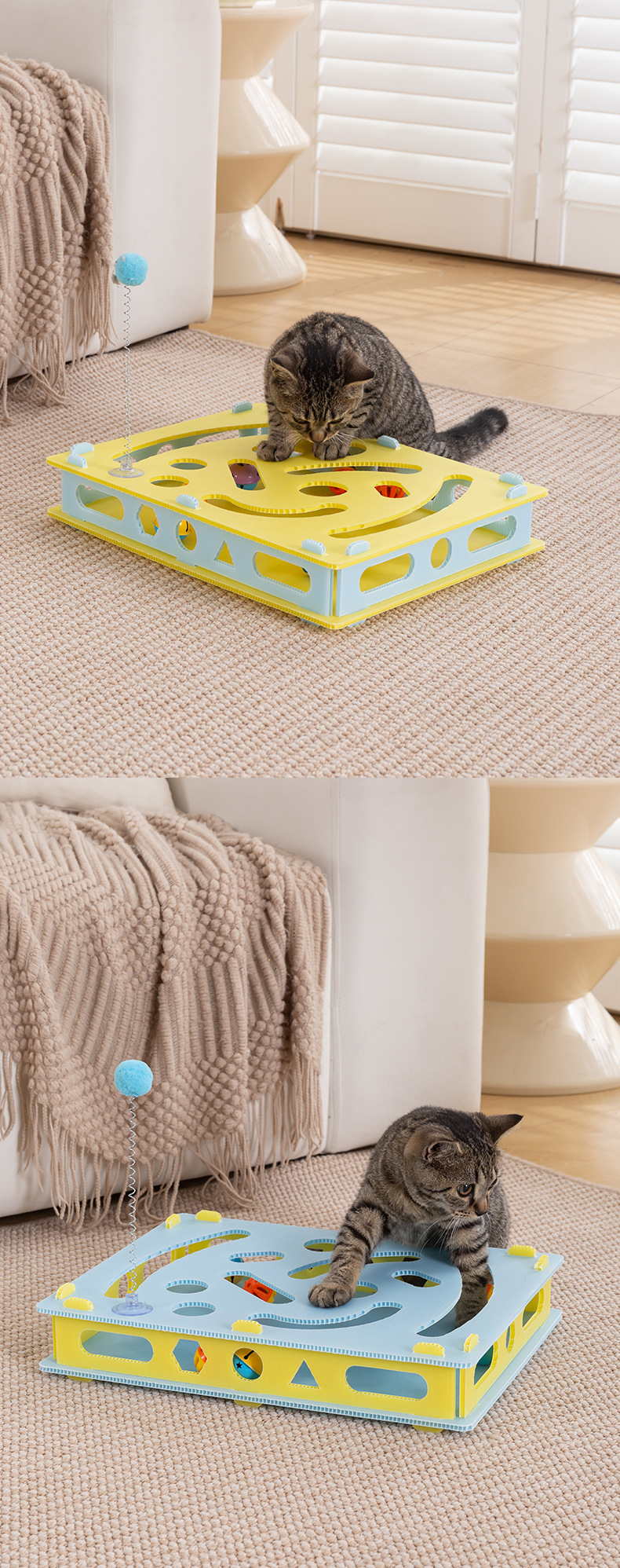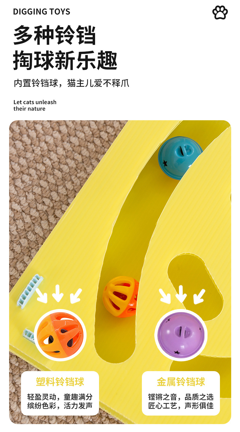 2.采用迷宫轨道造型,新奇有趣,能激发猫咪好奇心,满足猫咪探索天性。主人可以参与其中,比如用小球等道具引导猫咪在轨道中玩耍,增加与猫咪之间的互动,增进感情。