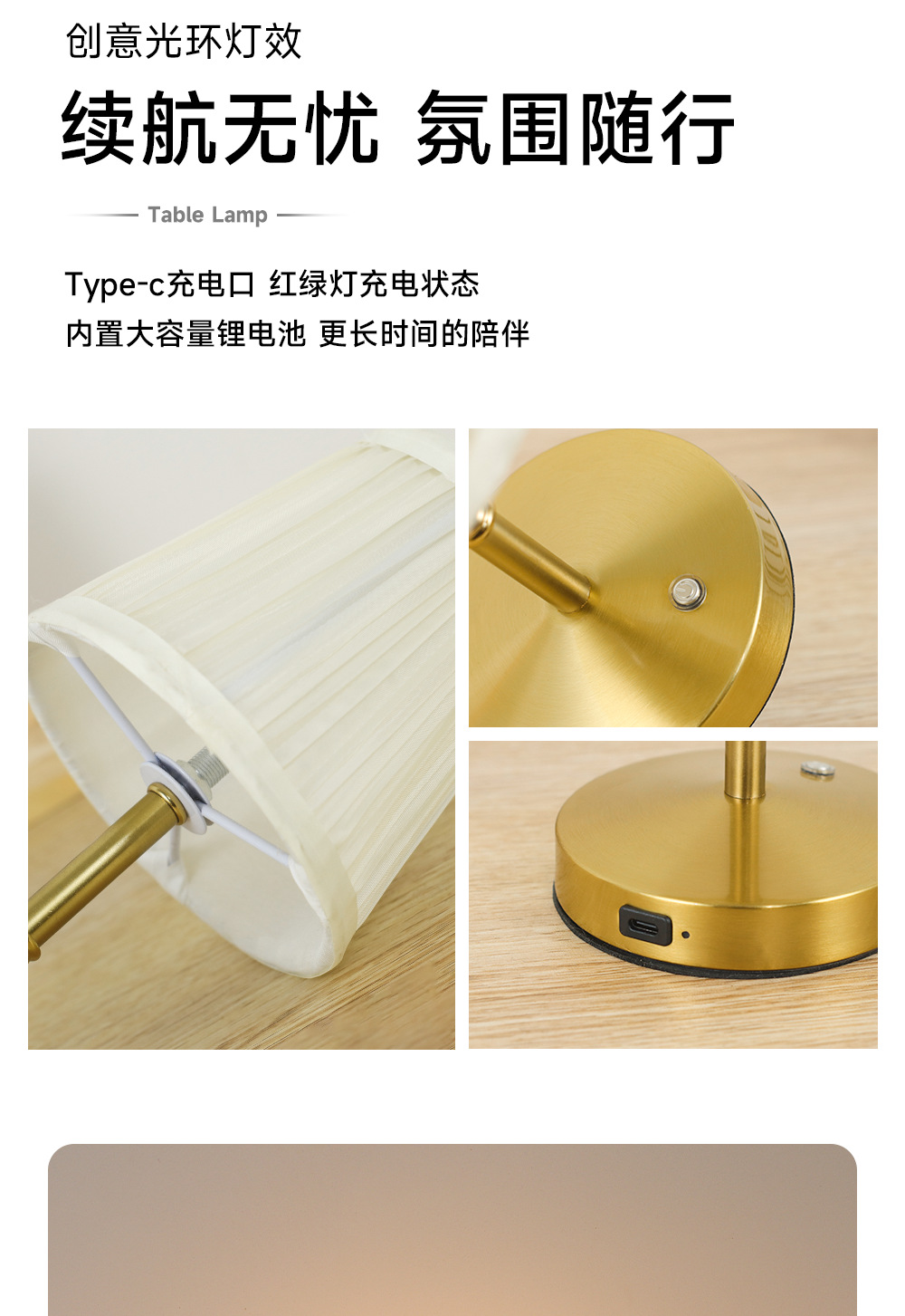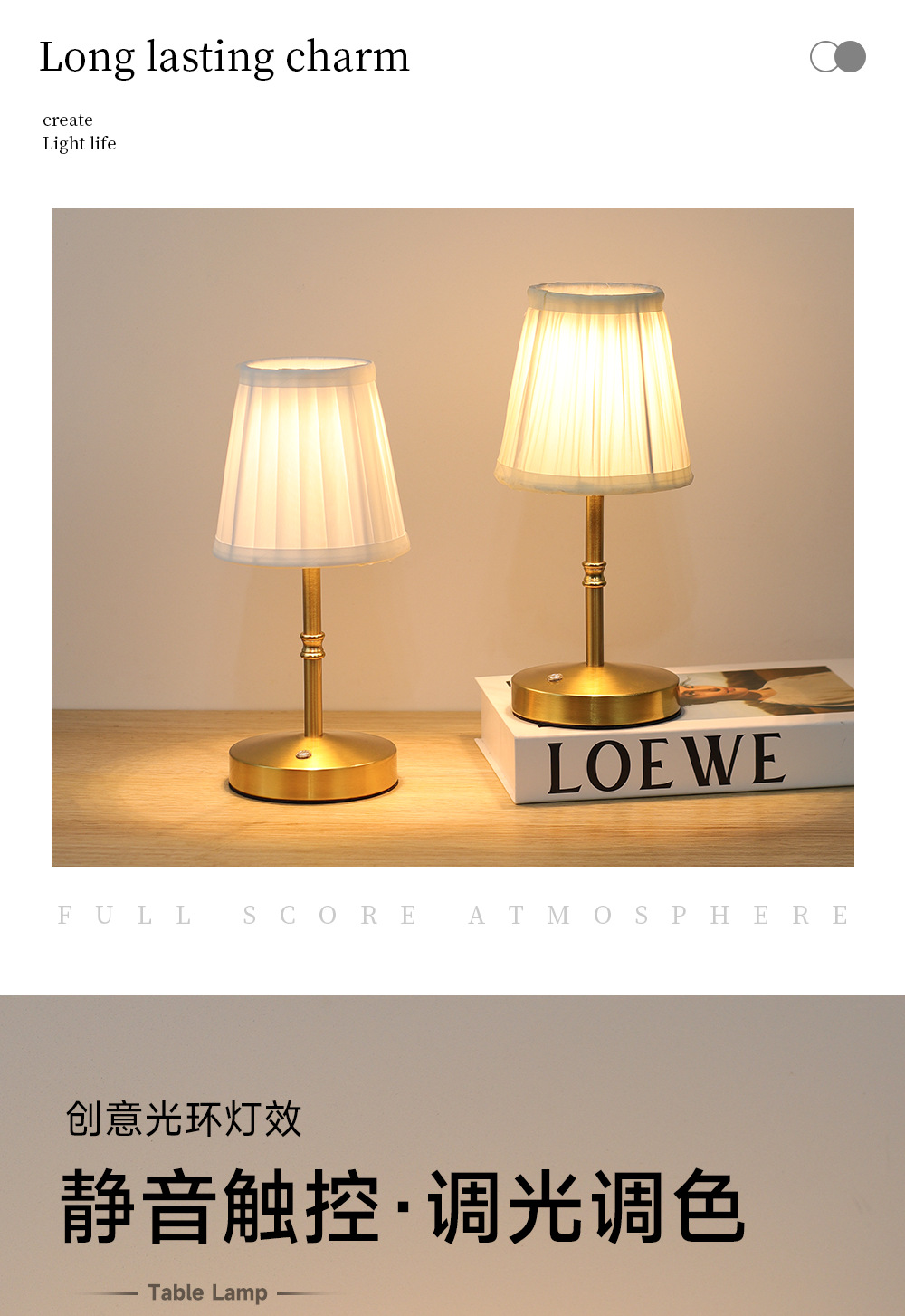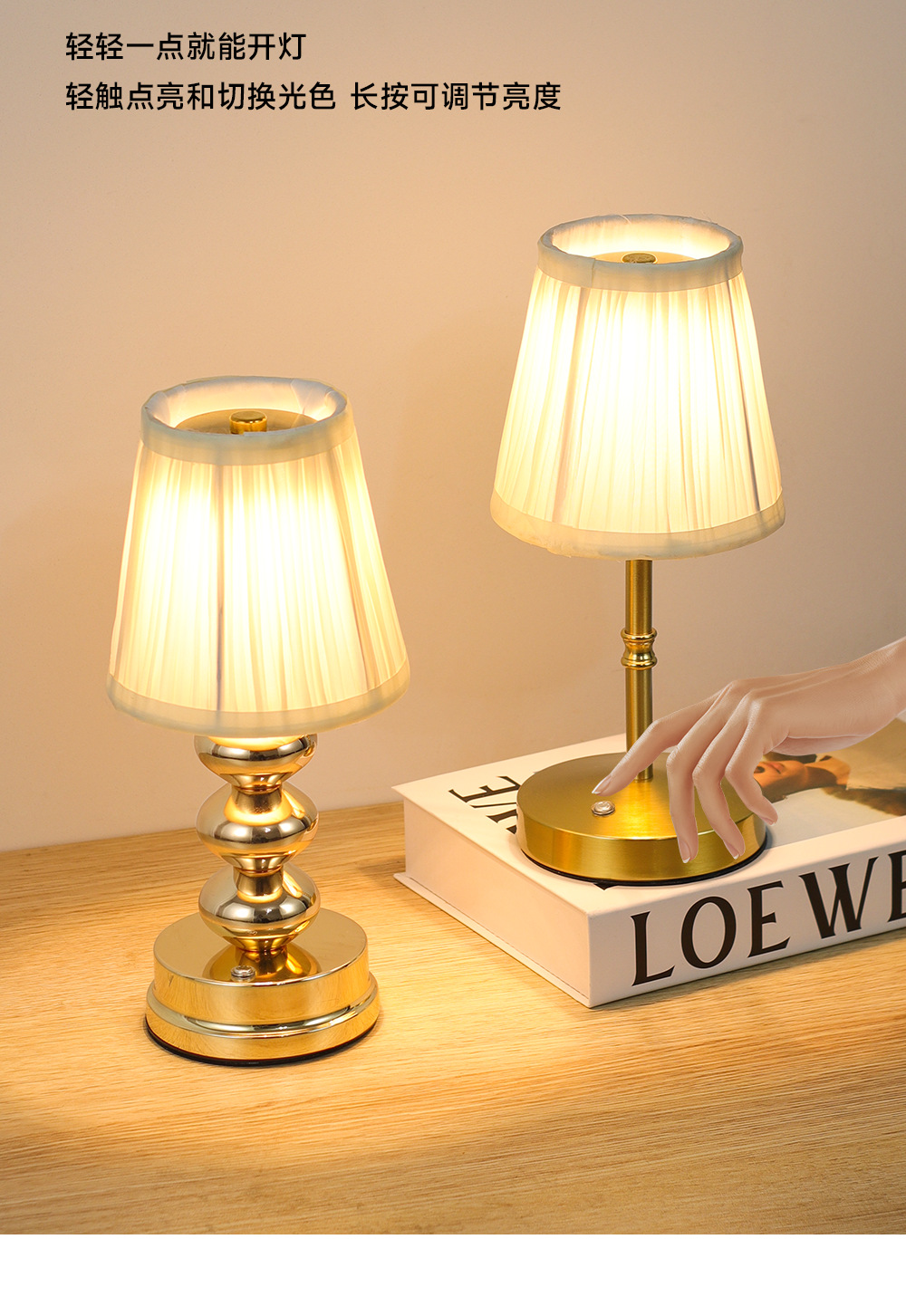 국경 간 북유럽 천 커버 충전식 테이블 램프 테이블 램프 식탁 분위기 램프 고급 침실 머리맡 램프 야간 조명 도매