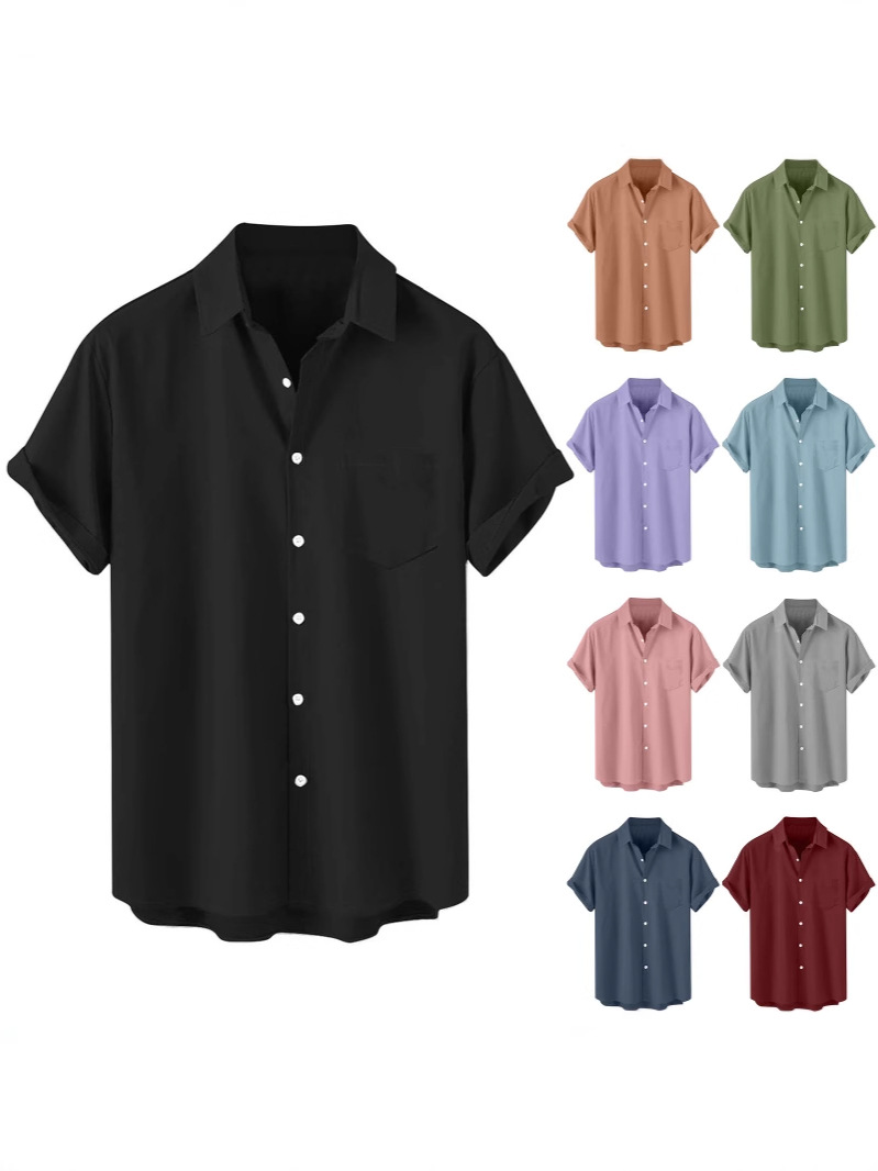 2025 신작 남성용 대형 라펠 4방향 신축성 루즈 셔츠 솔리드 컬러 여름 심플 반팔 다용도 재킷