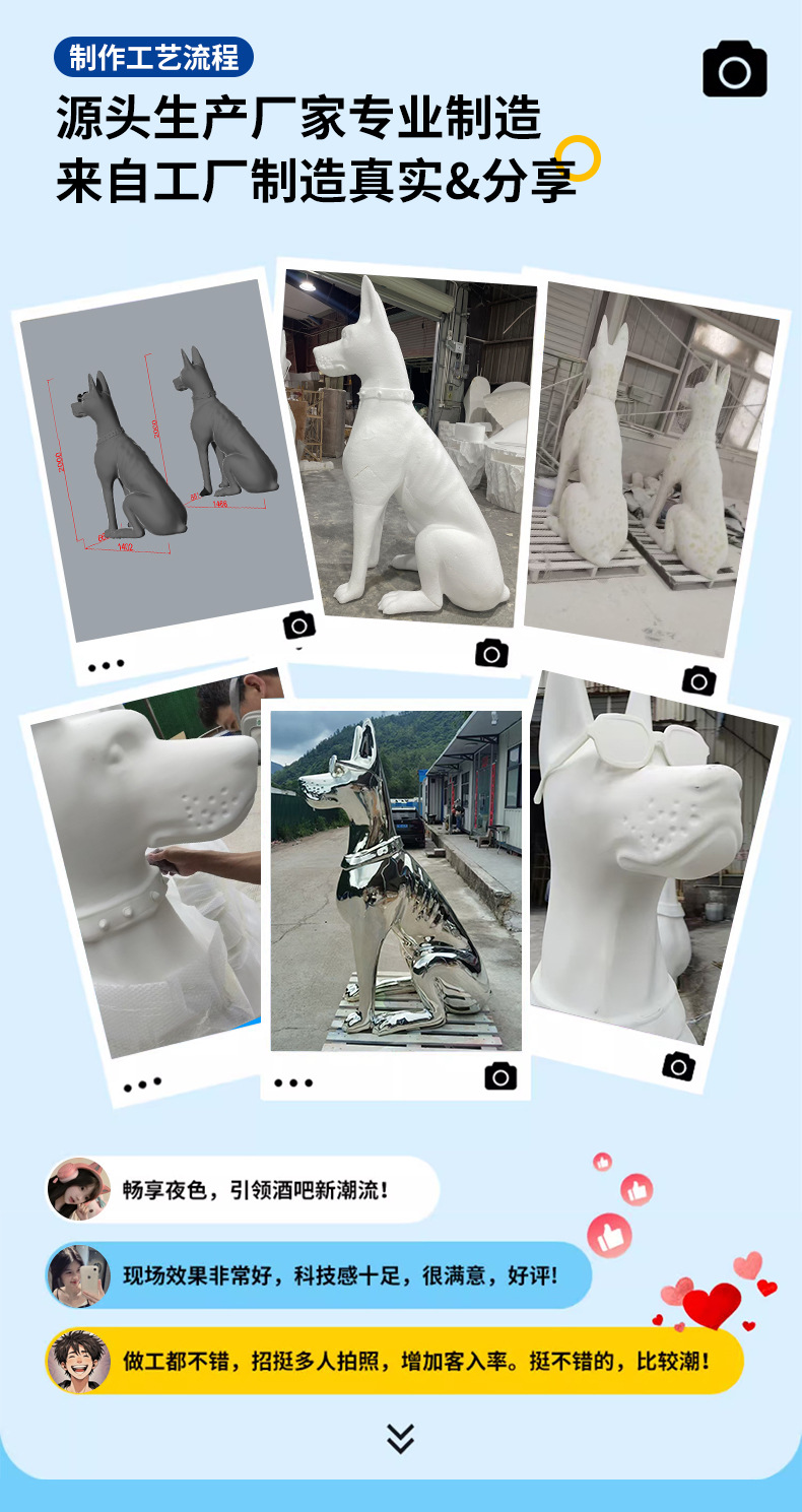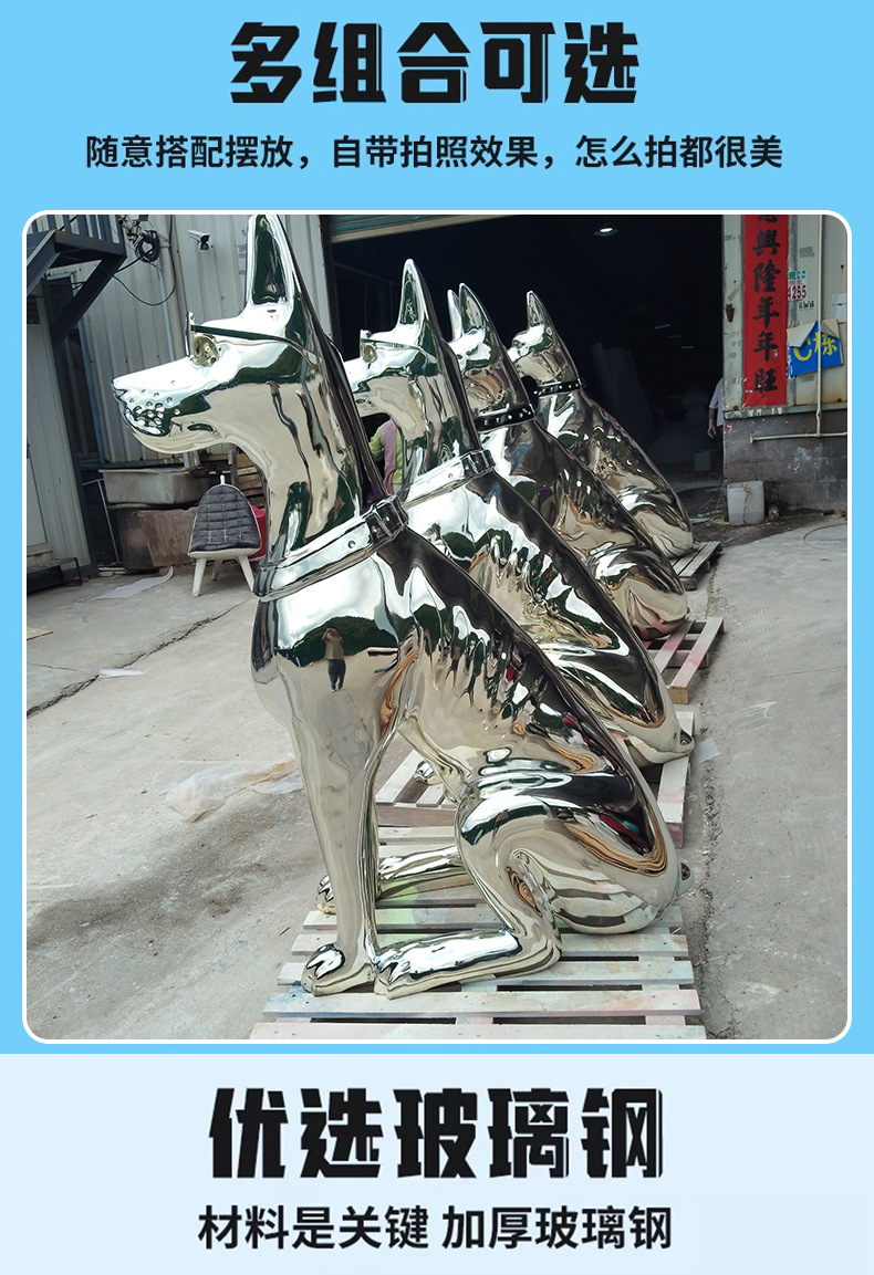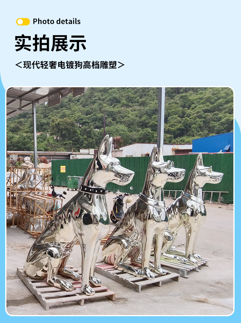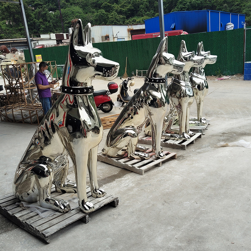 국경 간 대외 무역 유리 섬유 강화 플라스틱 전기 도금 개 조각 야외 공원 풍경 정원 광장 및 기타 야외 장식 장식품스토어 가기