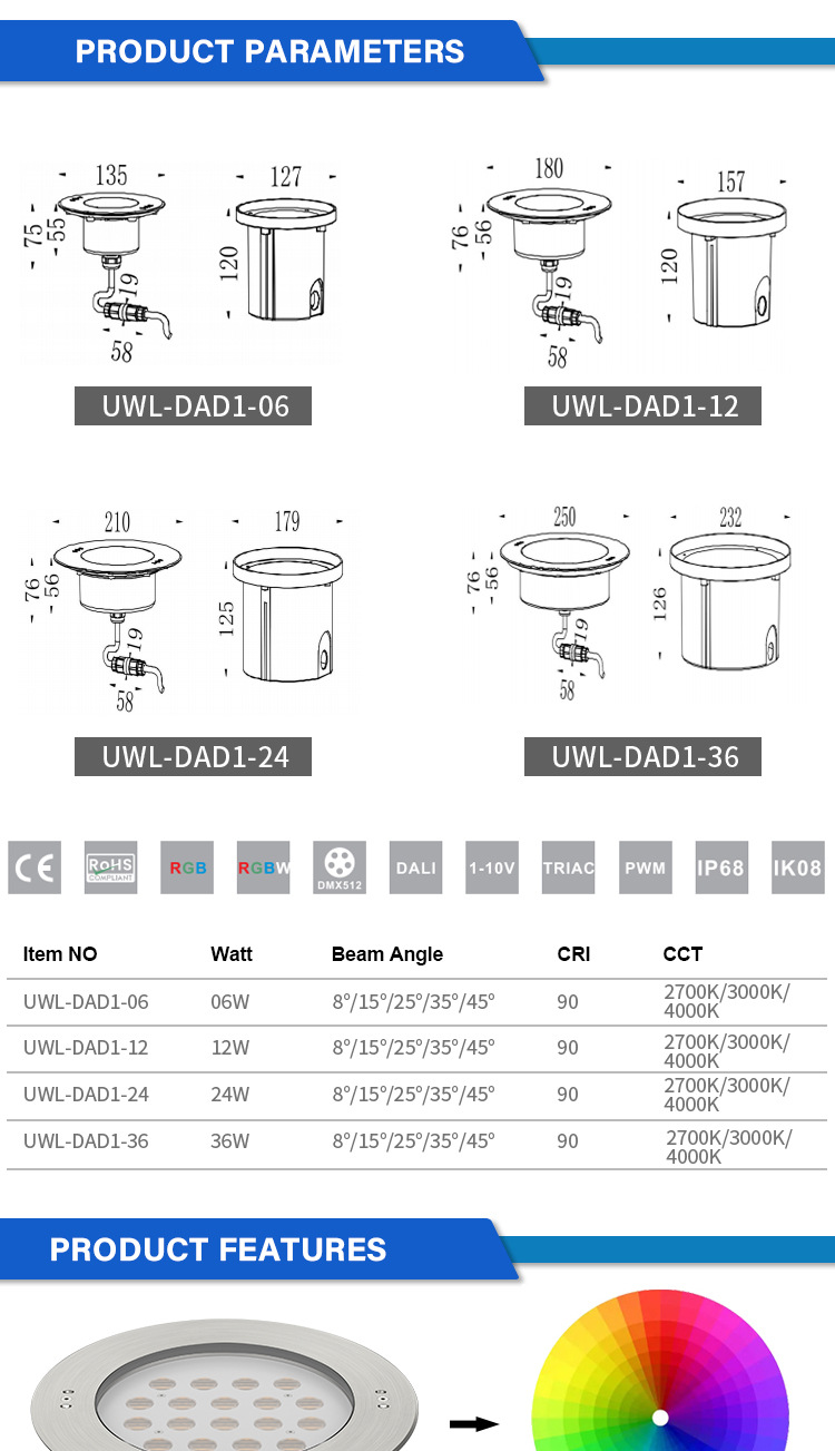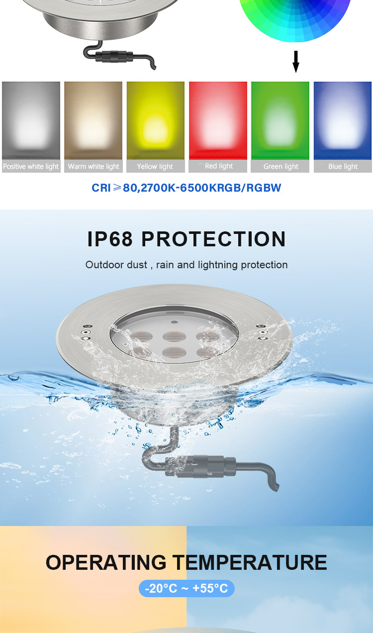 6W 야외 LED 임베디드 수중 조명 316L 스테인레스 스틸 조경 조명 분수 풀 램프 IP68