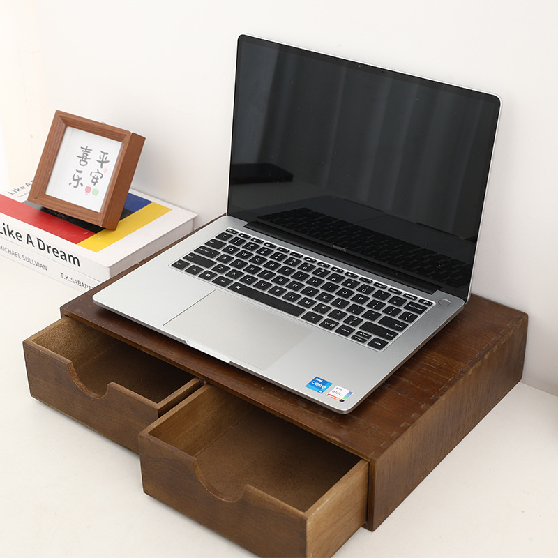 원목 서랍형 커피머신 높이 조절대, 데스크탑 커피 캡슐 보관함, 바 카운터 컴퓨터 높이 조절 수납 선반