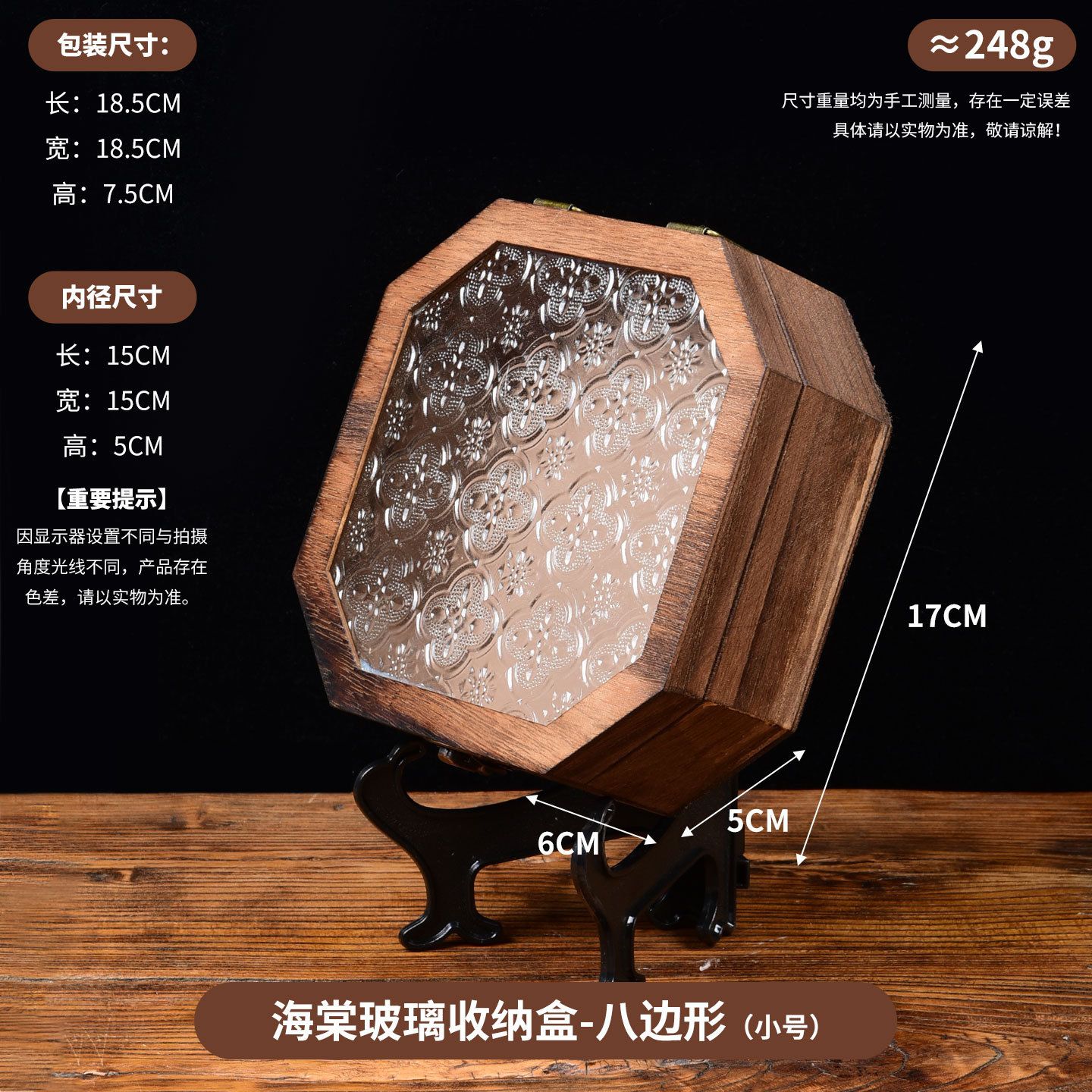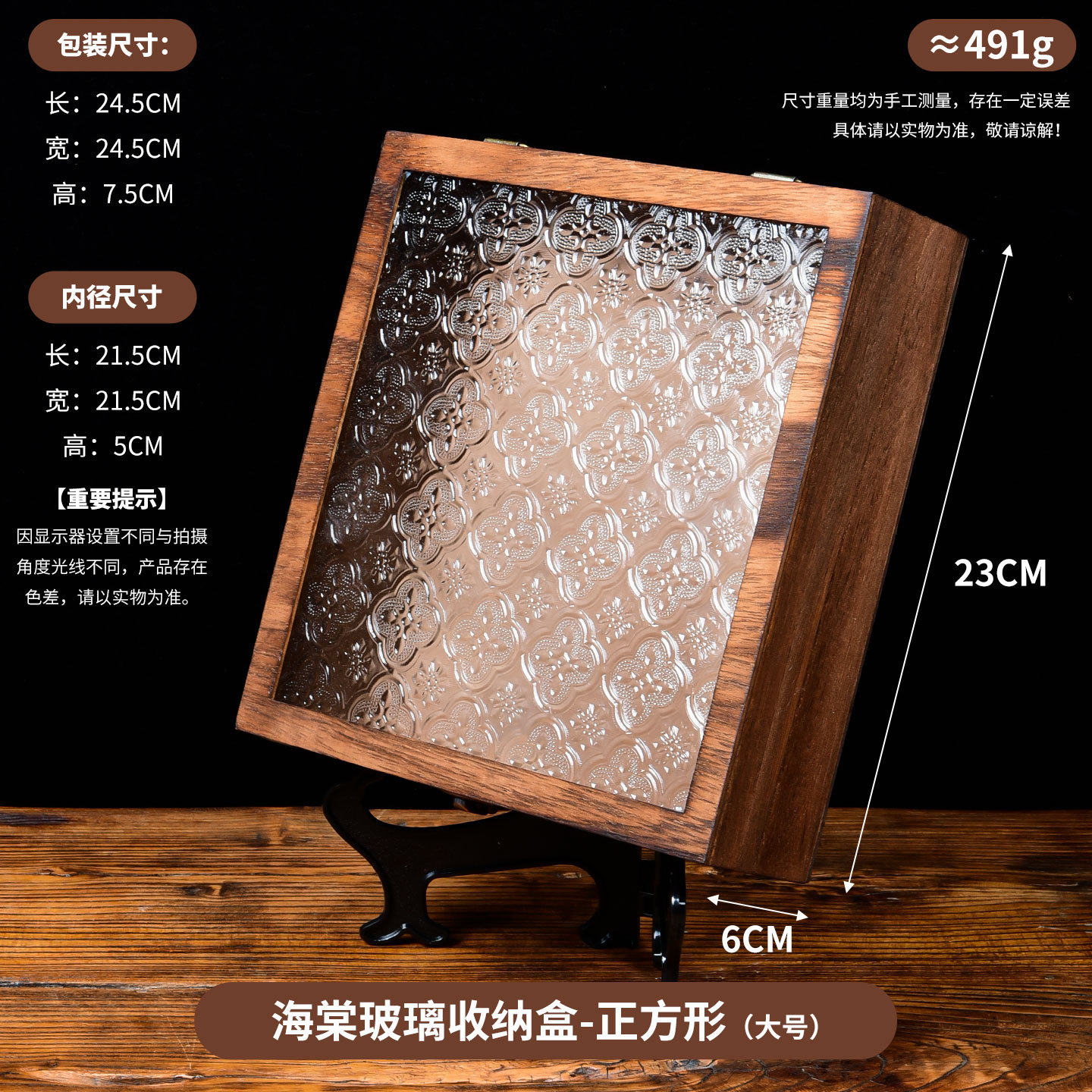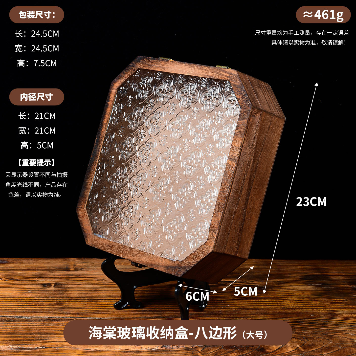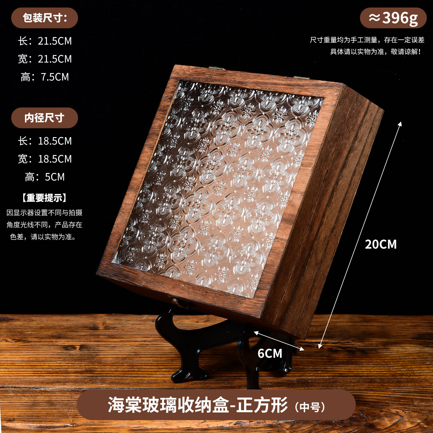 Jiugongge 베고니아 꽃 유리 보관 상자 화장대 장식 레트로 데스크탑 잡화 정리 플립 우드 박스