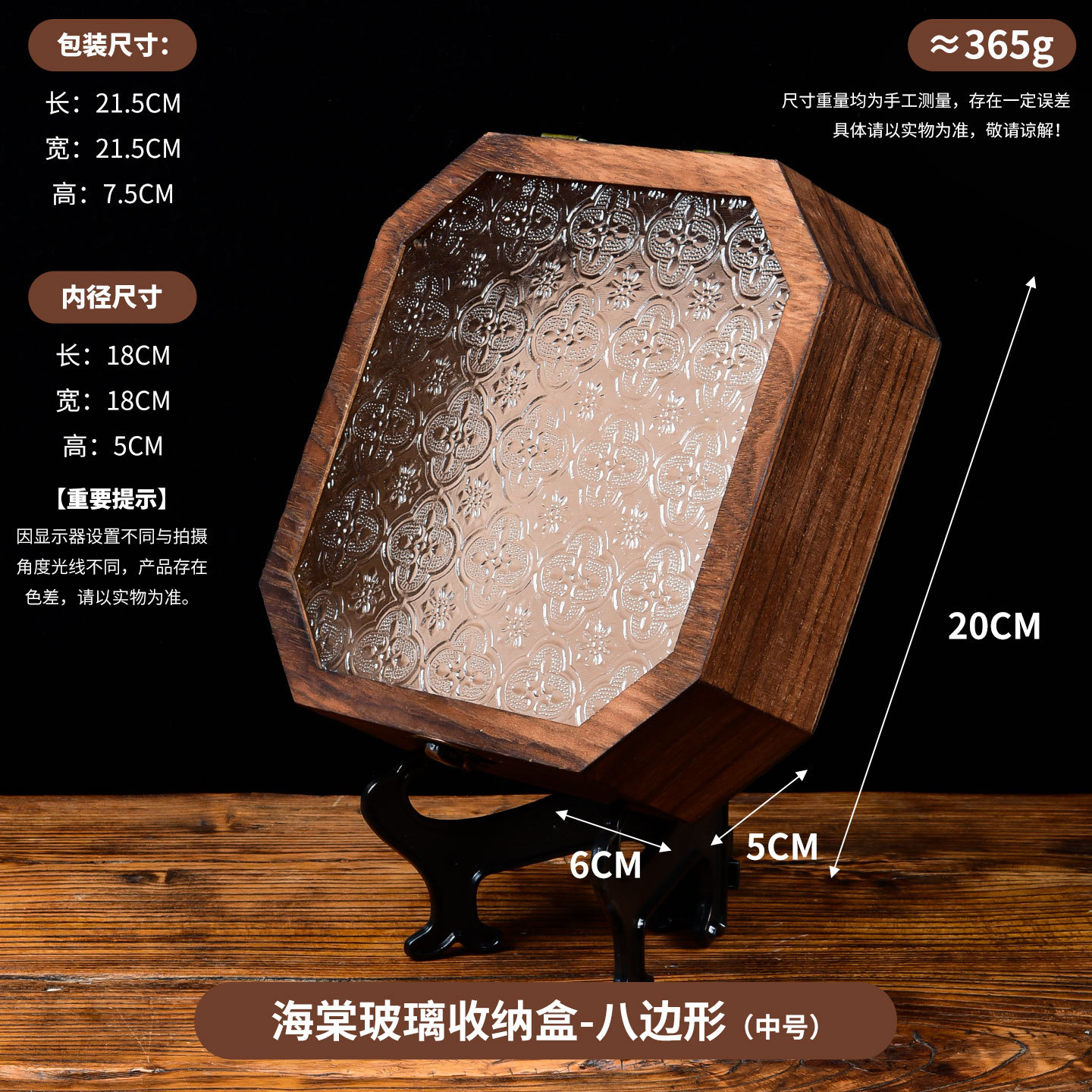 Jiugongge 베고니아 꽃 유리 보관 상자 화장대 장식 레트로 데스크탑 잡화 정리 플립 우드 박스스토어 가기