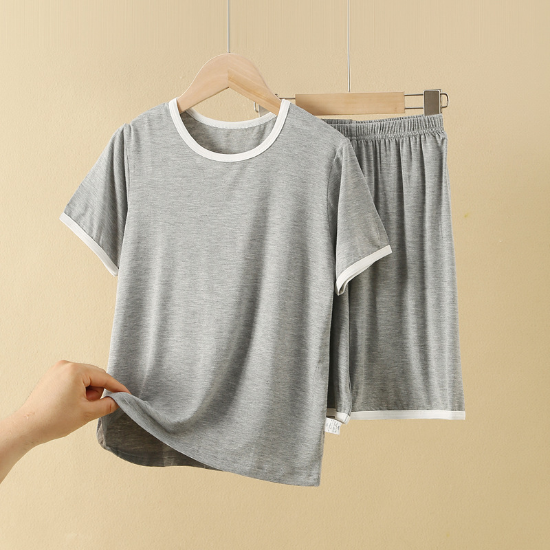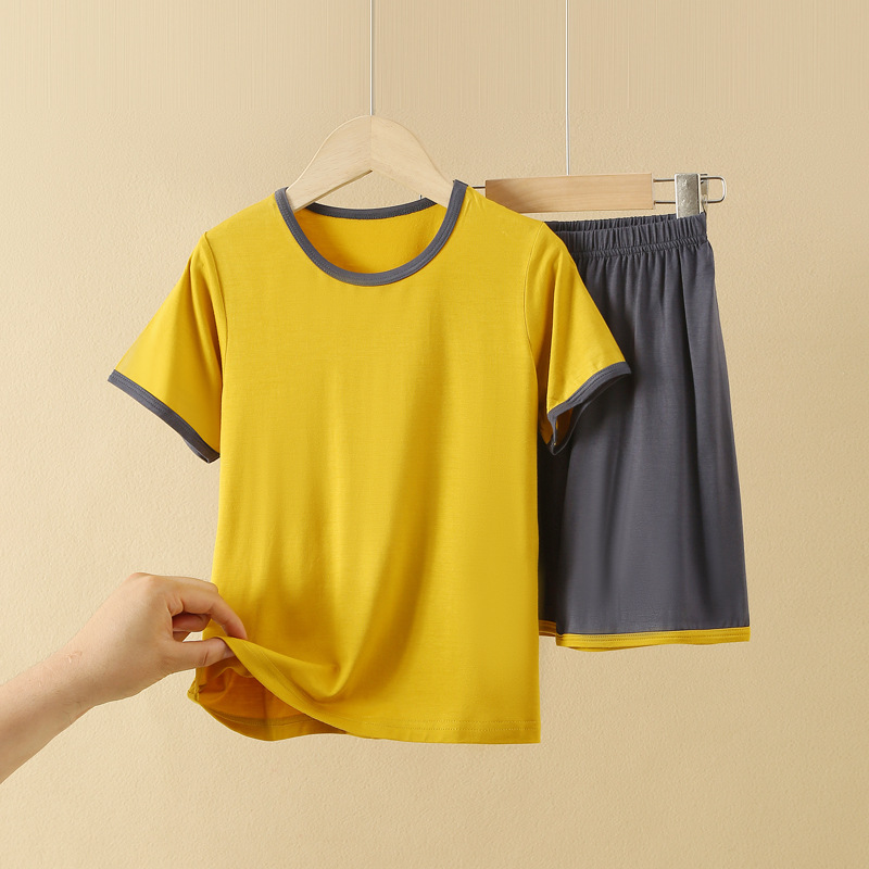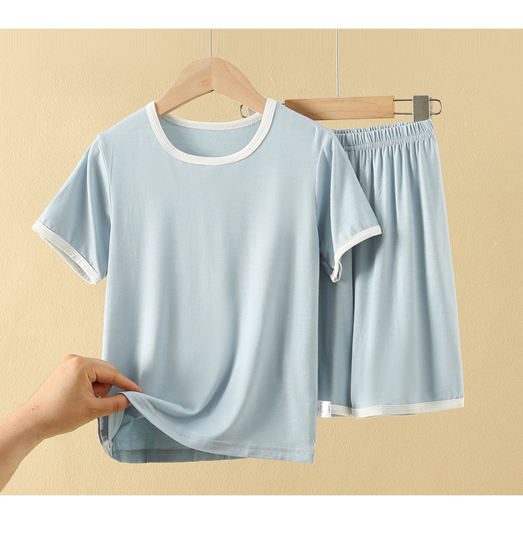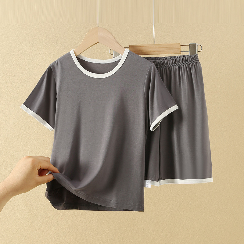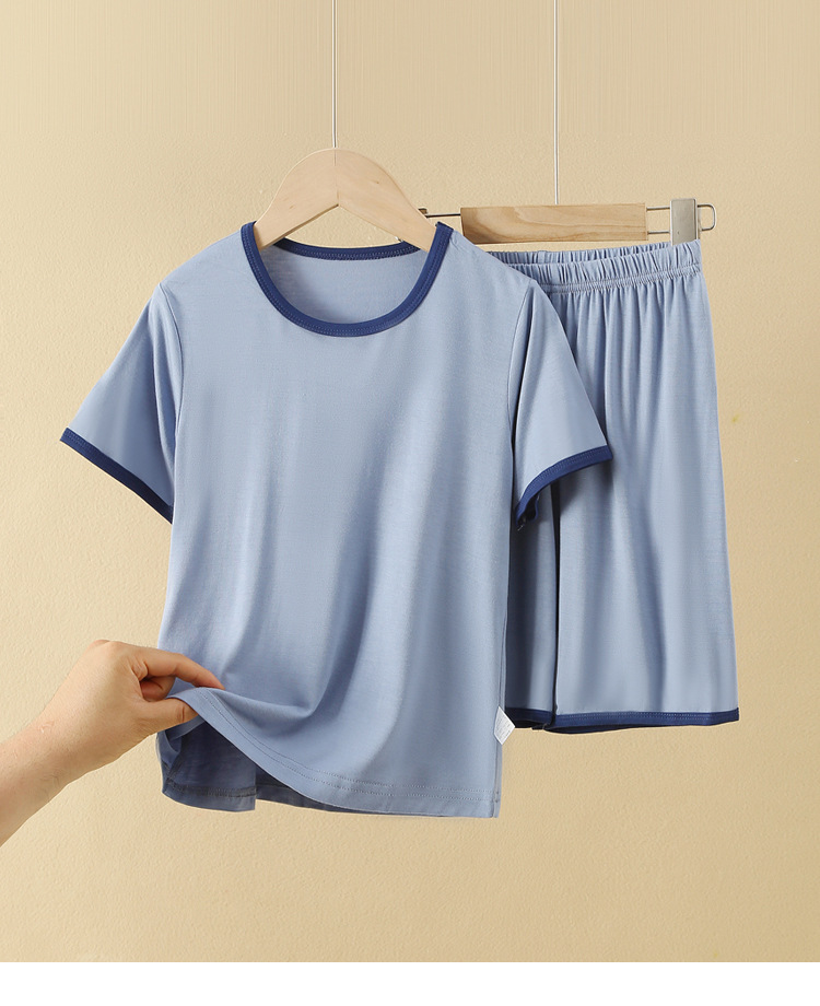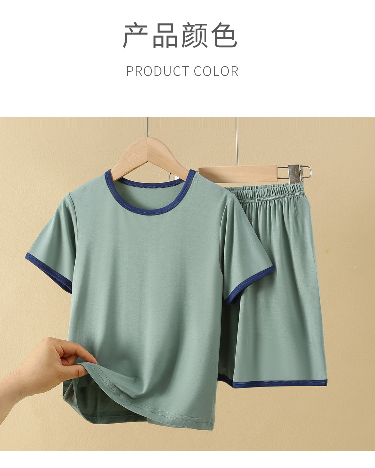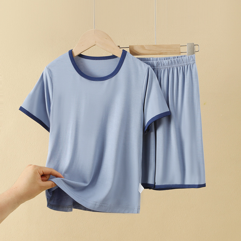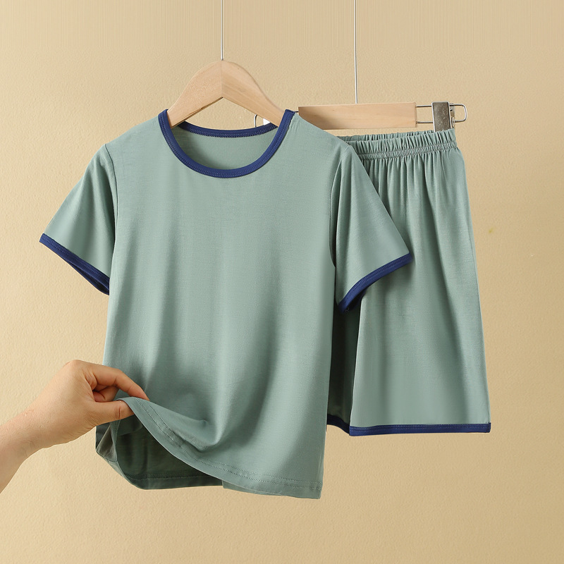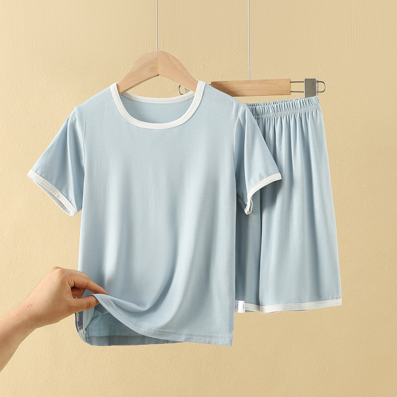 아동용 반팔 반바지 세트, 모달 아이스 실크 소재, 남아용 홈웨어, 중대형 아동용 잠옷, 투피스 세트, 외부에서 착용 가능