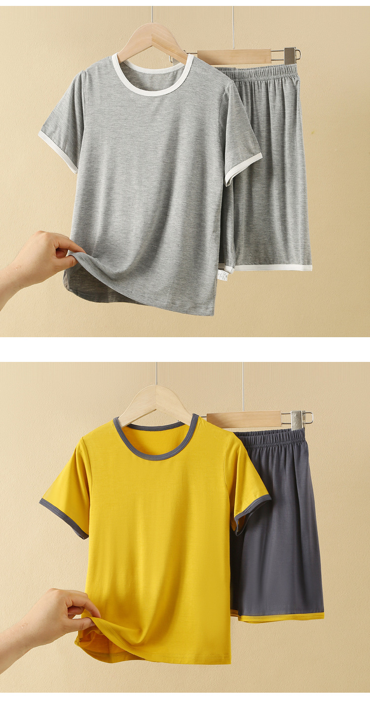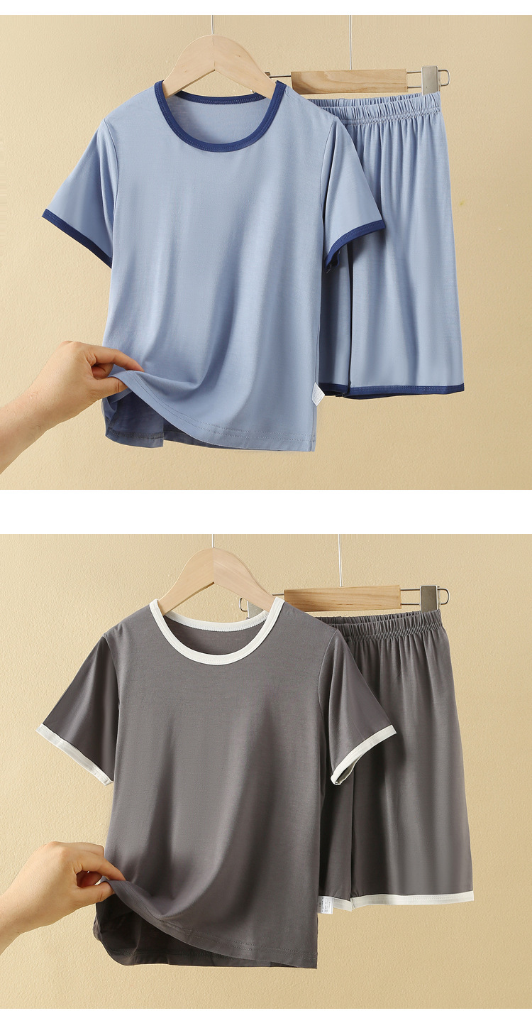 아동용 반팔 반바지 세트, 모달 아이스 실크 소재, 남아용 홈웨어, 중대형 아동용 잠옷, 투피스 세트, 외부에서 착용 가능스토어 가기