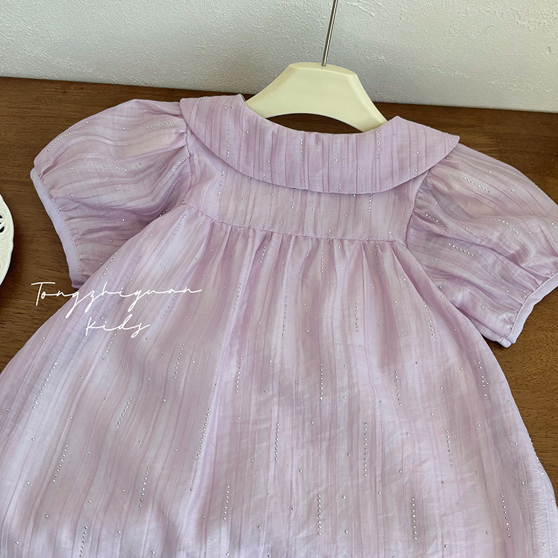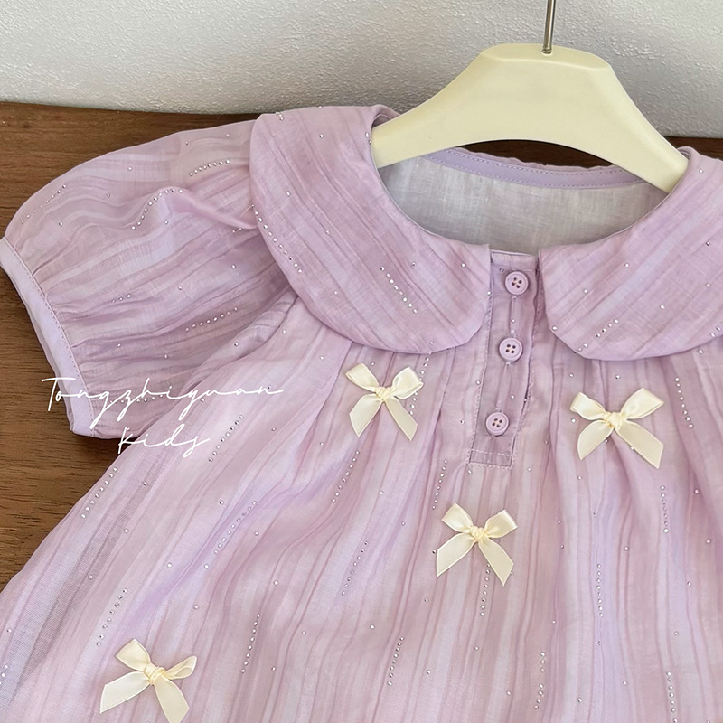 여자 여름 새로운 보라색 고급 반짝이 보우 드레스 아기 소녀 캐주얼 패션 외국 스타일 품질 아동 의류 유행스토어 가기