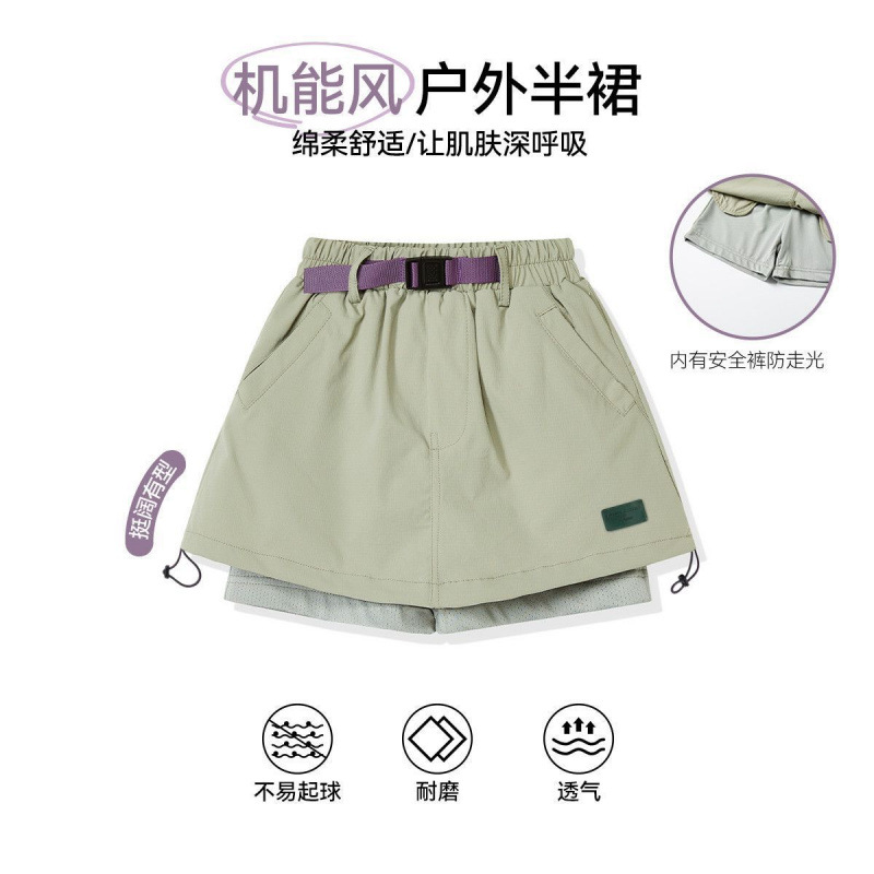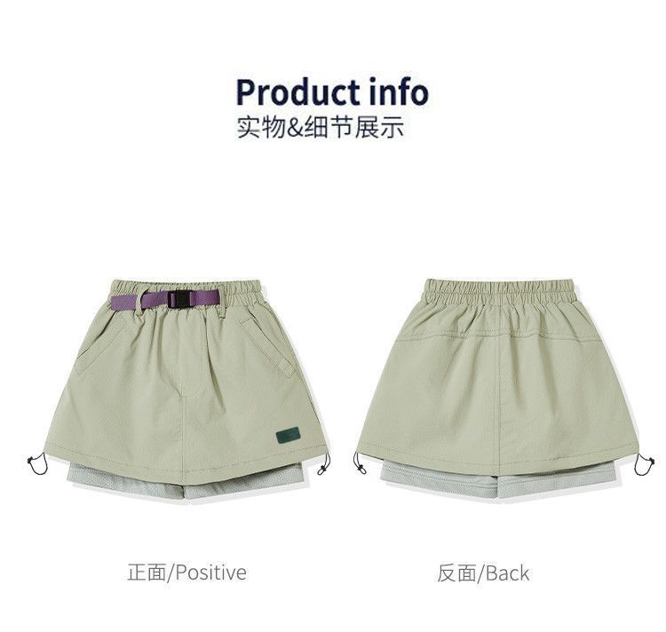 여자 짧은 치마 2025 새로운 캐주얼하고 세련된 가짜 투피스 작업복 짧은 벨트 시원한 신축성있는 허리
