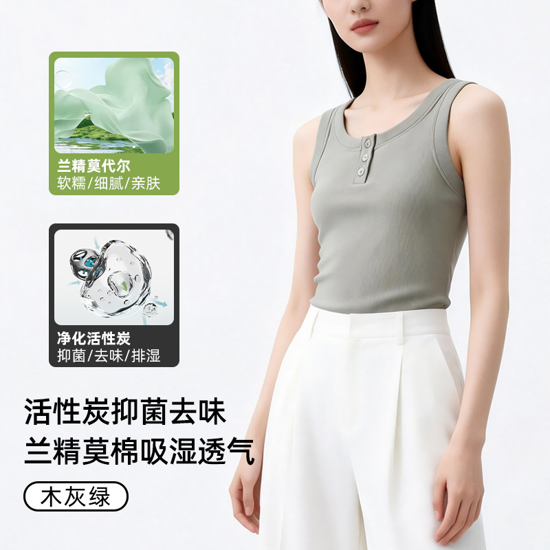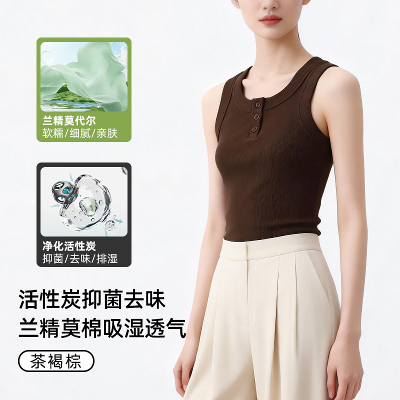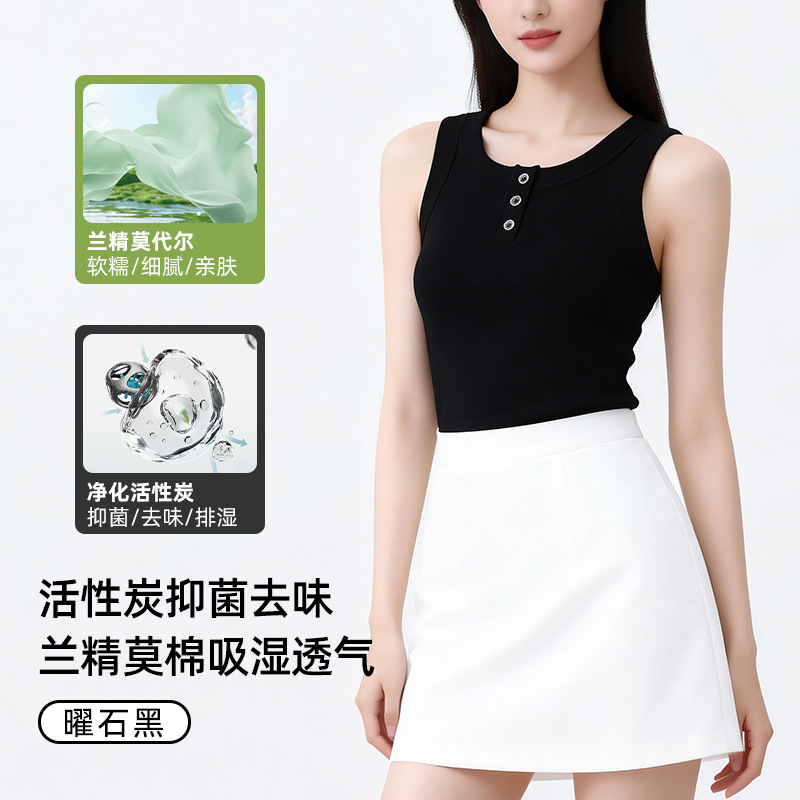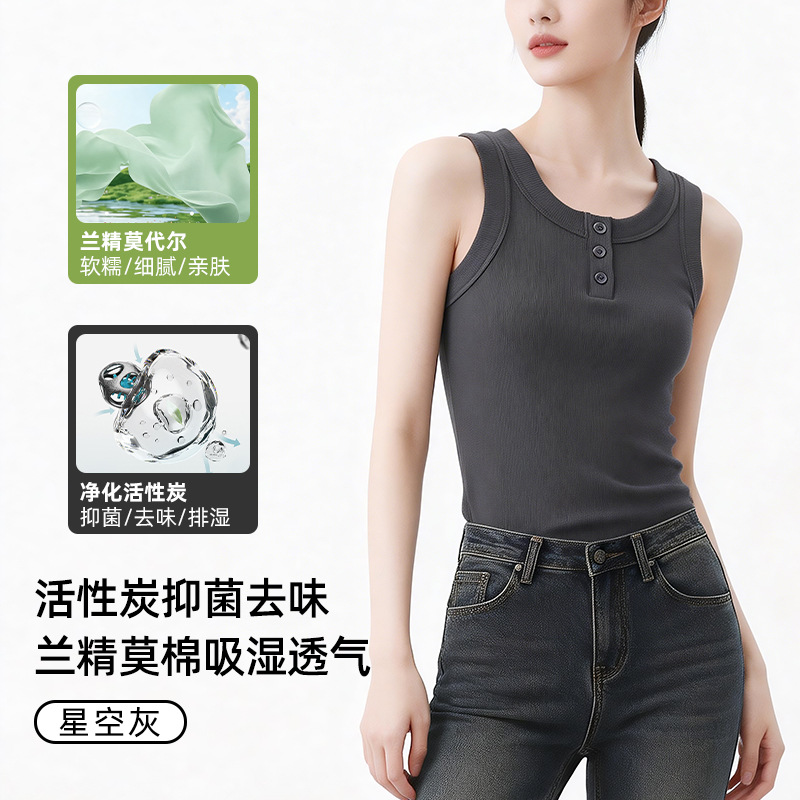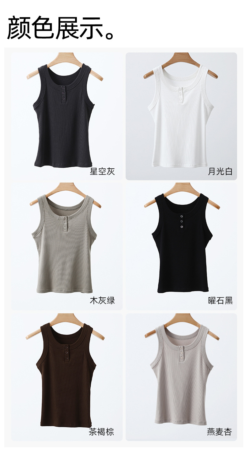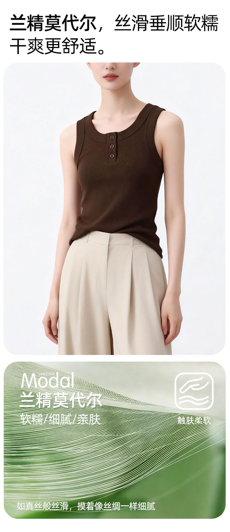【란징 모달】심플 스타일 조끼형 탑 여름용 단추 장식 슬림핏 단색 이너웨어 통기성 스포츠 민소매 탑