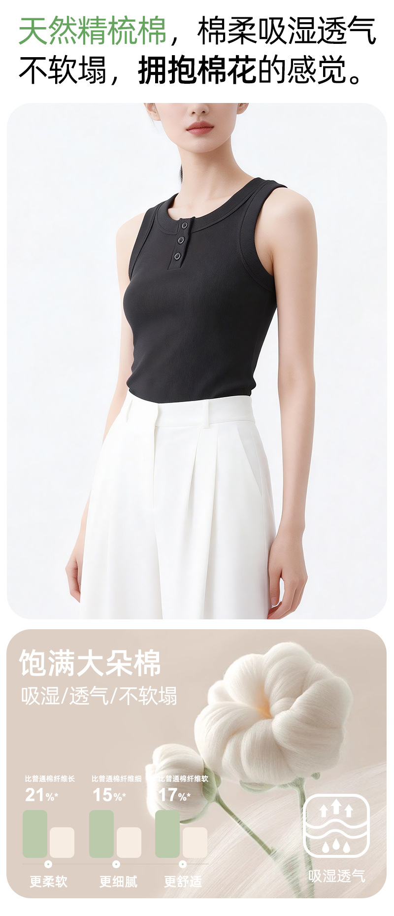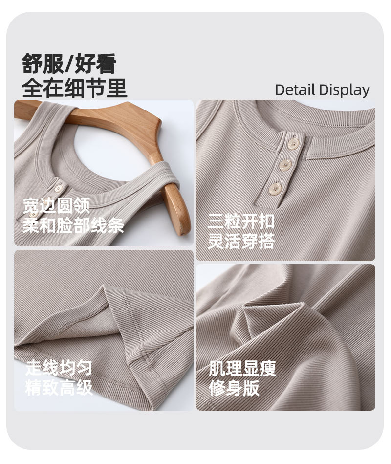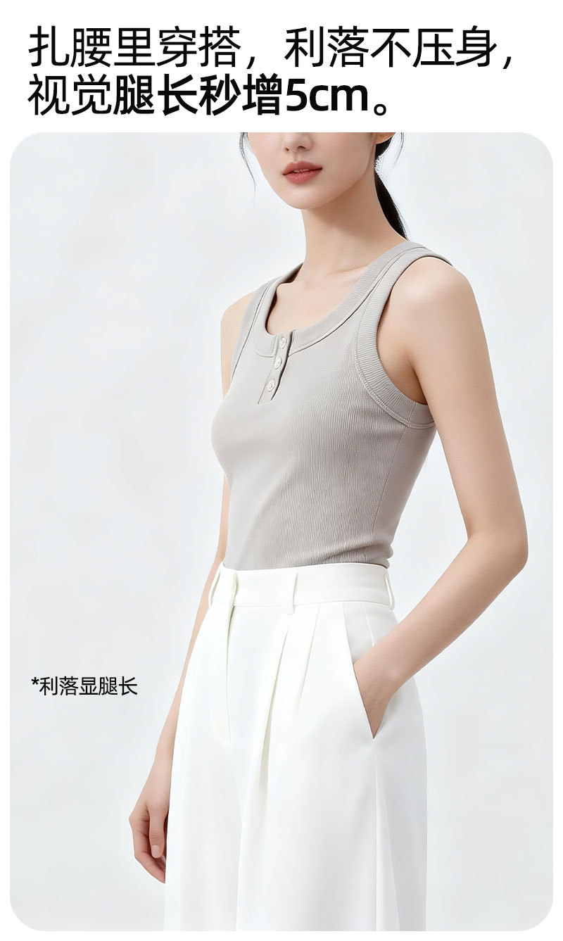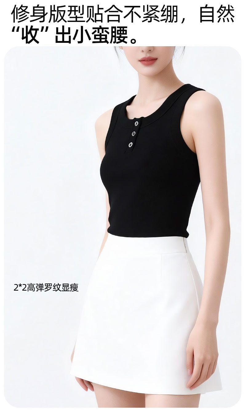 【란징 모달】심플 스타일 조끼형 탑 여름용 단추 장식 슬림핏 단색 이너웨어 통기성 스포츠 민소매 탑