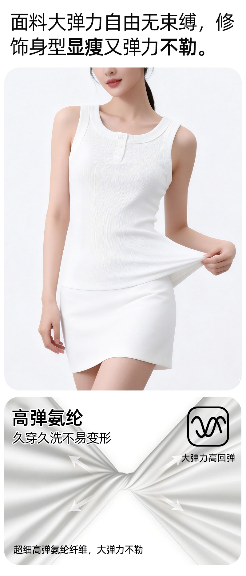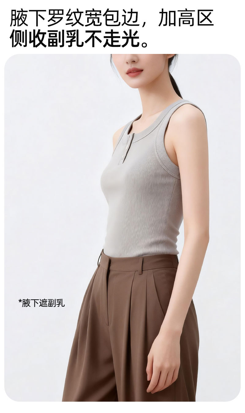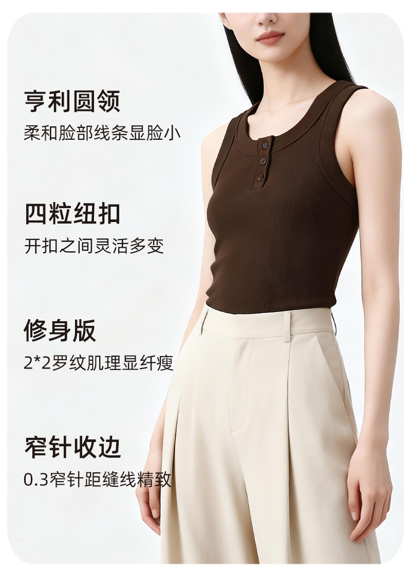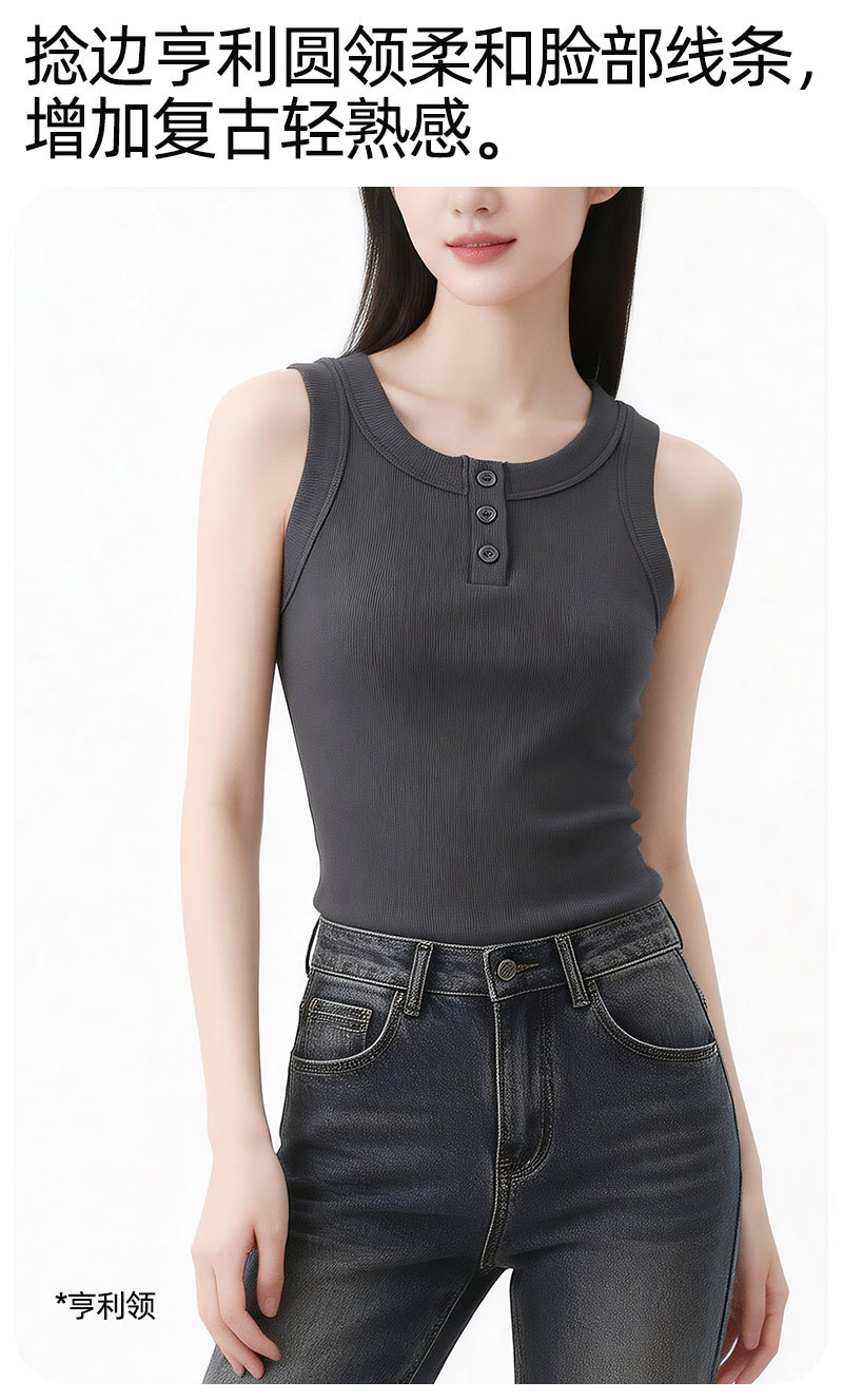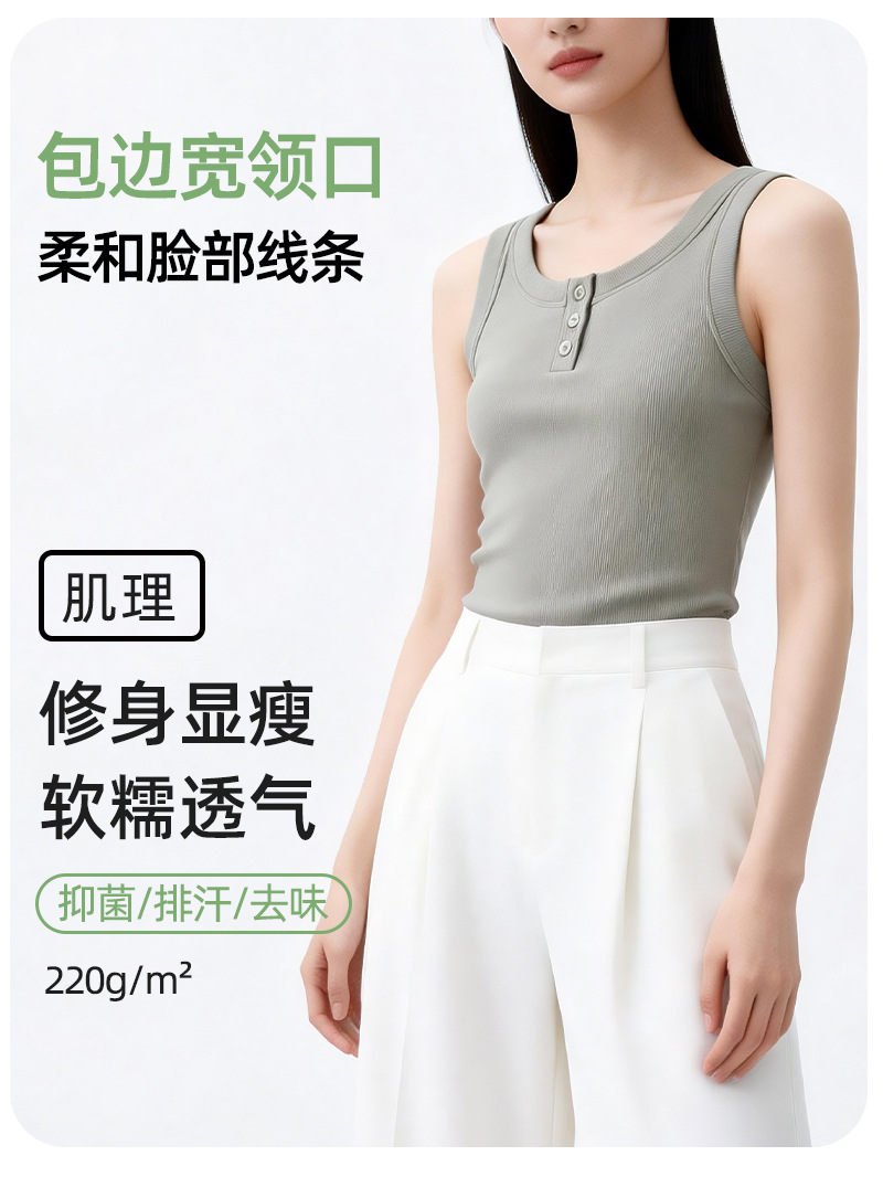 【란징 모달】심플 스타일 조끼형 탑 여름용 단추 장식 슬림핏 단색 이너웨어 통기성 스포츠 민소매 탑