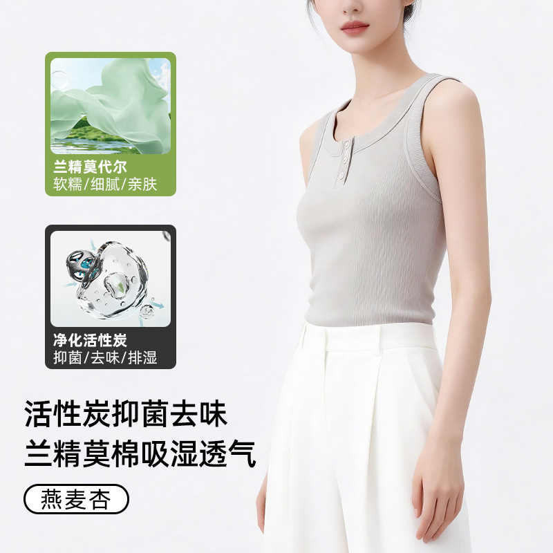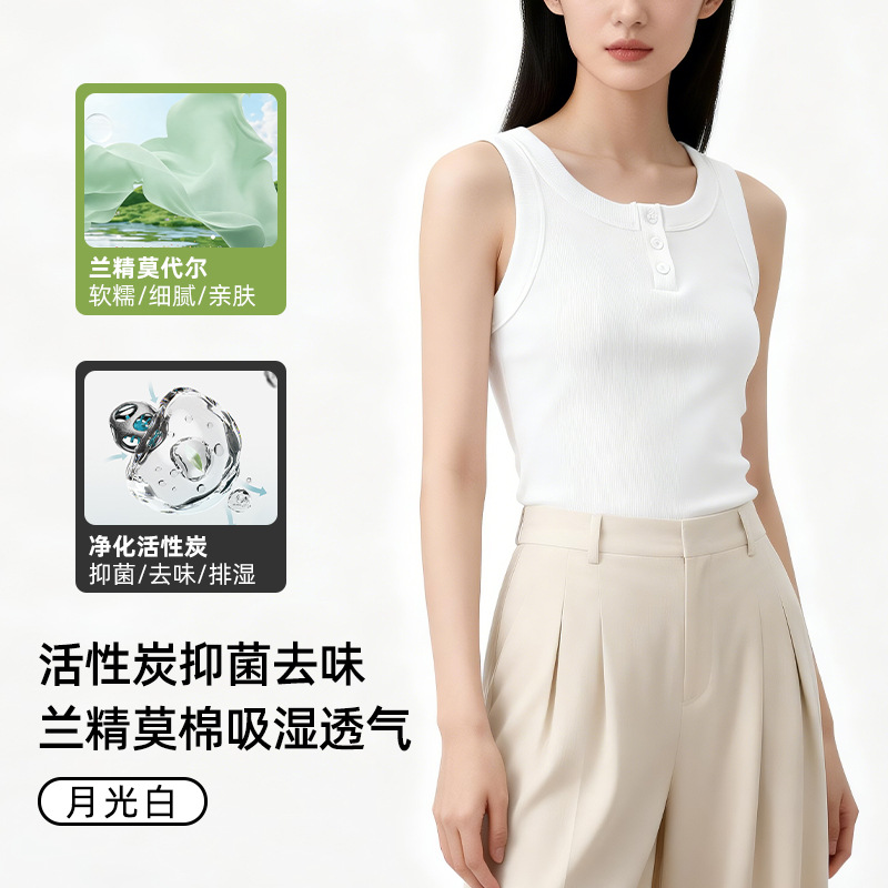 【란징 모달】심플 스타일 조끼형 탑 여름용 단추 장식 슬림핏 단색 이너웨어 통기성 스포츠 민소매 탑스토어 가기