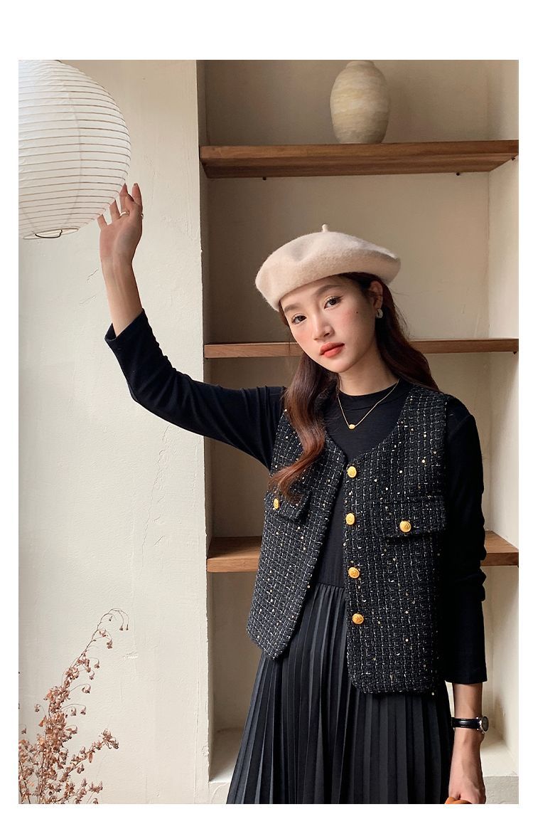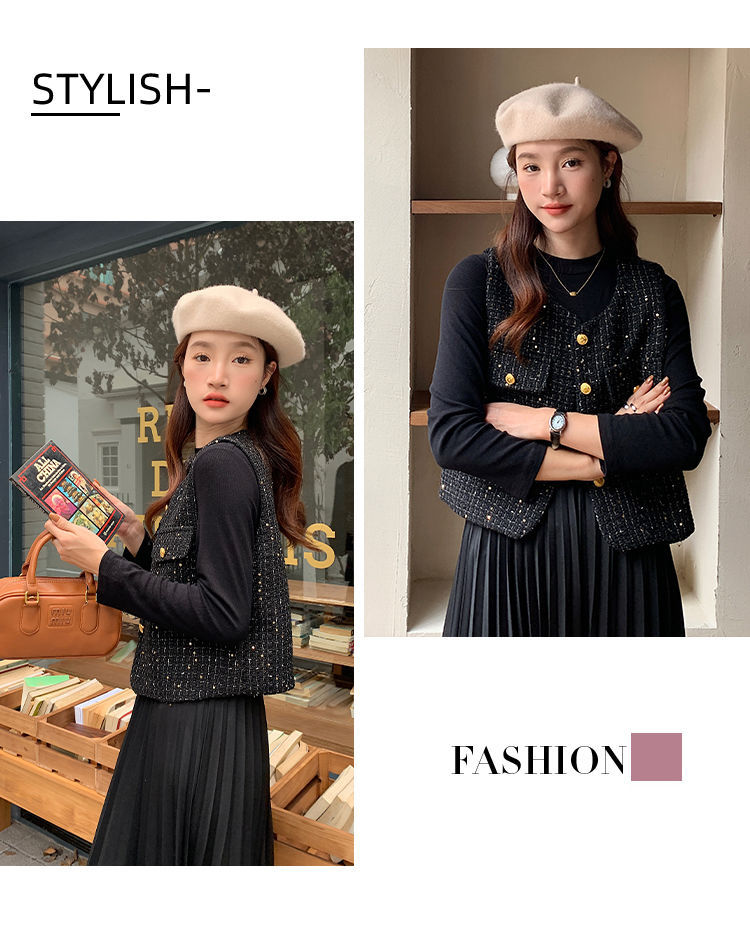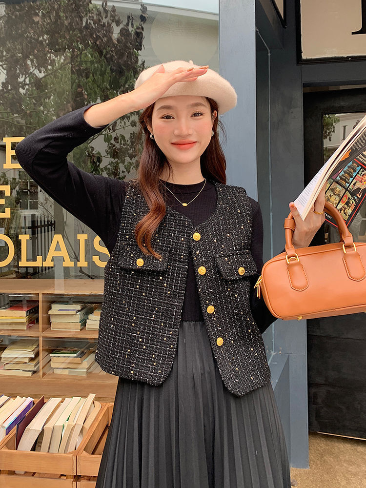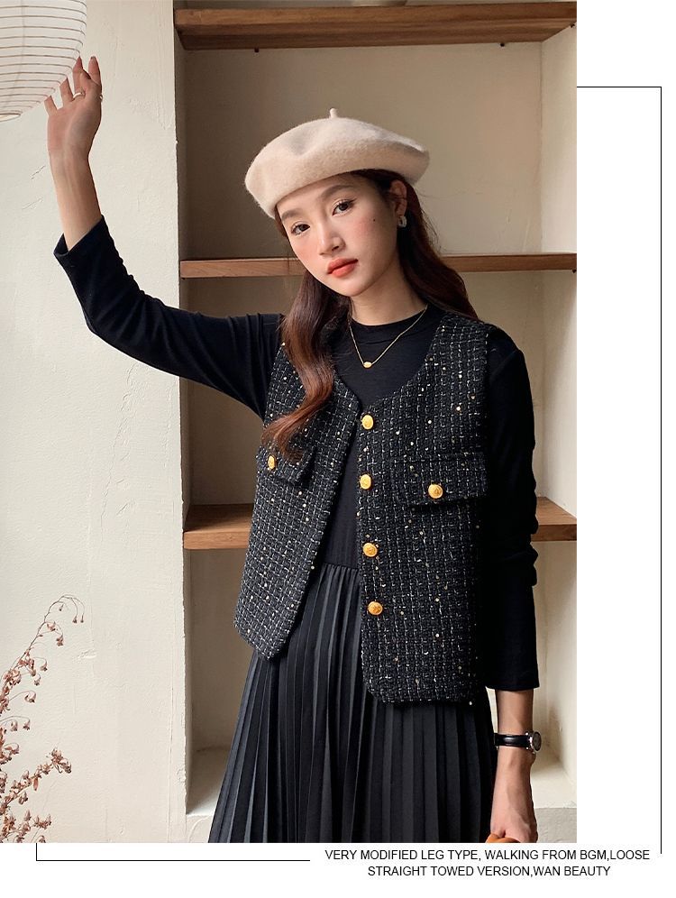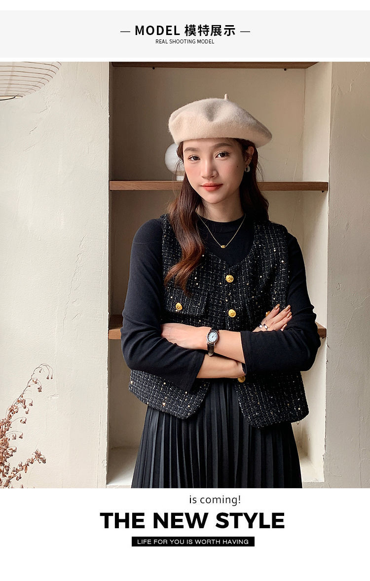 Xiaoxiangfeng 조끼 2025 패션 새로운 민소매 조끼 재킷 양복 조끼 고급 기질 스팽글 새해 여성 조끼스토어 가기