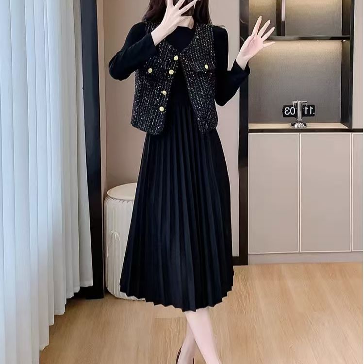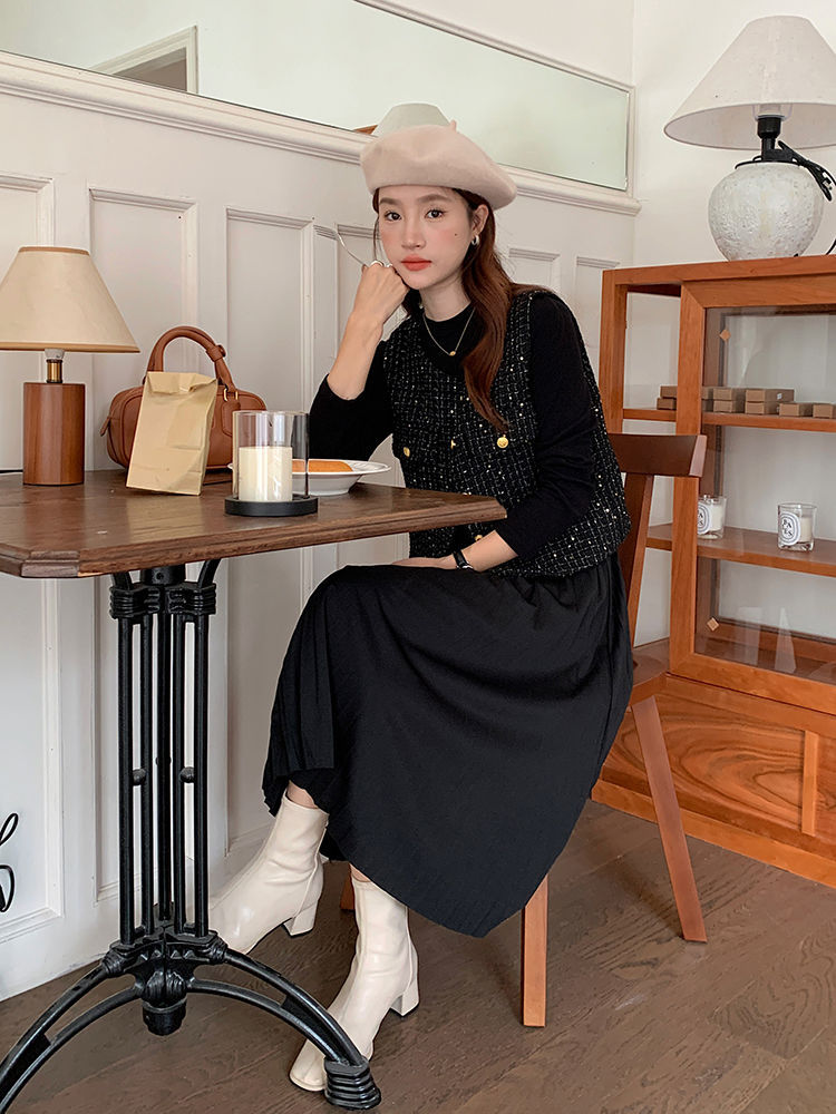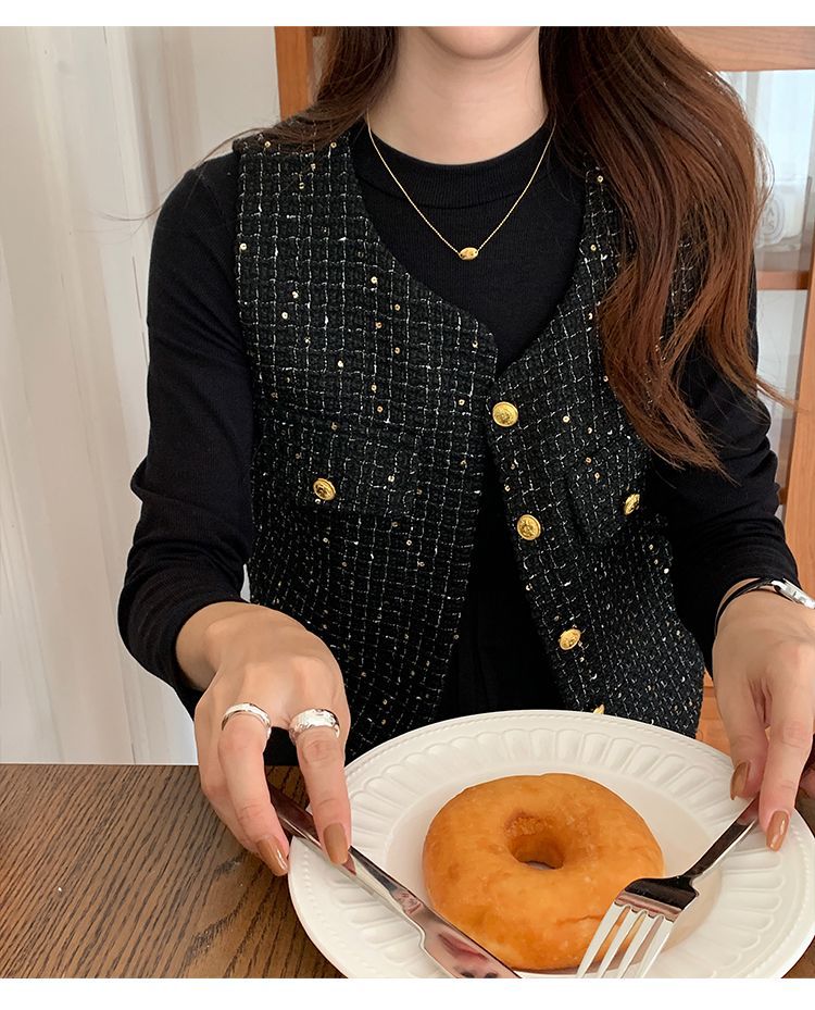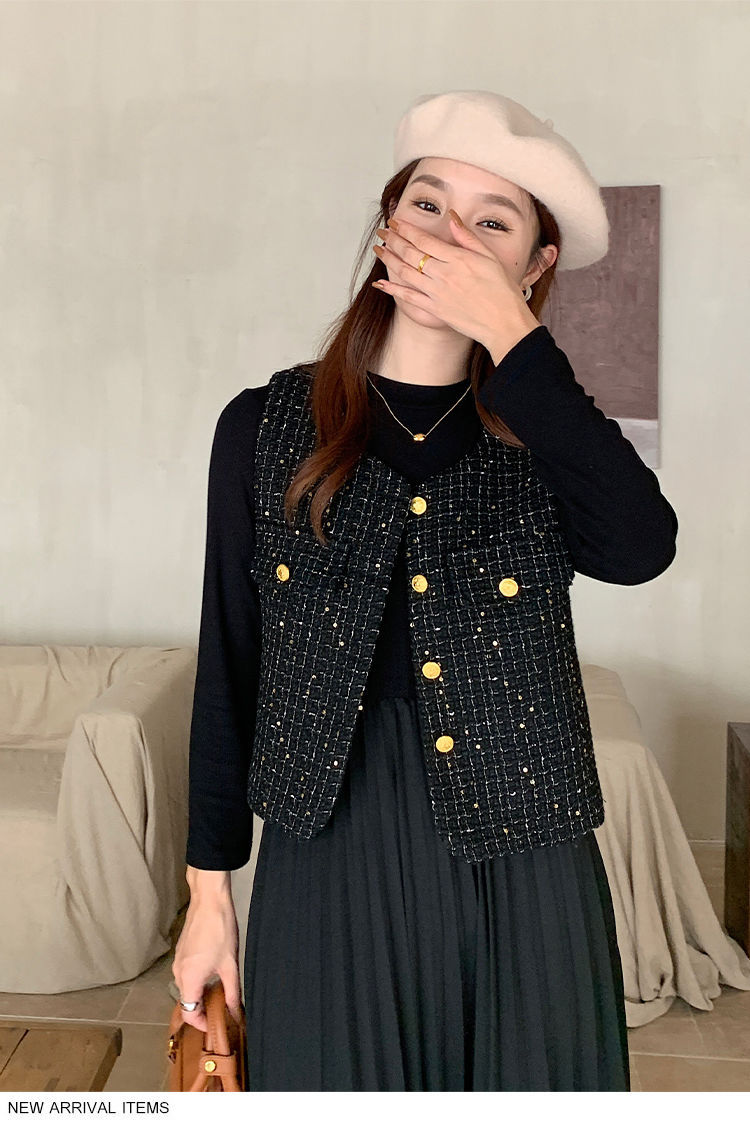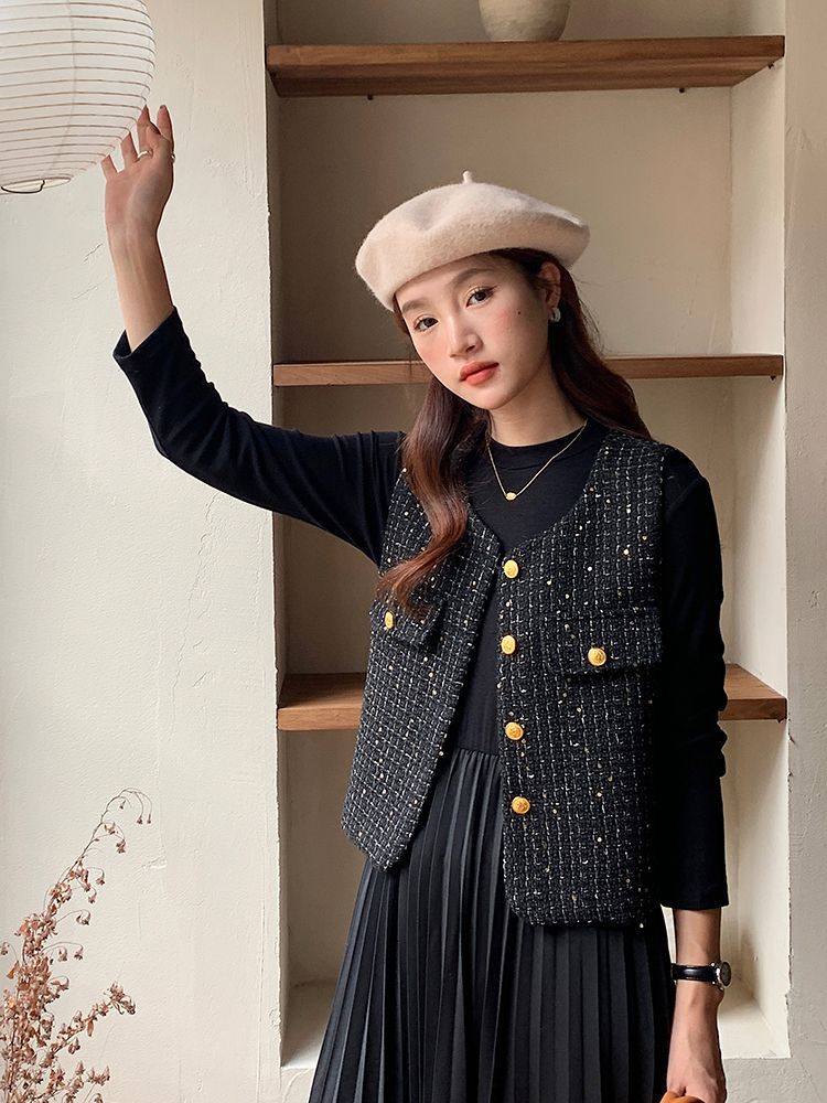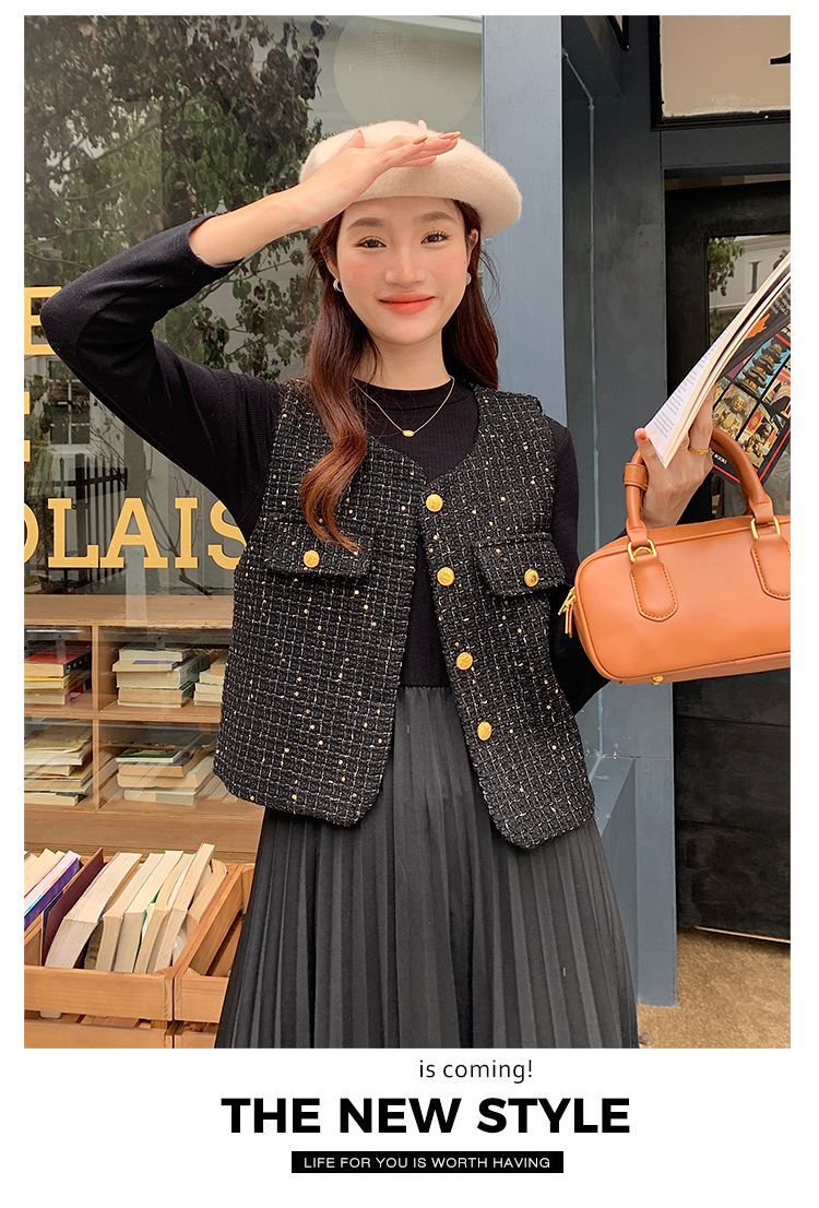 Xiaoxiangfeng 조끼 2025 패션 새로운 민소매 조끼 재킷 양복 조끼 고급 기질 스팽글 새해 여성 조끼스토어 가기