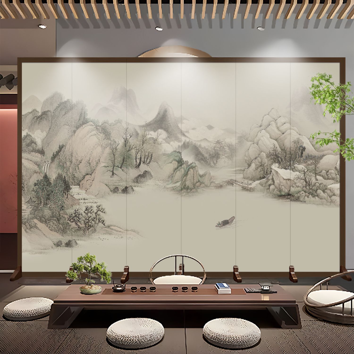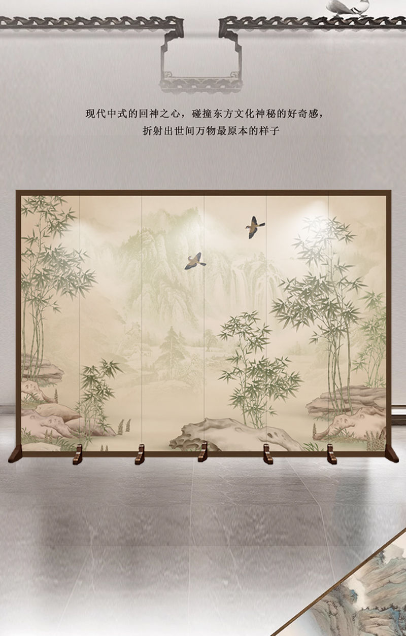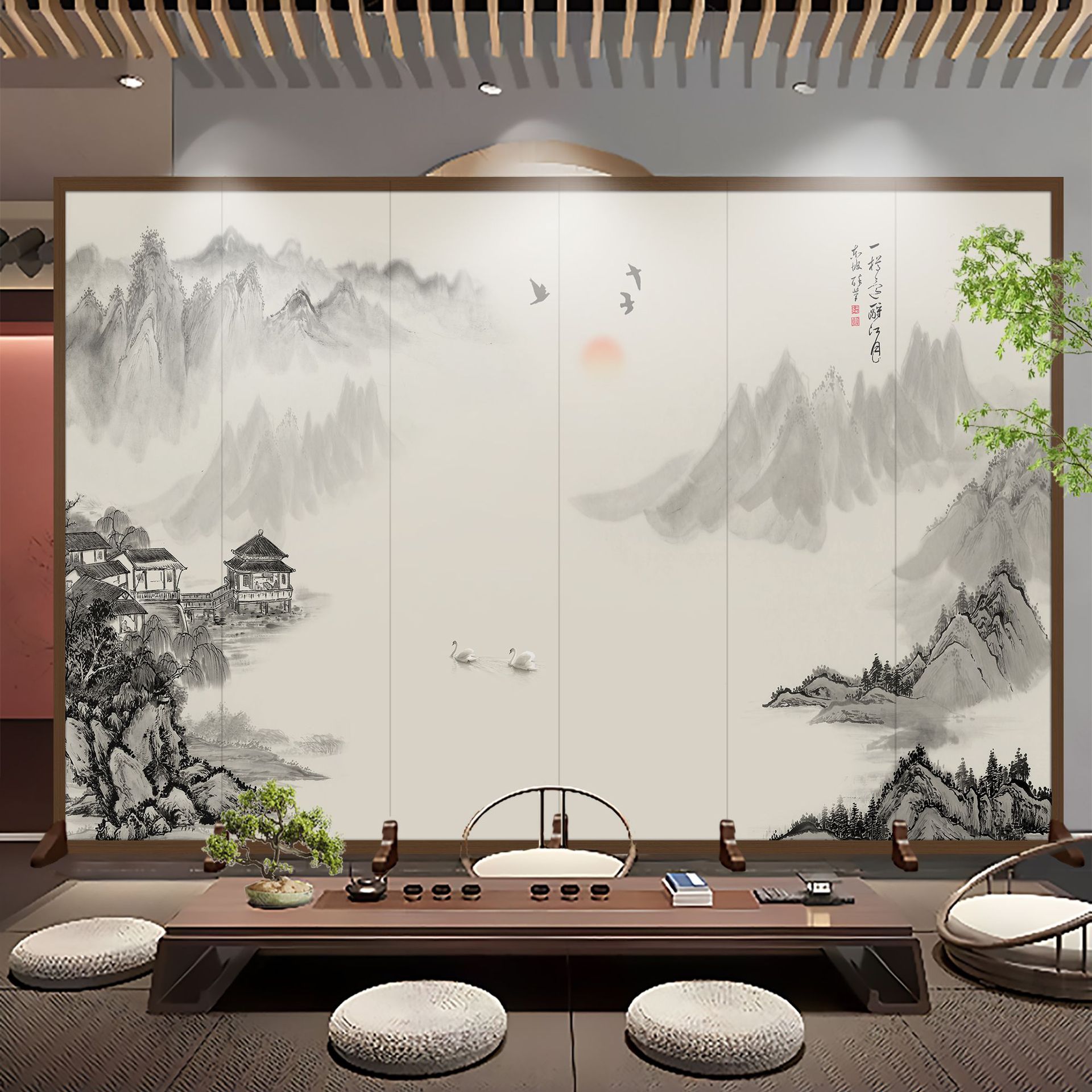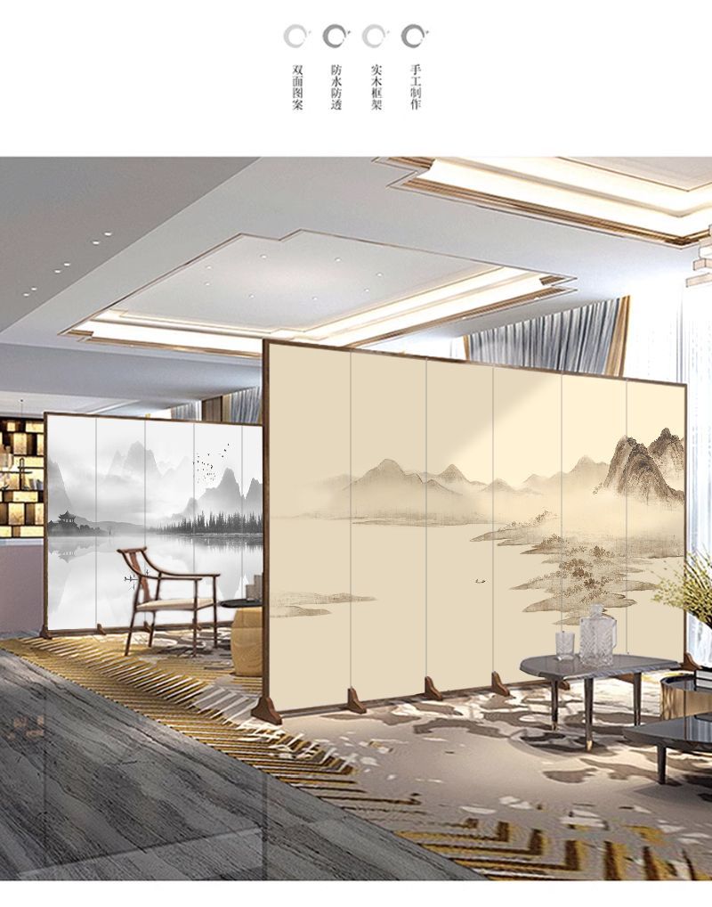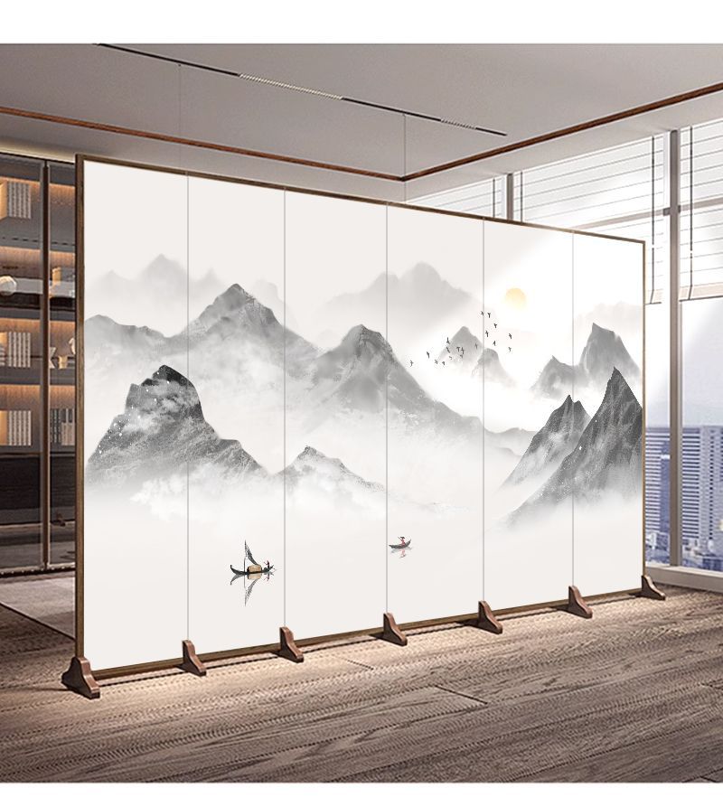 사무실 호텔을 차단하는 간단한 스크린 파티션 거실 새로운 중국 스타일의 풍경 그림 접이식 모바일 배경 벽 도매스토어 가기