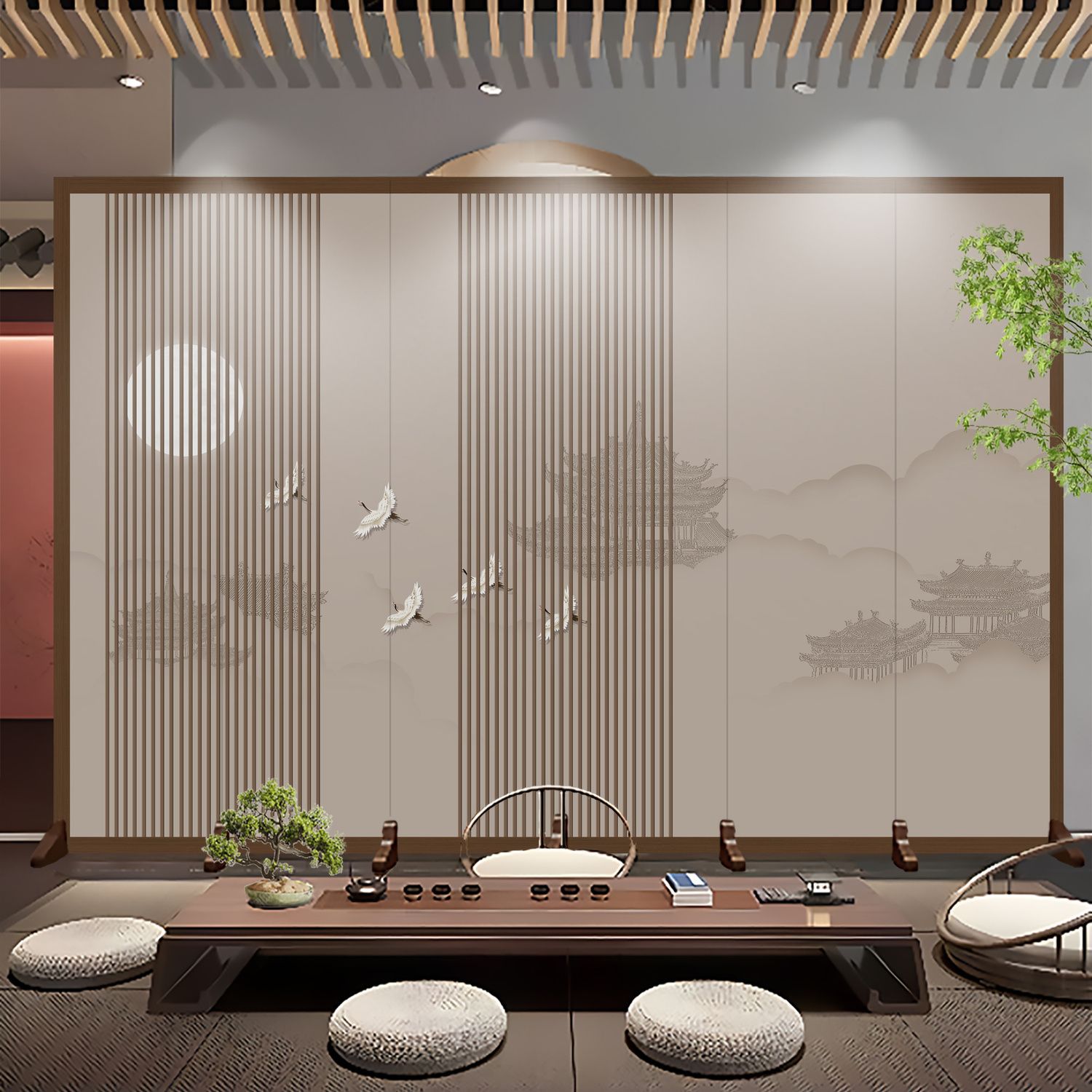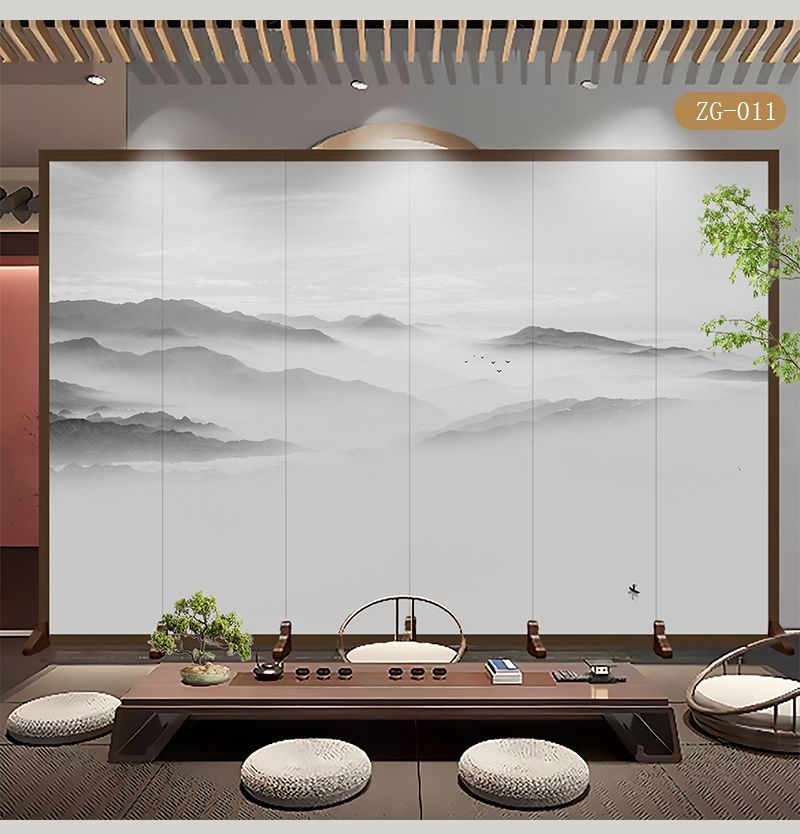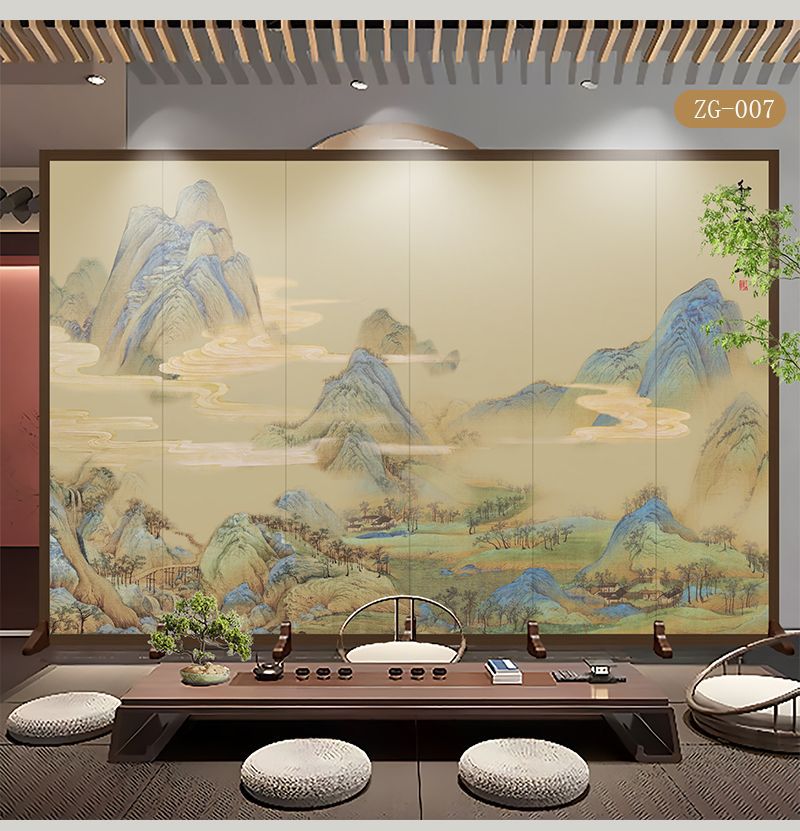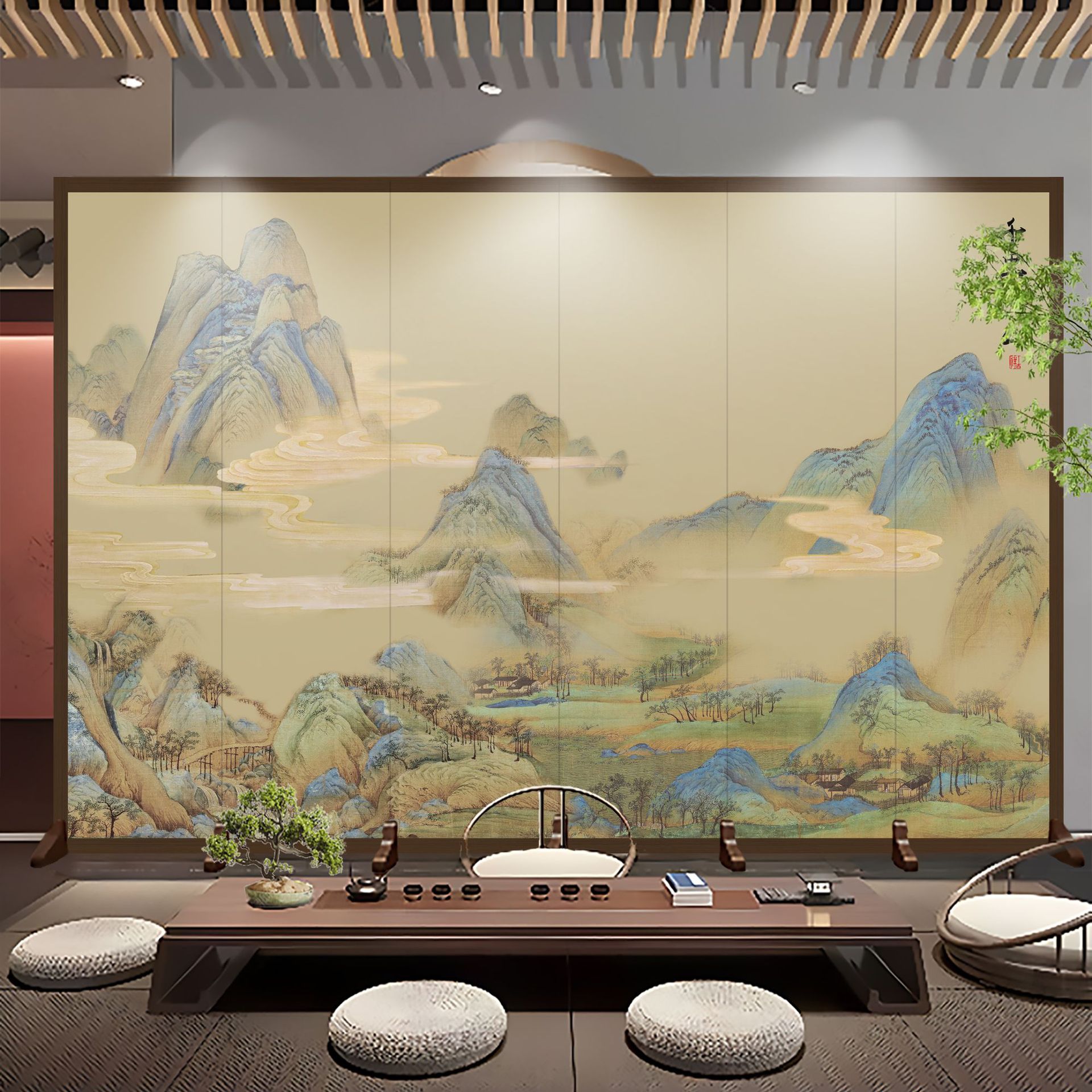 사무실 호텔을 차단하는 간단한 스크린 파티션 거실 새로운 중국 스타일의 풍경 그림 접이식 모바일 배경 벽 도매스토어 가기