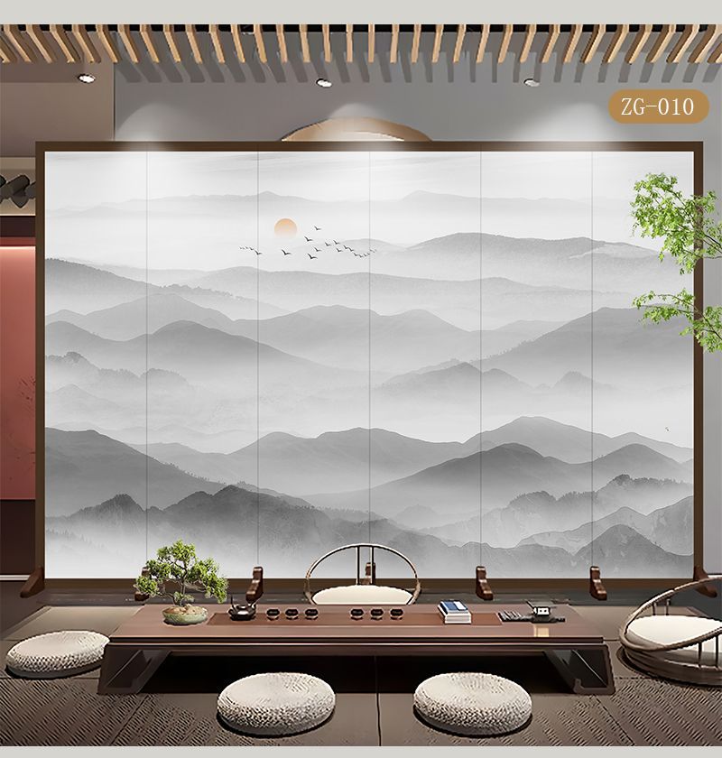 사무실 호텔을 차단하는 간단한 스크린 파티션 거실 새로운 중국 스타일의 풍경 그림 접이식 모바일 배경 벽 도매