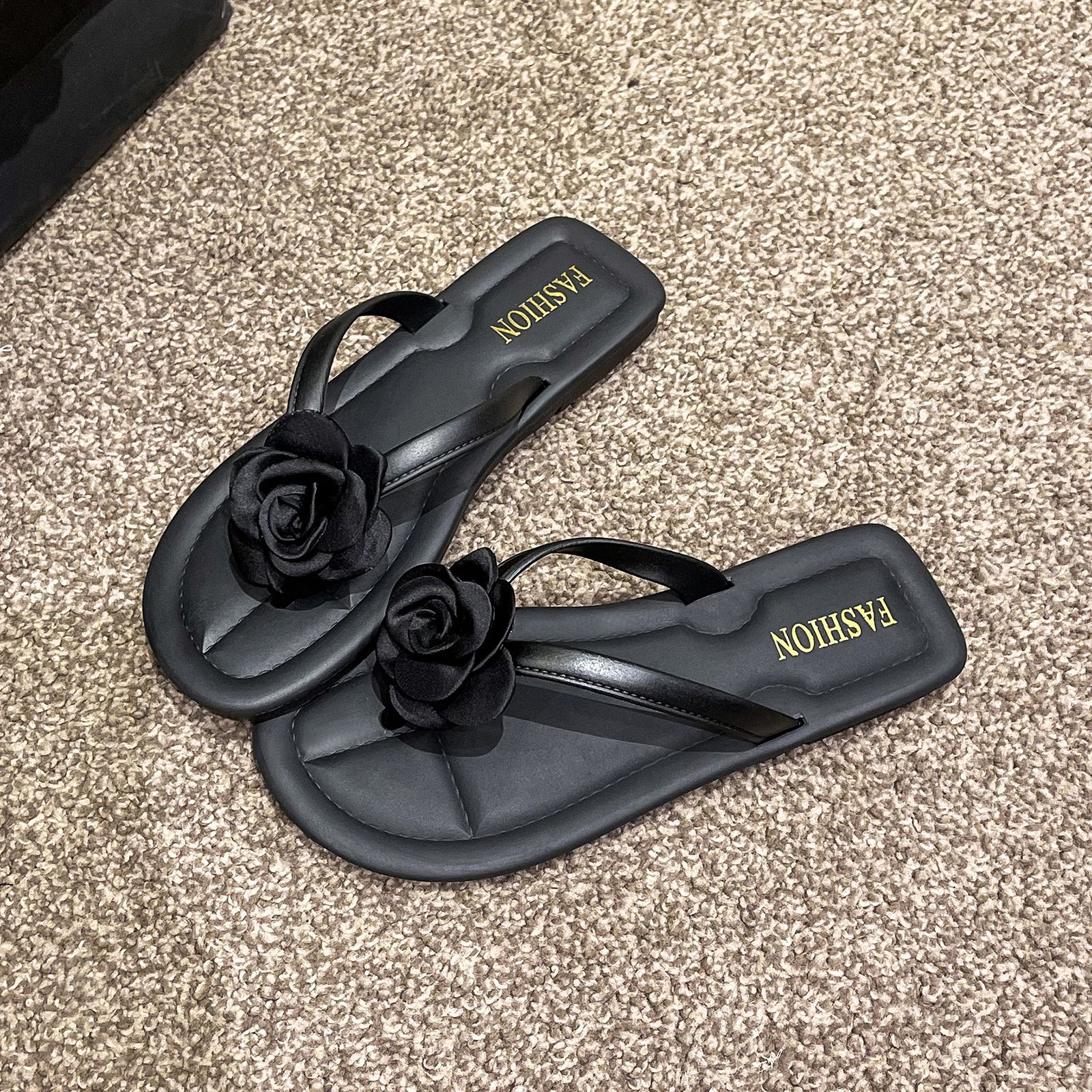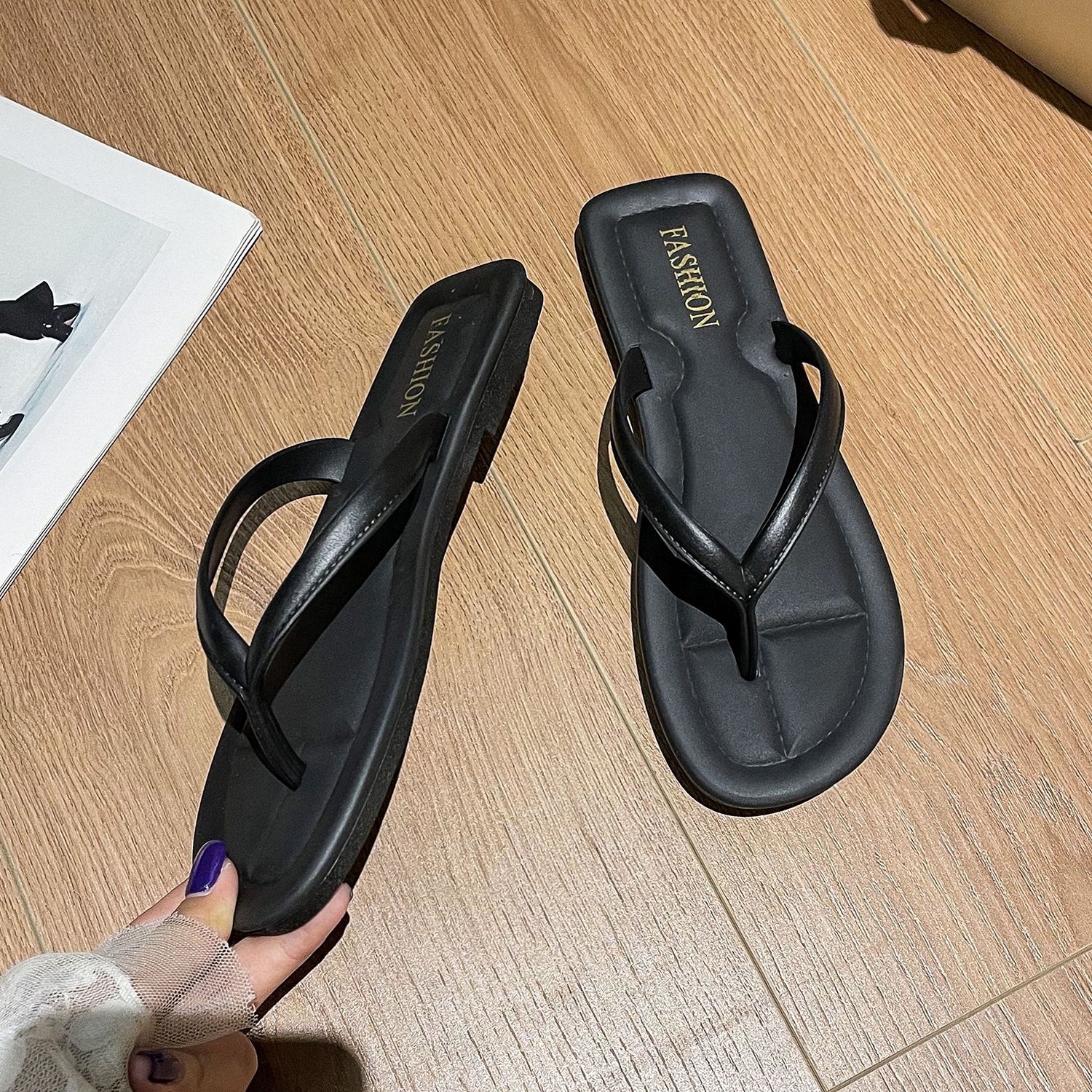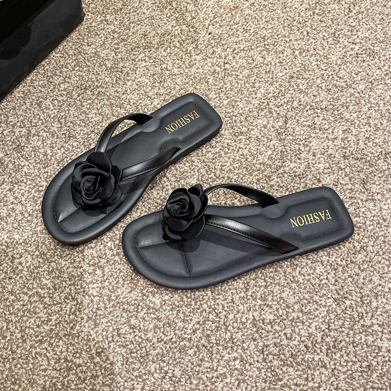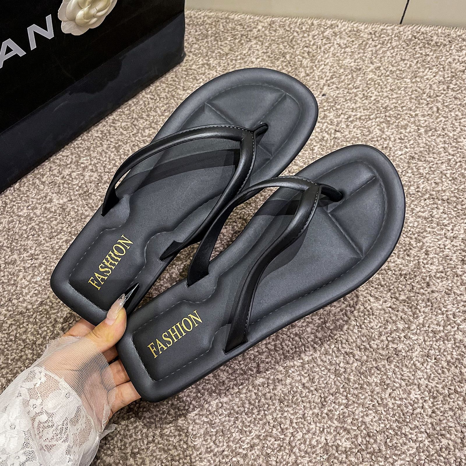 여성용 슬리퍼, 심플한 블랙 슬리퍼, 미끄럼 방지, 목욕, 해변, 트렌디한 여름 패션 샌들스토어 가기
