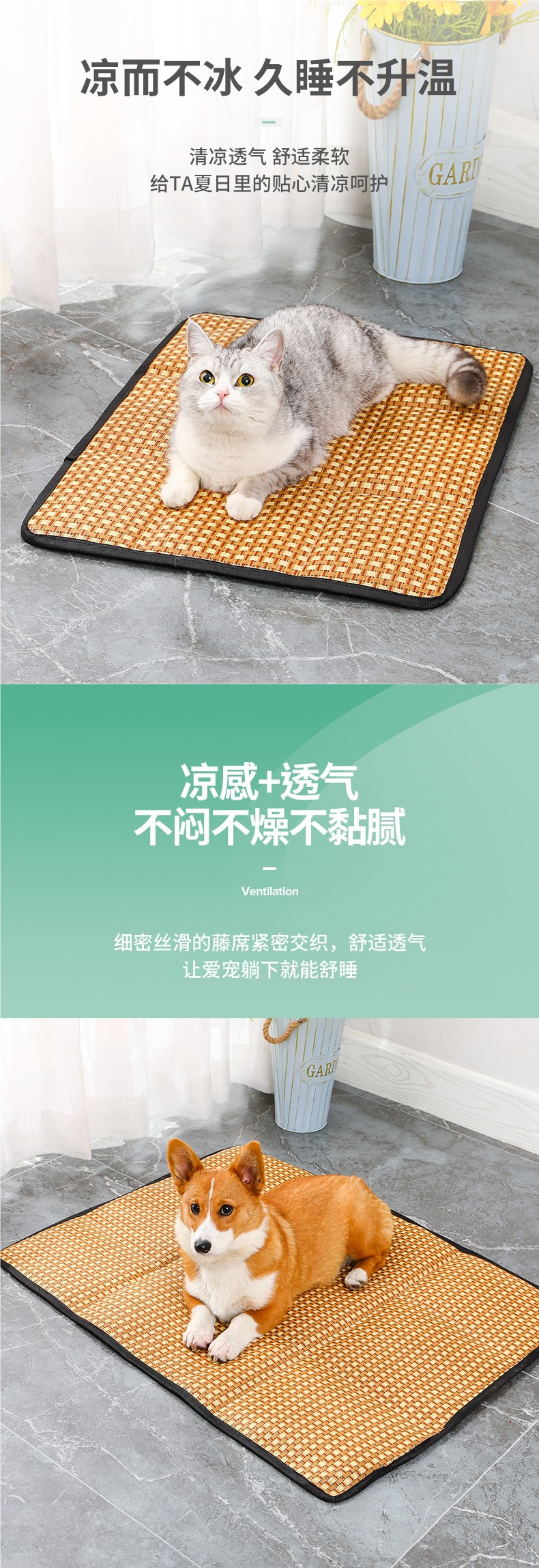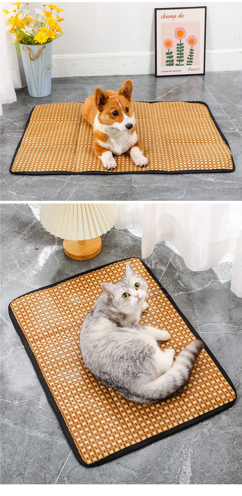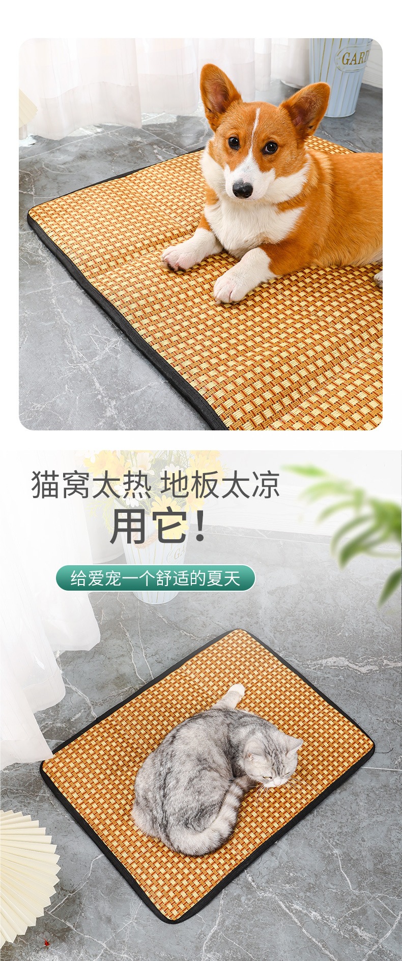 국경 간 전문 여름 애완 동물 매트 테디 개집 매트 매트 고양이 개집 잠자는 애완 동물을위한 등나무 매트 매트