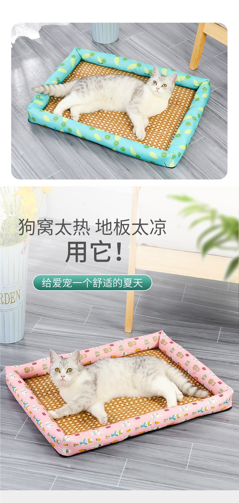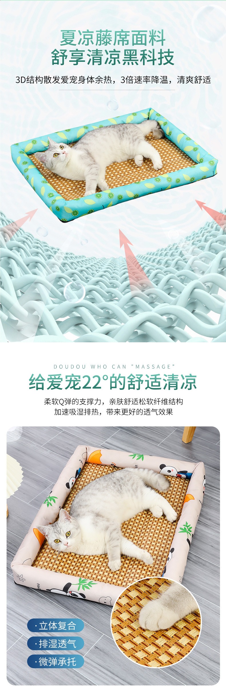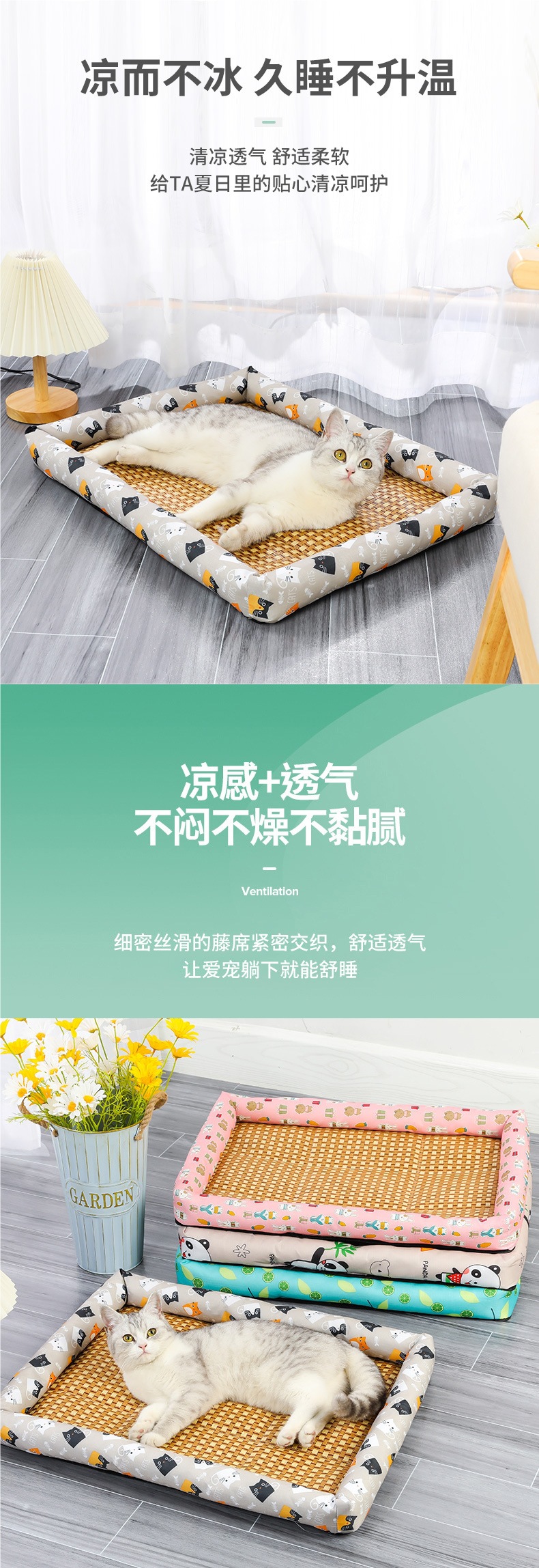 국경 간 전문 여름 애완 동물 매트 테디 개집 매트 매트 고양이 개집 잠자는 애완 동물을위한 등나무 매트 매트