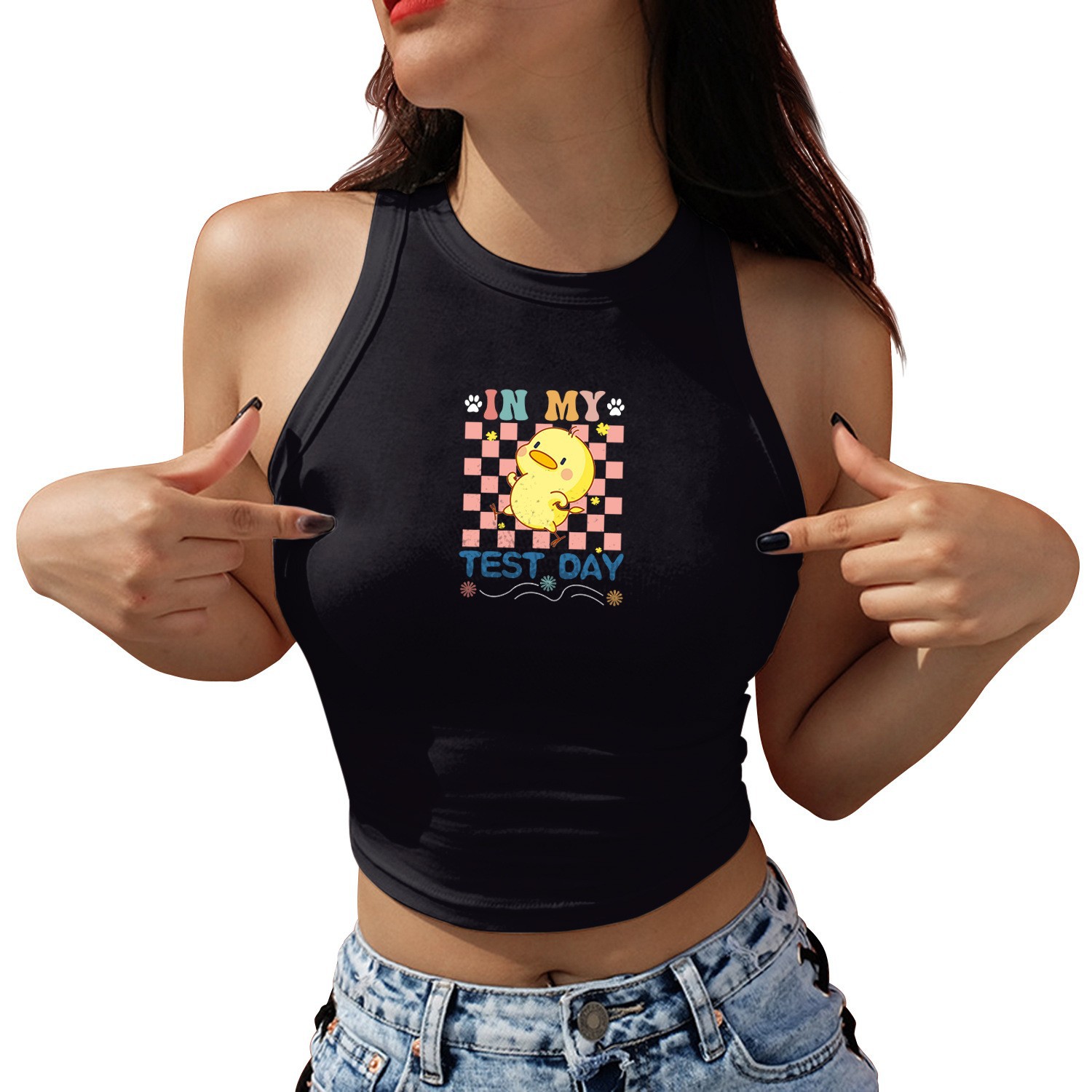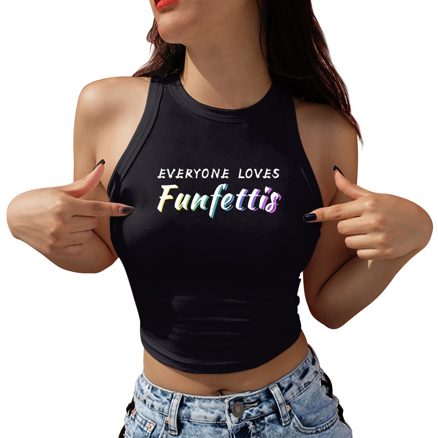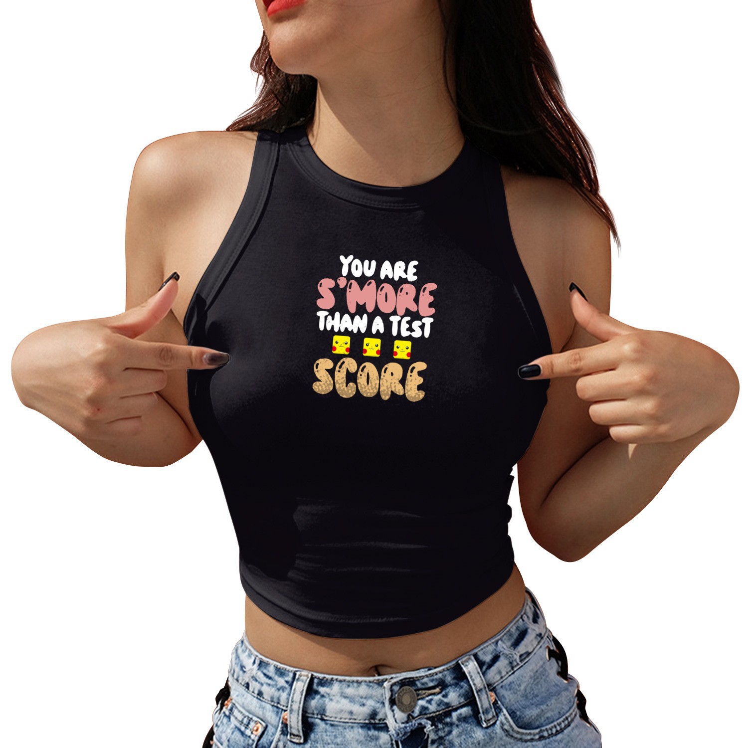 발렌타인 데이 로맨틱 라운드 넥 레터 3D 프린트 짧은 슬링 타이트 여성 조끼 유럽과 미국 여름 트렌드 캐주얼 다용도스토어 가기
