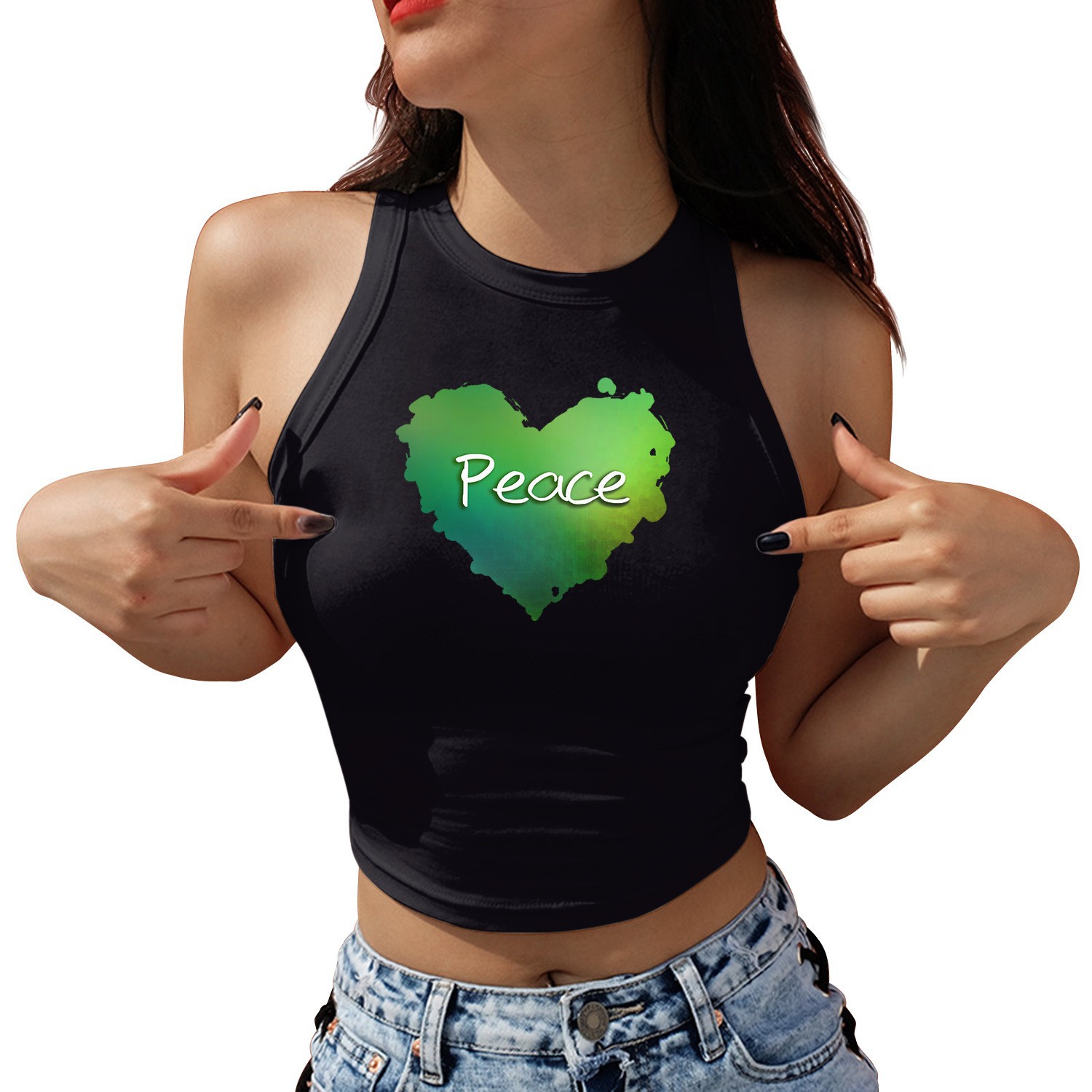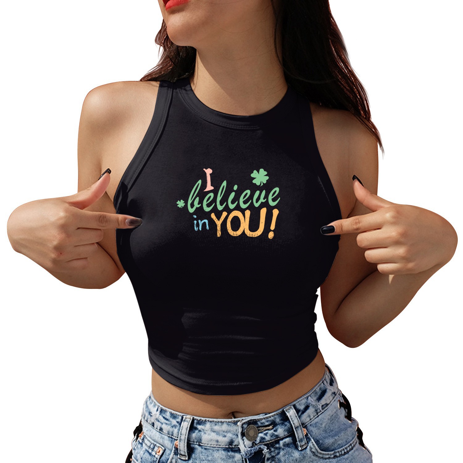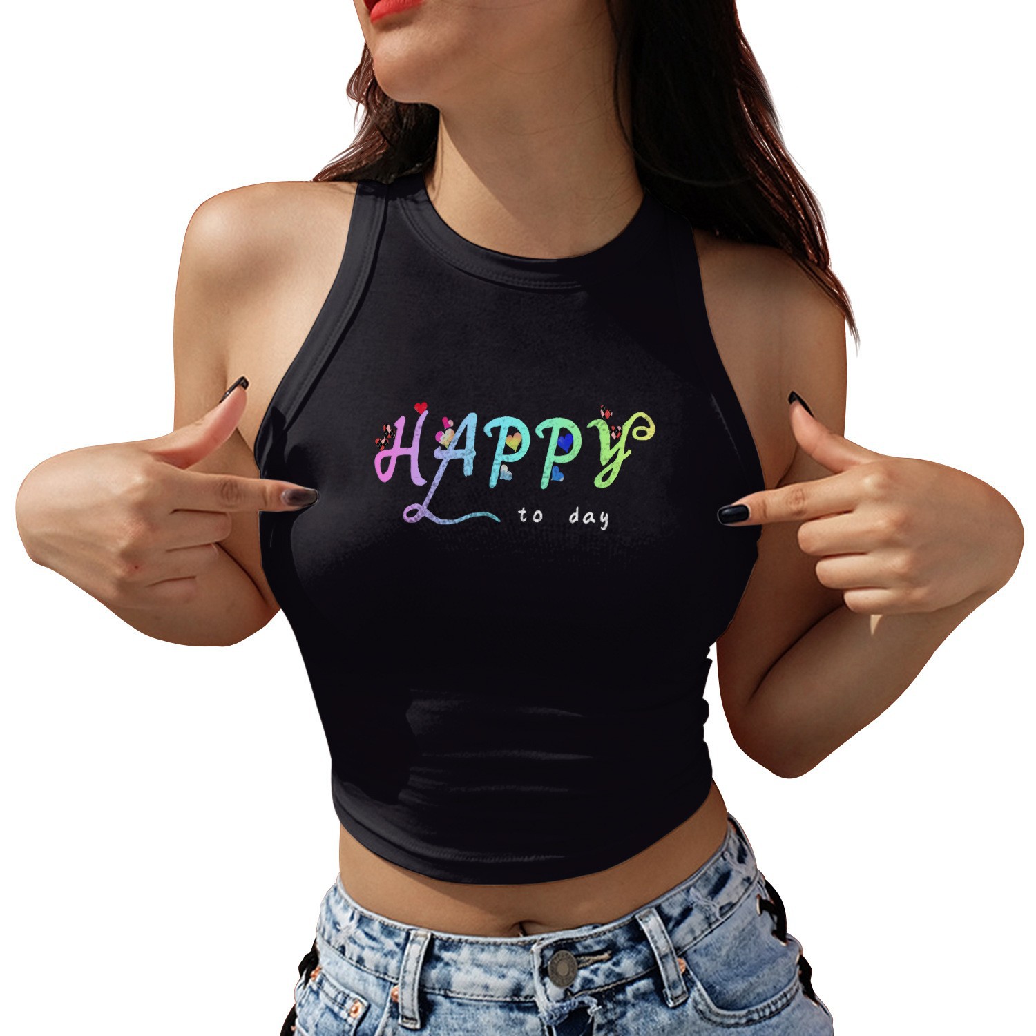 발렌타인 데이 로맨틱 라운드 넥 레터 3D 프린트 짧은 슬링 타이트 여성 조끼 유럽과 미국 여름 트렌드 캐주얼 다용도