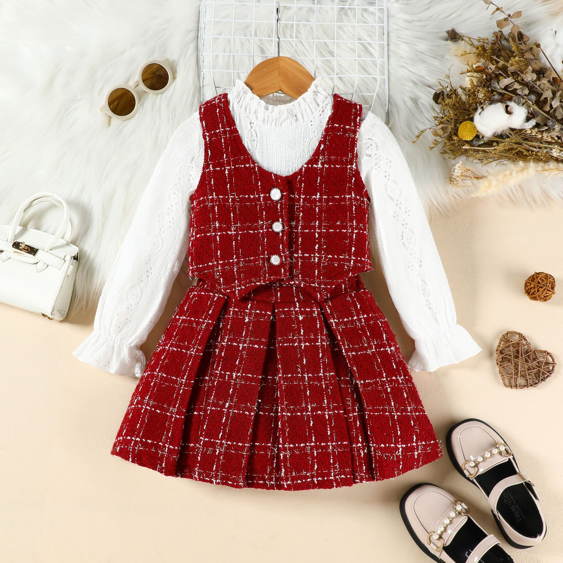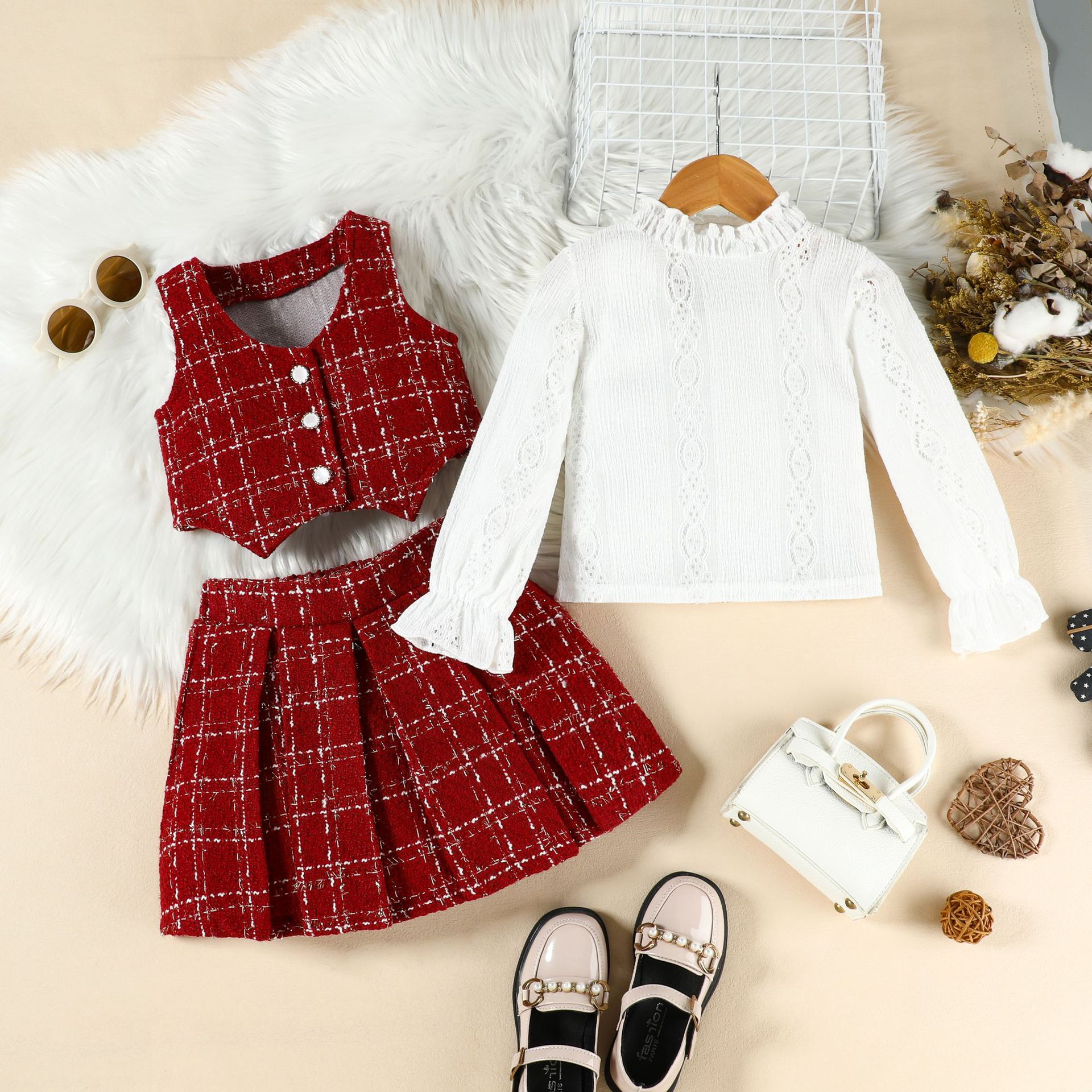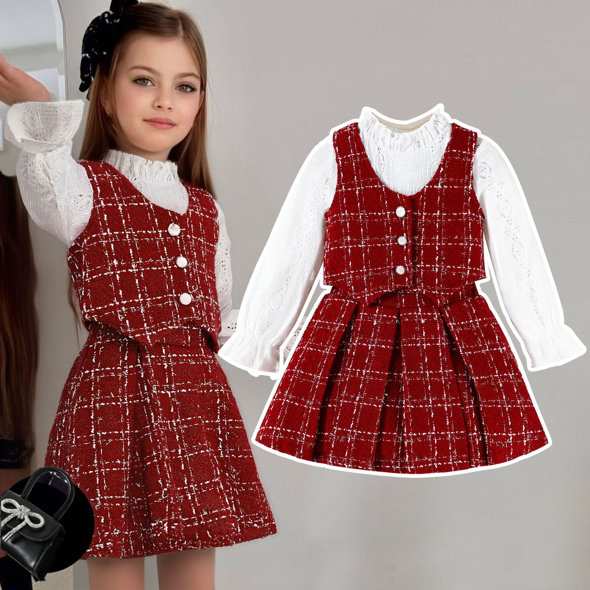 국경 간 유럽과 미국의 봄, 가을 소녀 정장 어린이 단색 레이스 이너웨어 + 조끼 주름 치마 3 피스 세트