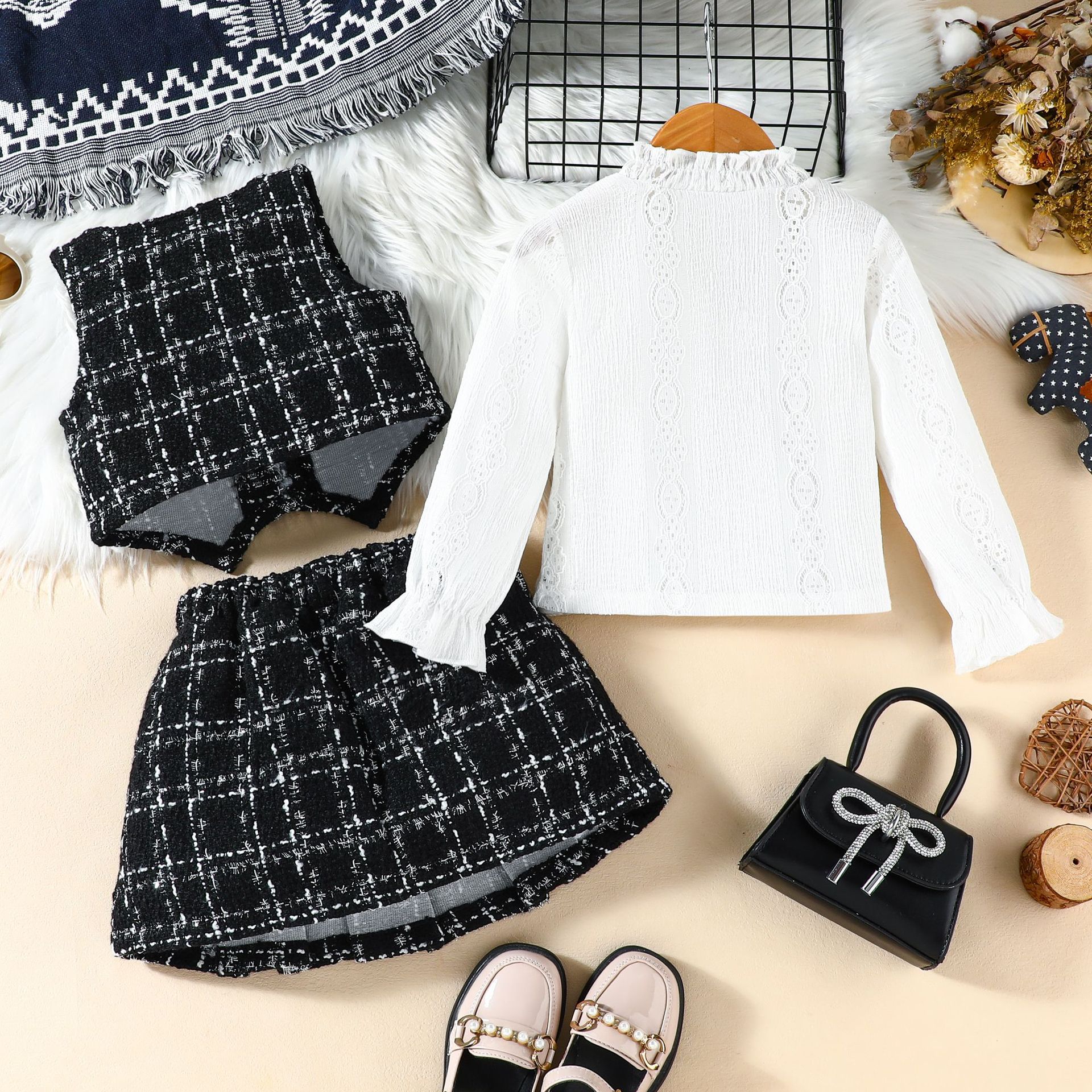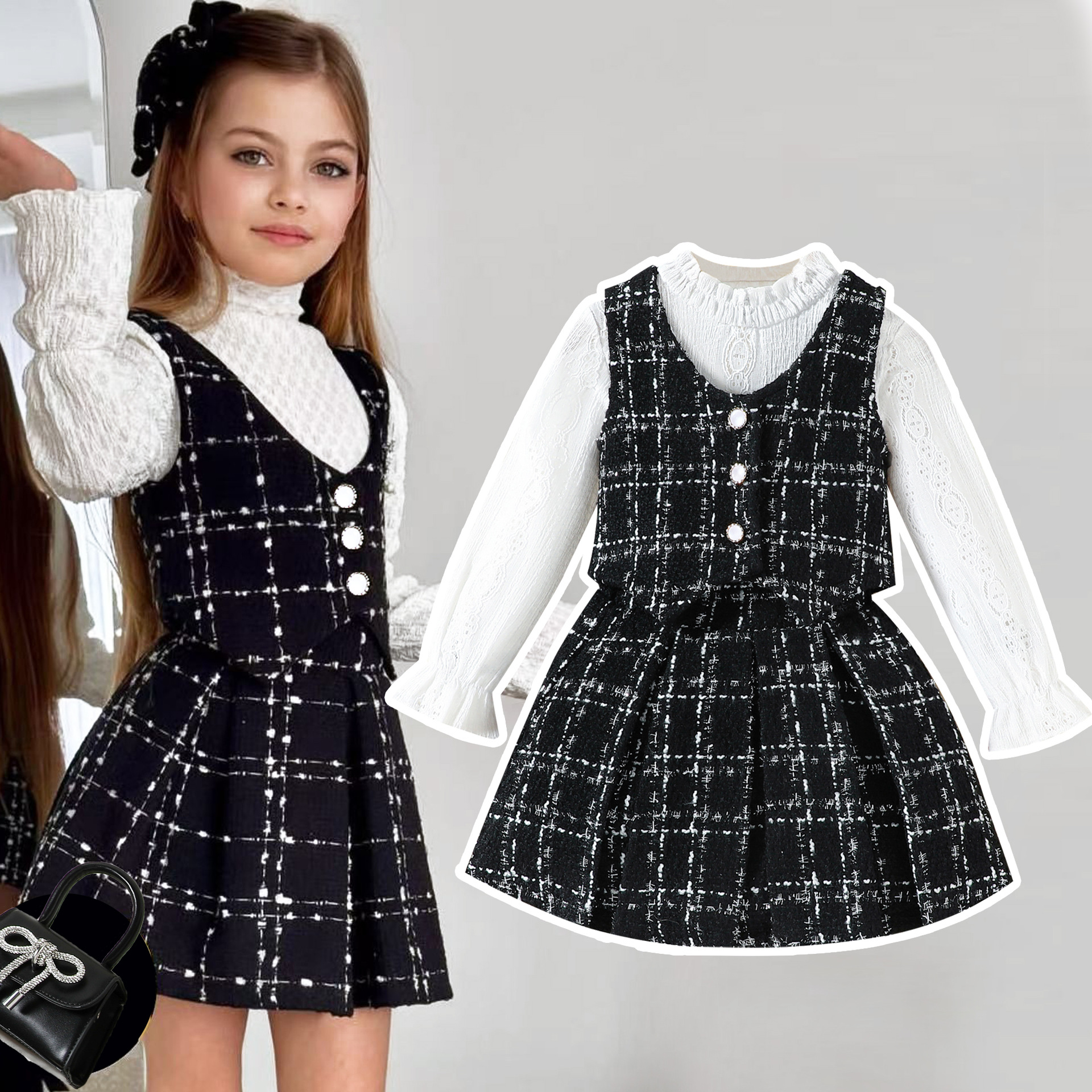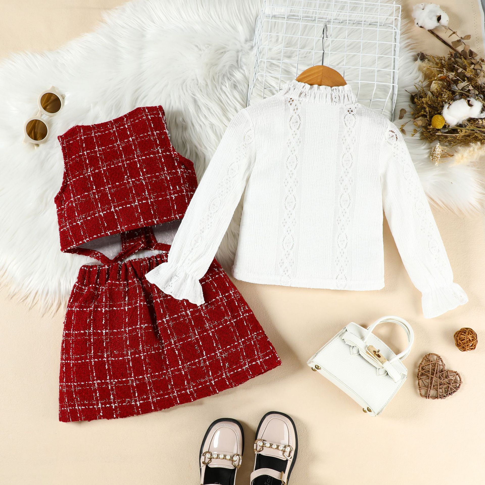 국경 간 유럽과 미국의 봄, 가을 소녀 정장 어린이 단색 레이스 이너웨어 + 조끼 주름 치마 3 피스 세트