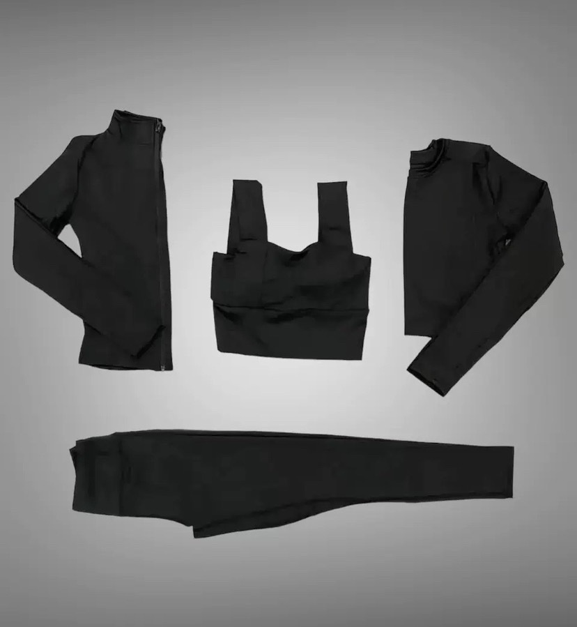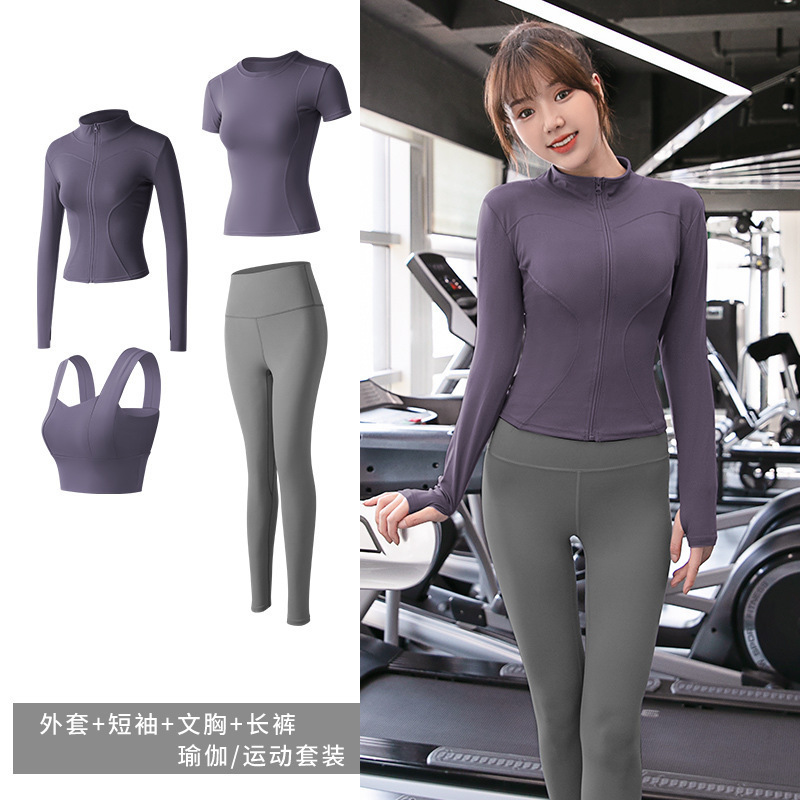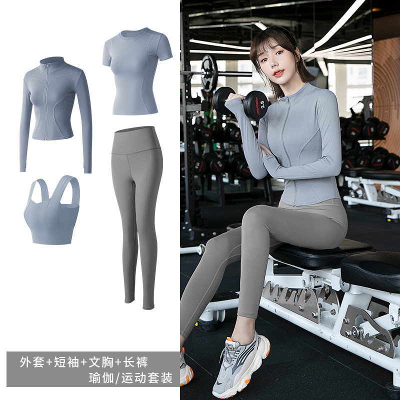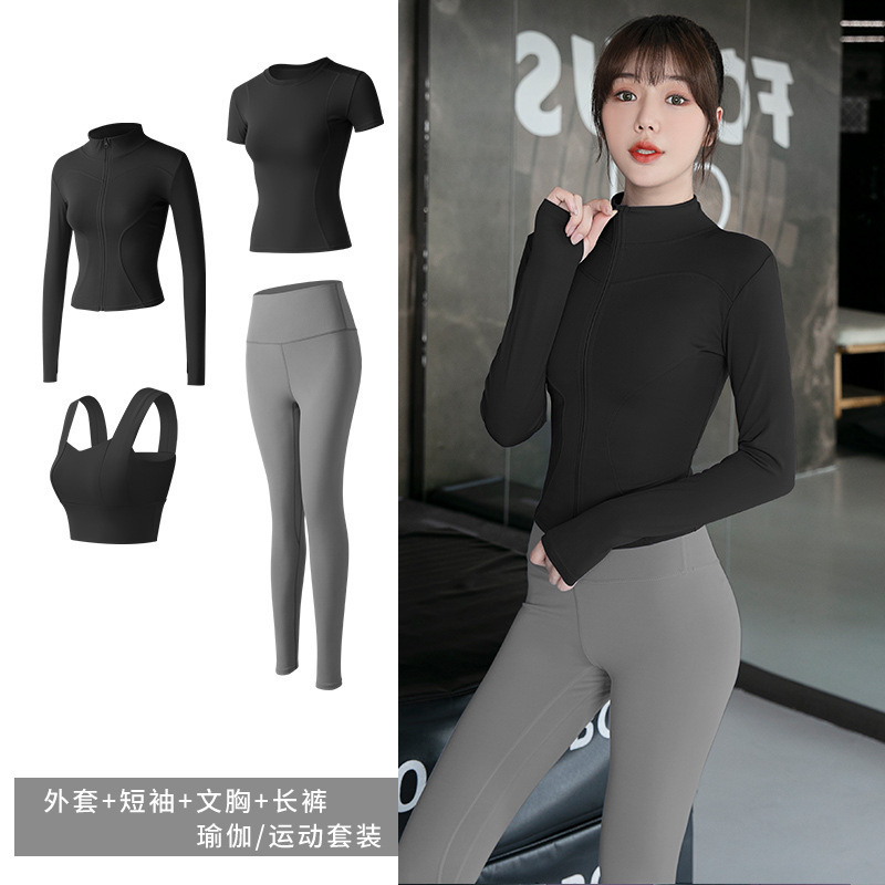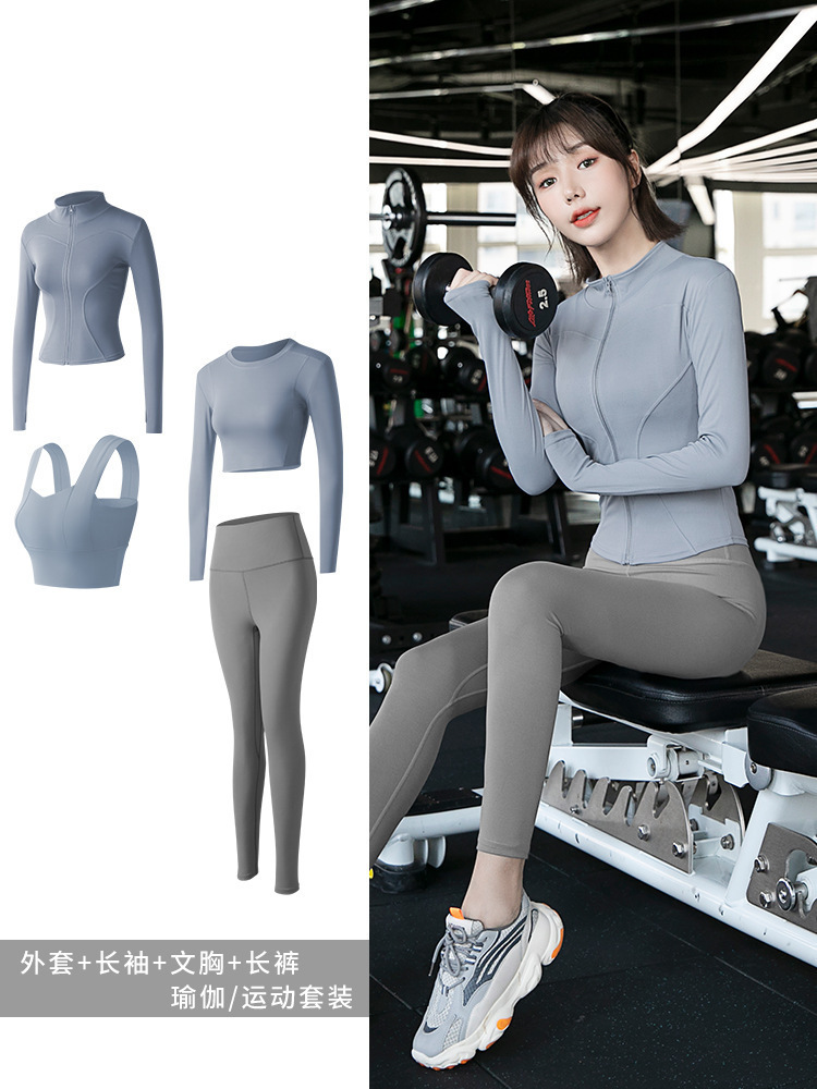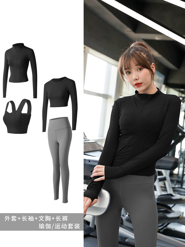 긴팔 스포츠 요가 슈트 유럽과 미국의 새로운 복숭아 엉덩이 요가 슈트 가을, 겨울 엉덩이 리프팅 피트니스 슈트 여성용 4 피스 세트