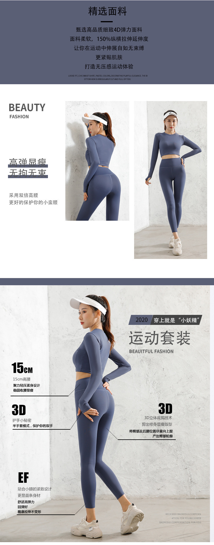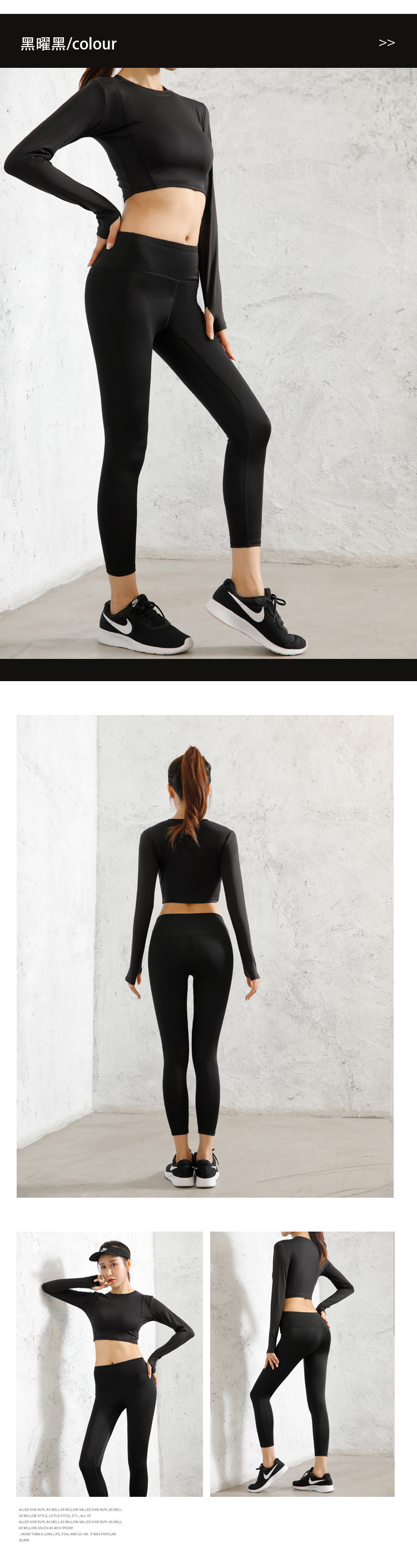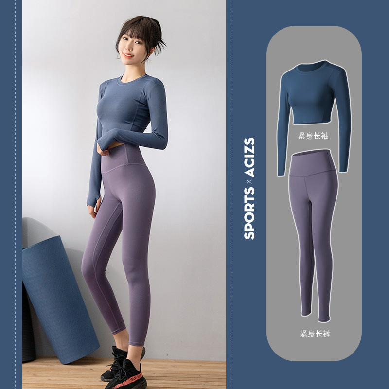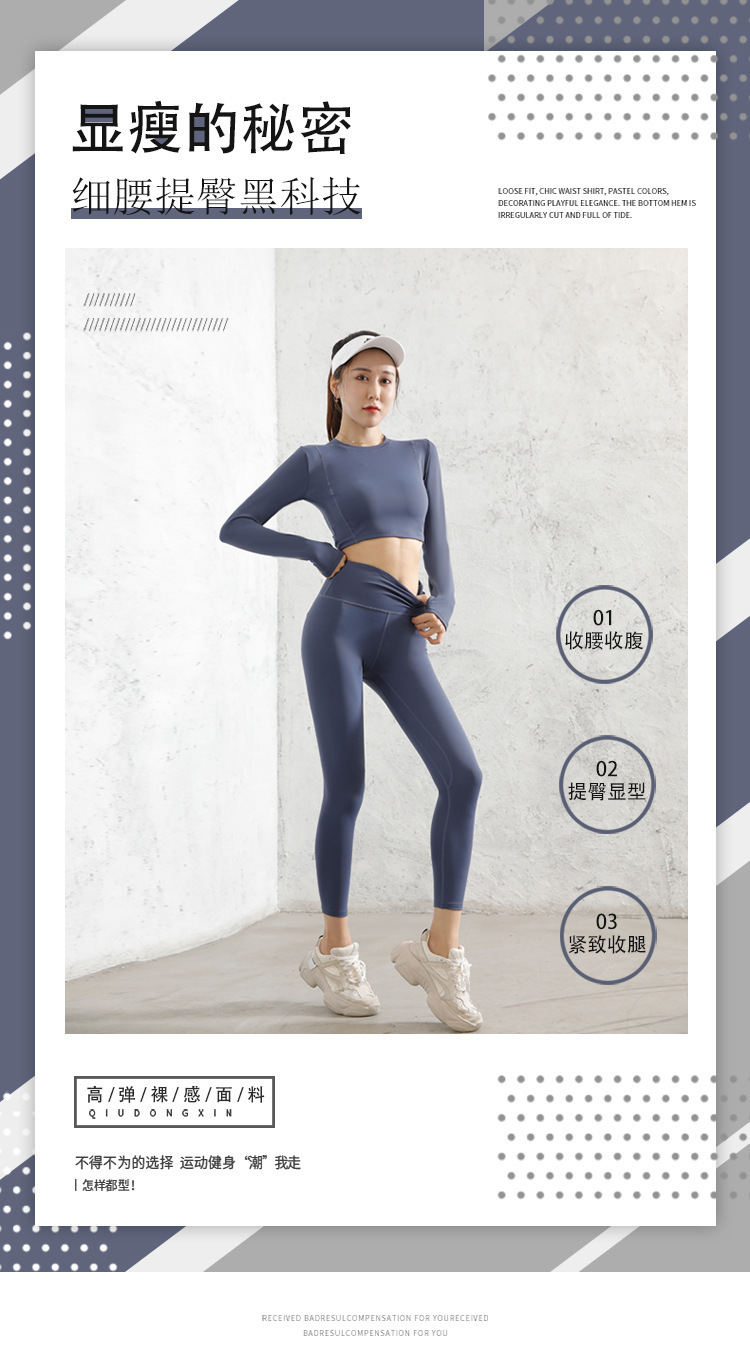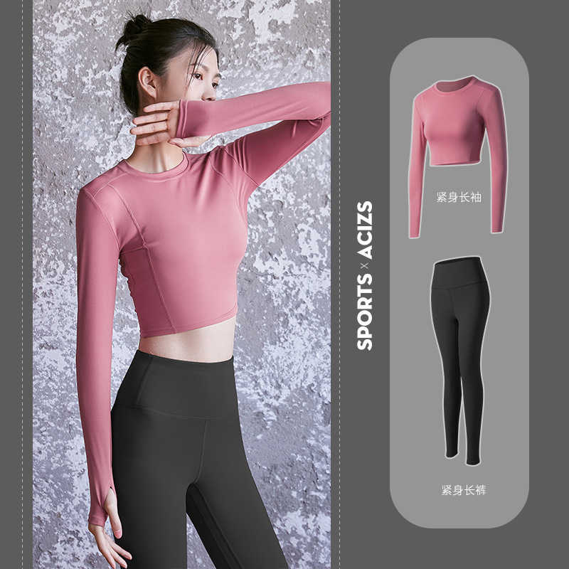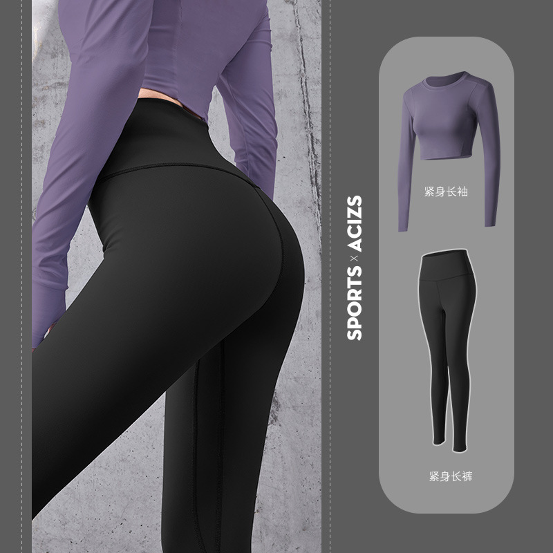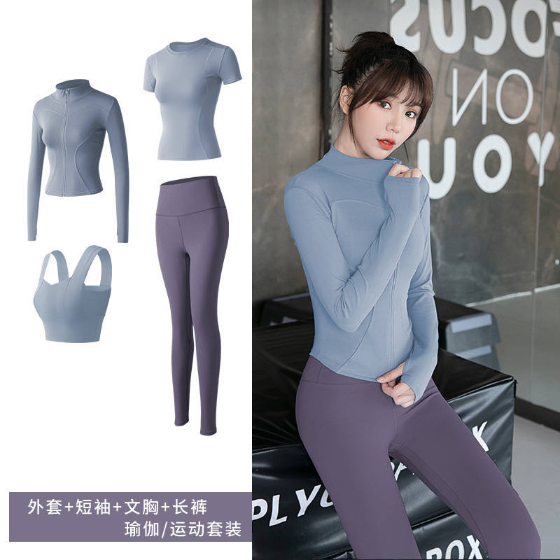 긴팔 스포츠 요가 슈트 유럽과 미국의 새로운 복숭아 엉덩이 요가 슈트 가을, 겨울 엉덩이 리프팅 피트니스 슈트 여성용 4 피스 세트스토어 가기