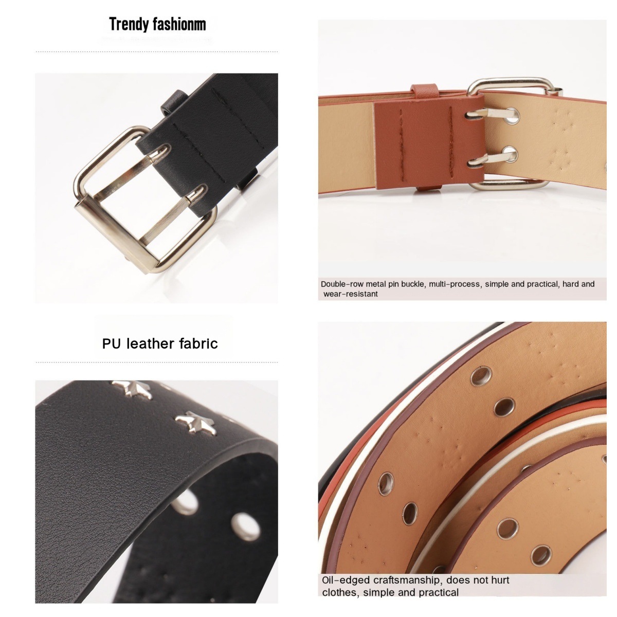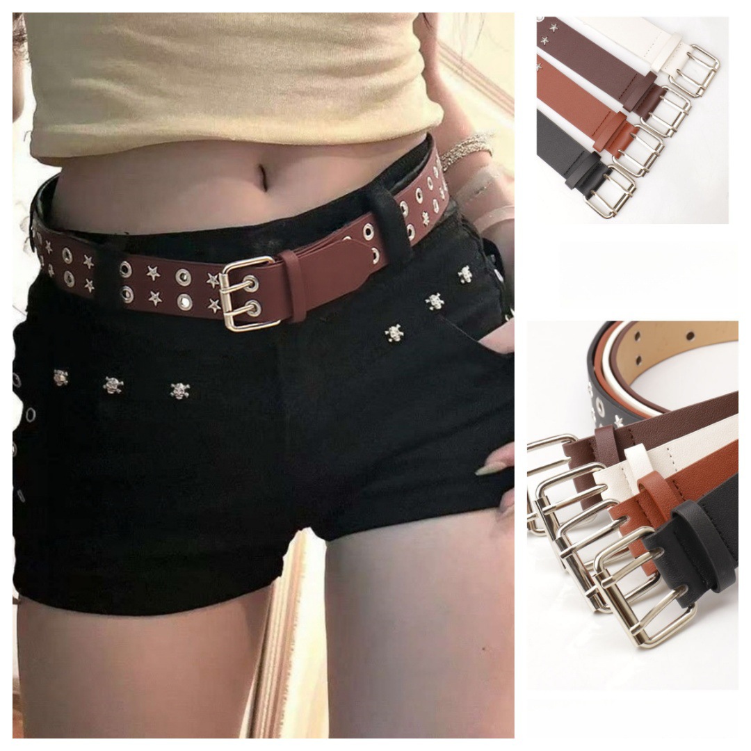 국경을 넘는 신상품 일본과 한국의 INS 스타일 Y2K 펑크 트렌드 벨트 스트리트 패션 다용도 리벳 더블 버클 가죽 벨트