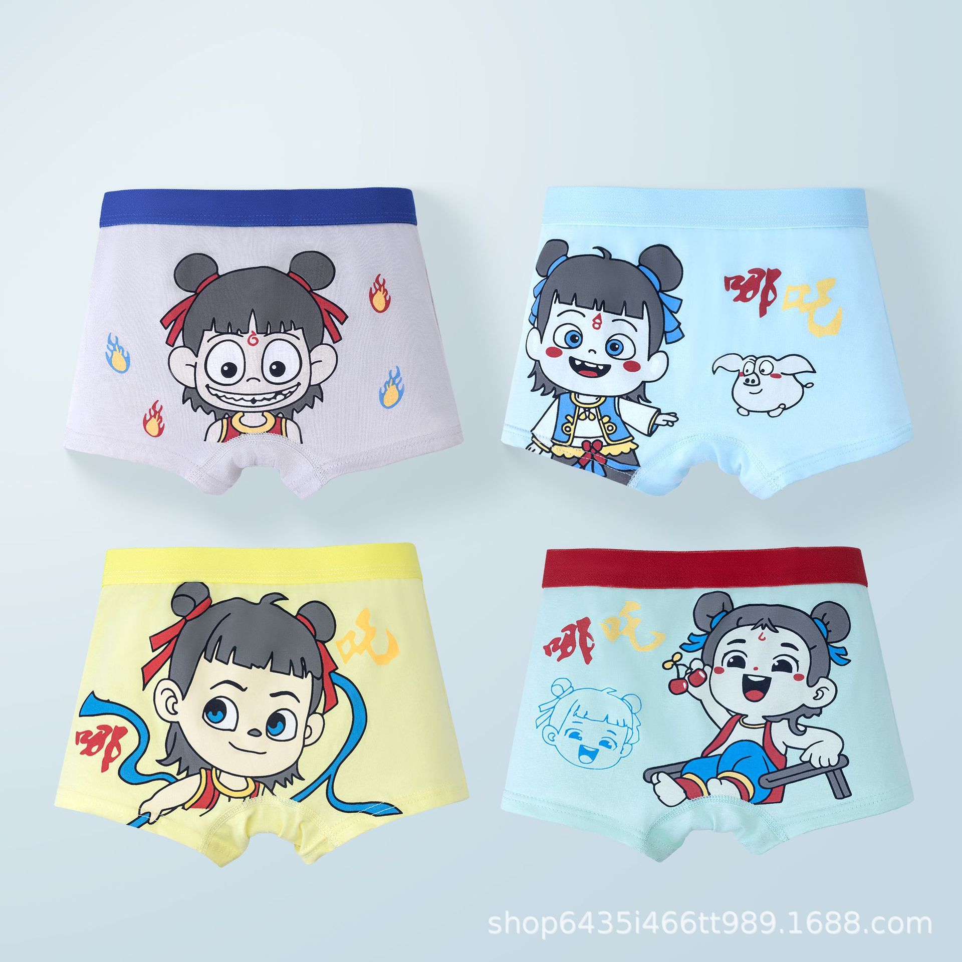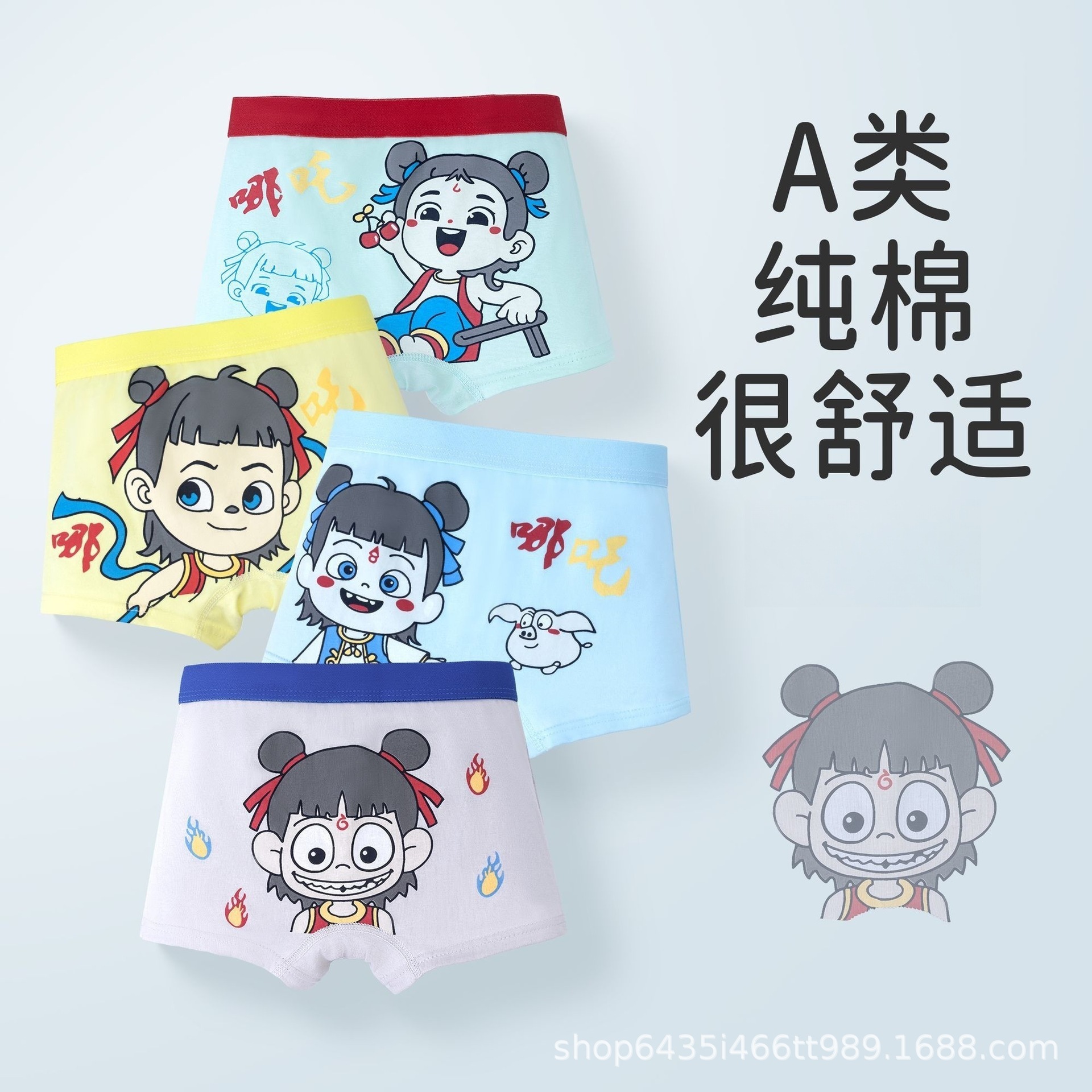 Guochao Nezha 어린이 속옷 소년 속옷 순수 코튼 복서 팬티 큰 어린이 의류 만화 소년 애니메이션 2025 새로운 스타일스토어 가기