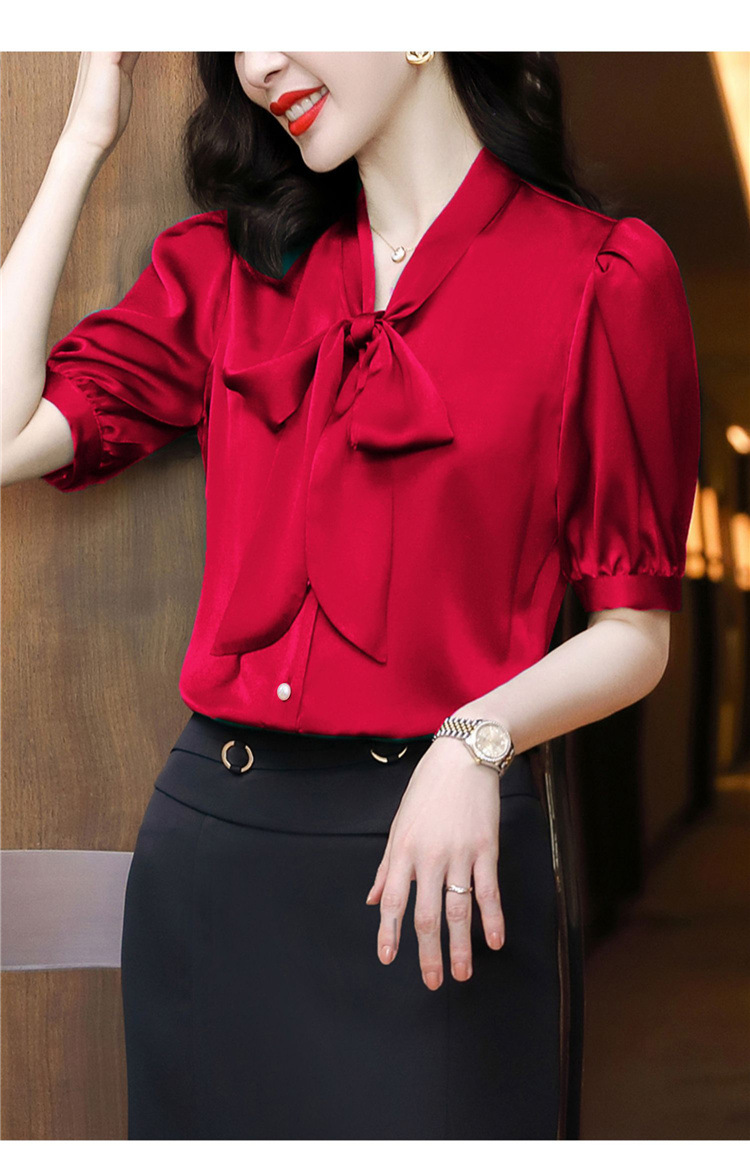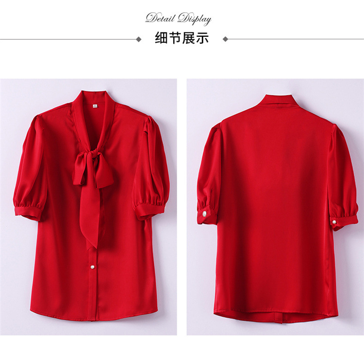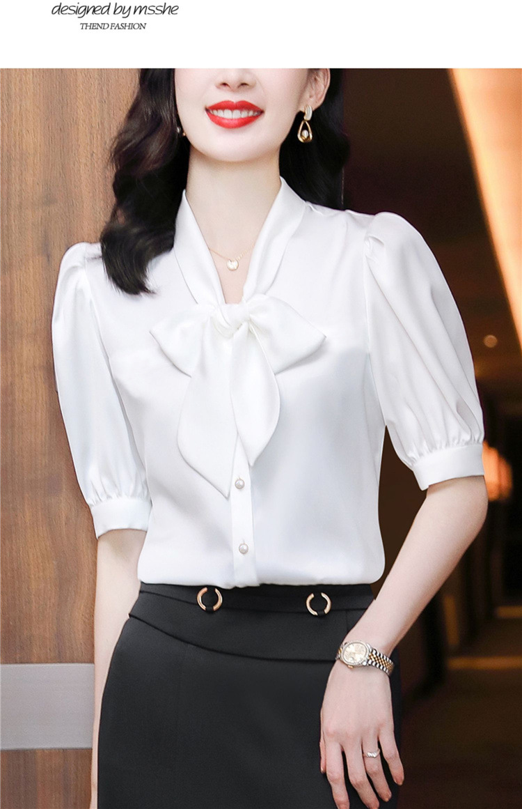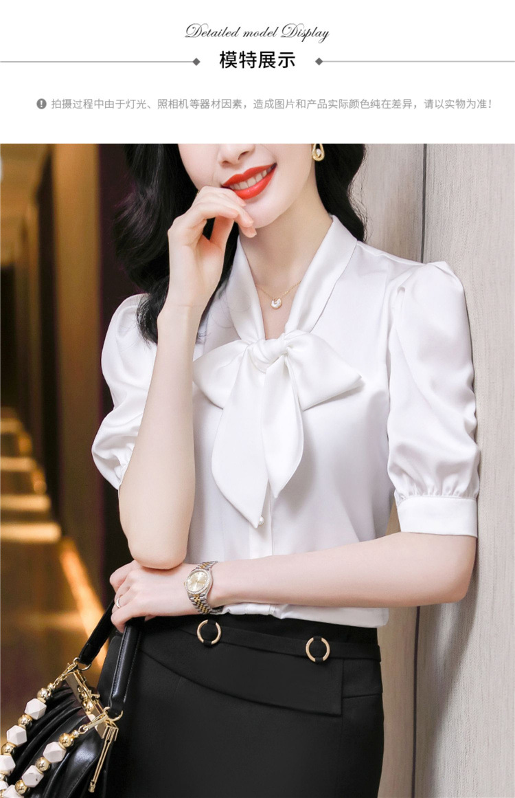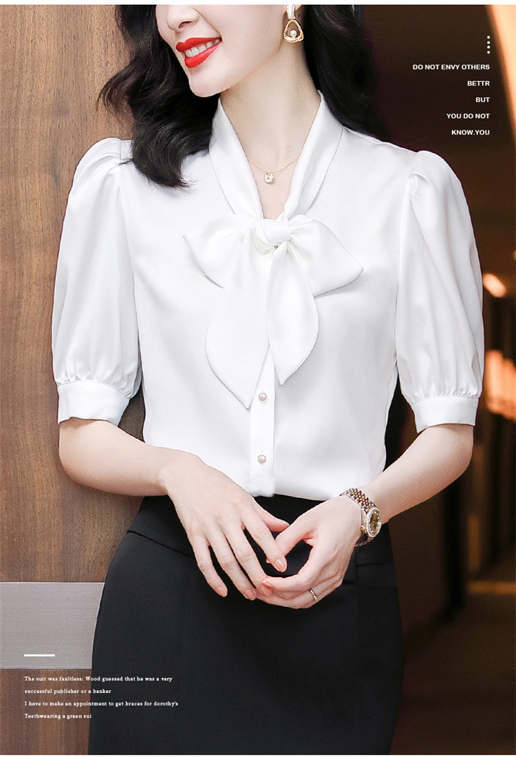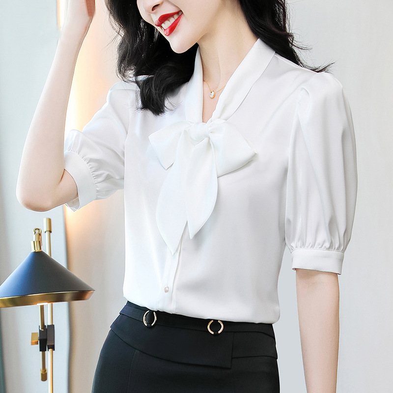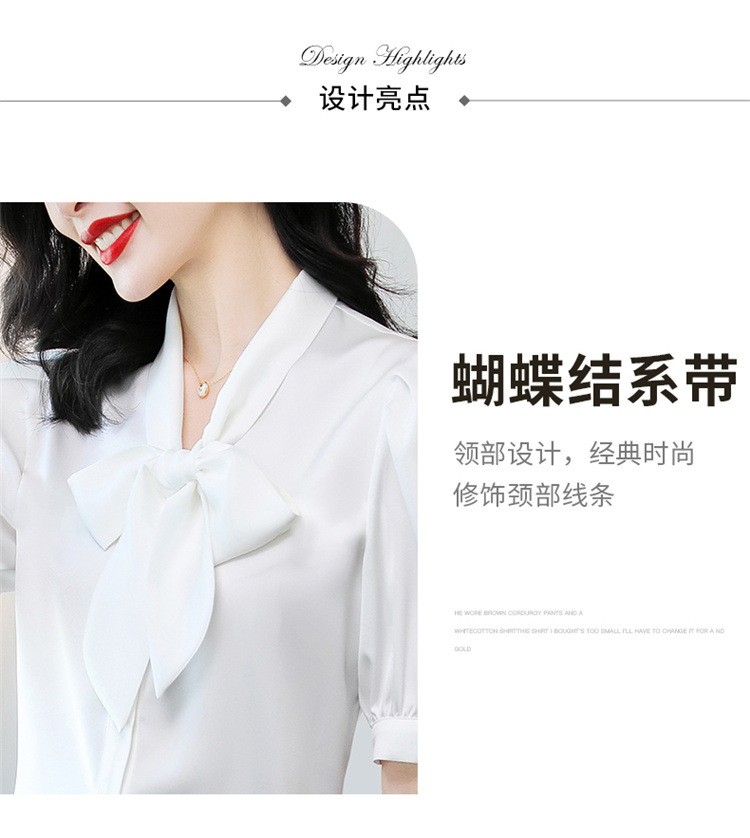 봄 여름 한국 스타일 쉬폰 미드 슬리브 브레스트 가디건 셔츠 여성용 나비 넥타이 반팔 패셔너블 캐주얼 셔츠