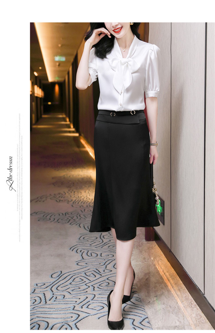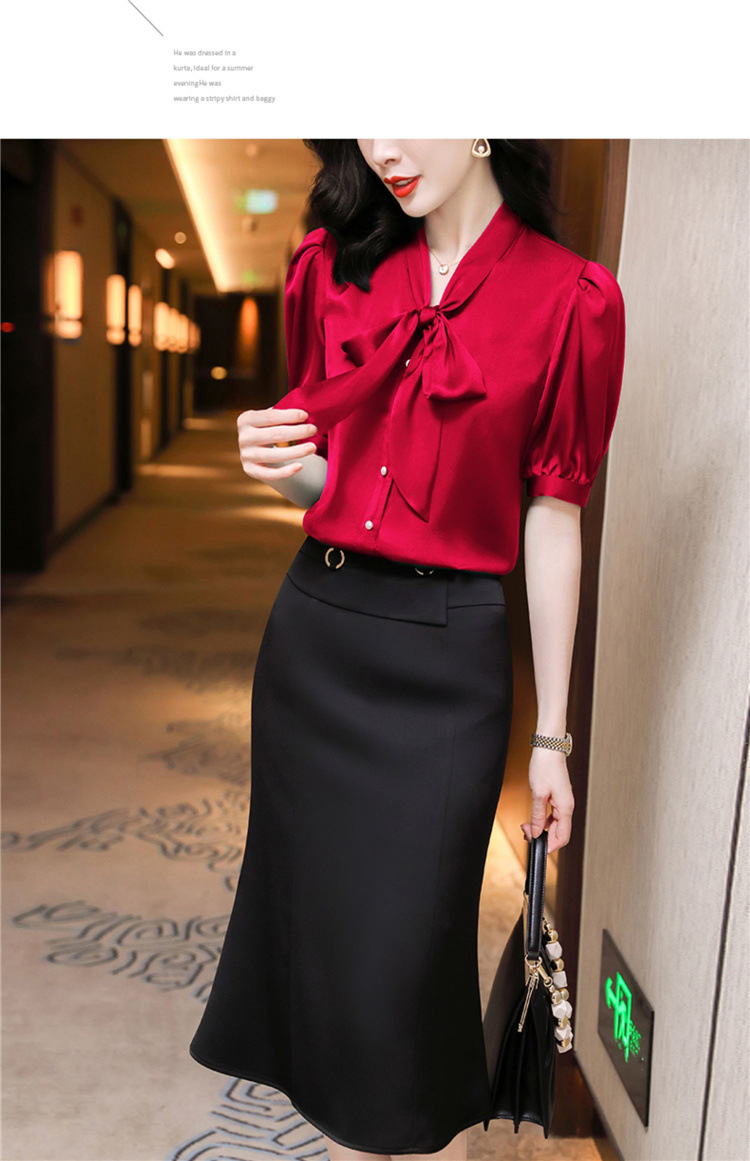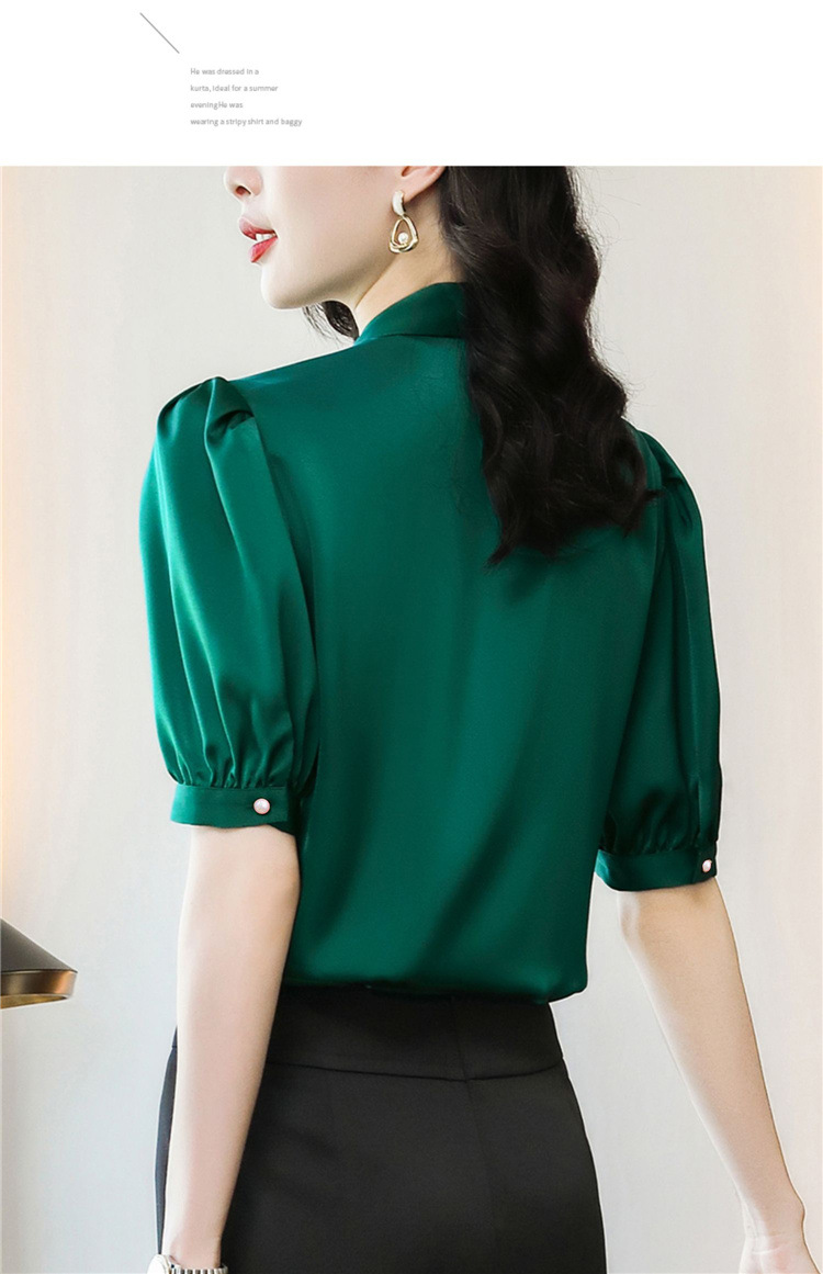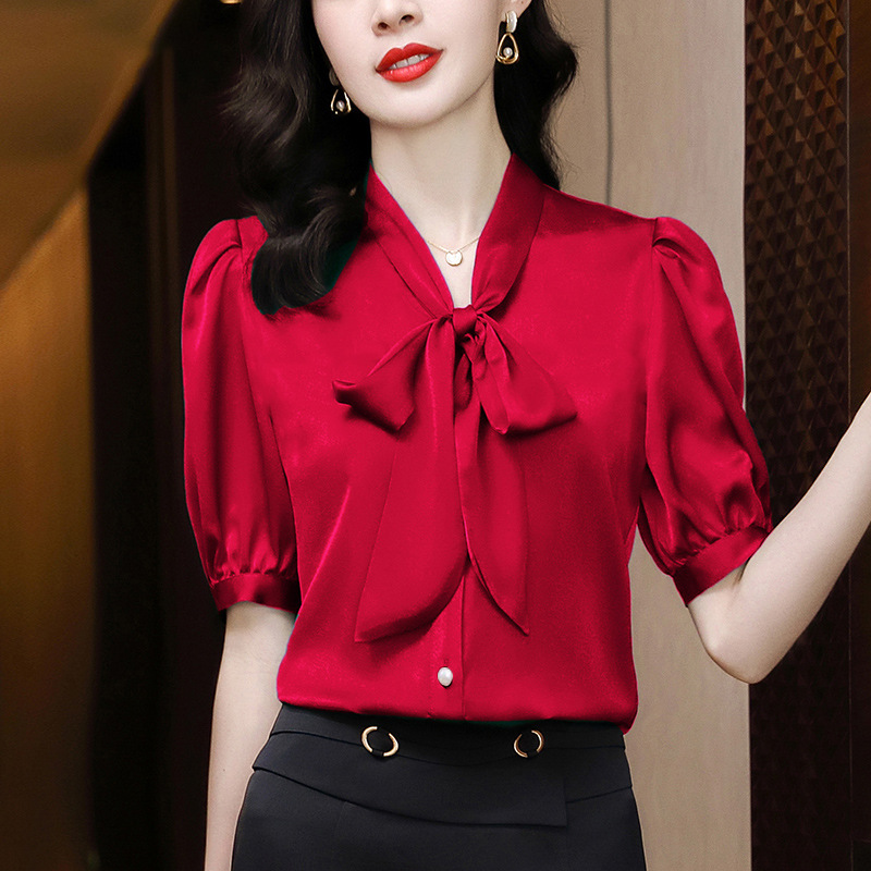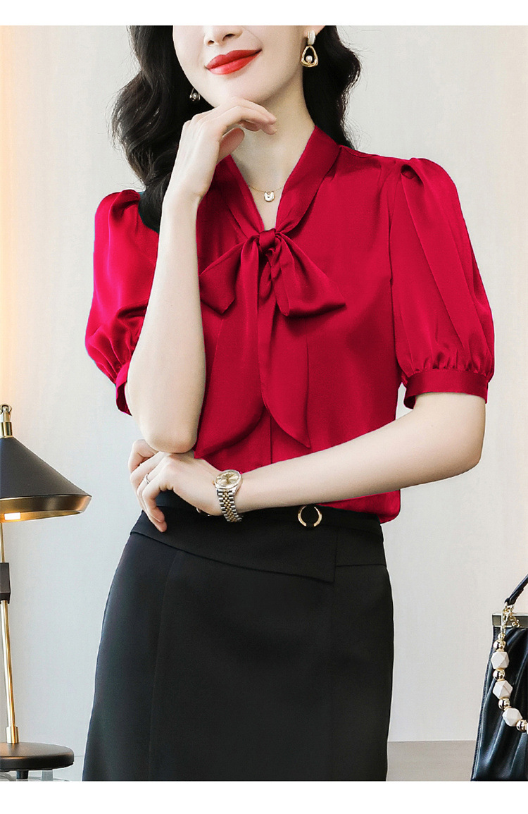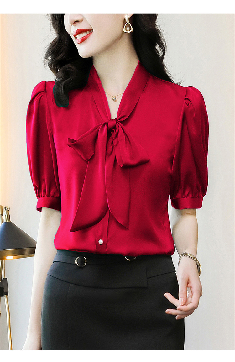 봄 여름 한국 스타일 쉬폰 미드 슬리브 브레스트 가디건 셔츠 여성용 나비 넥타이 반팔 패셔너블 캐주얼 셔츠